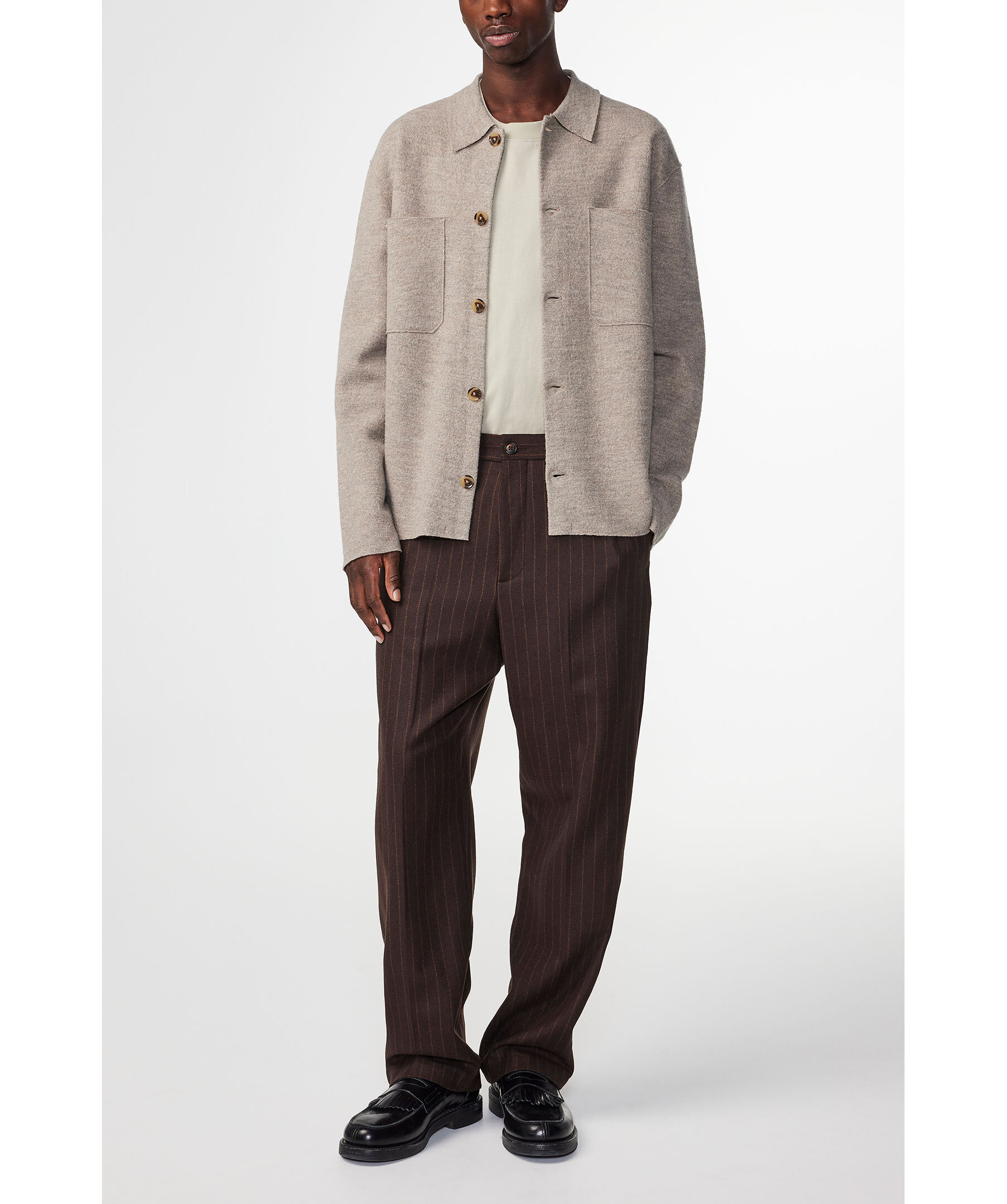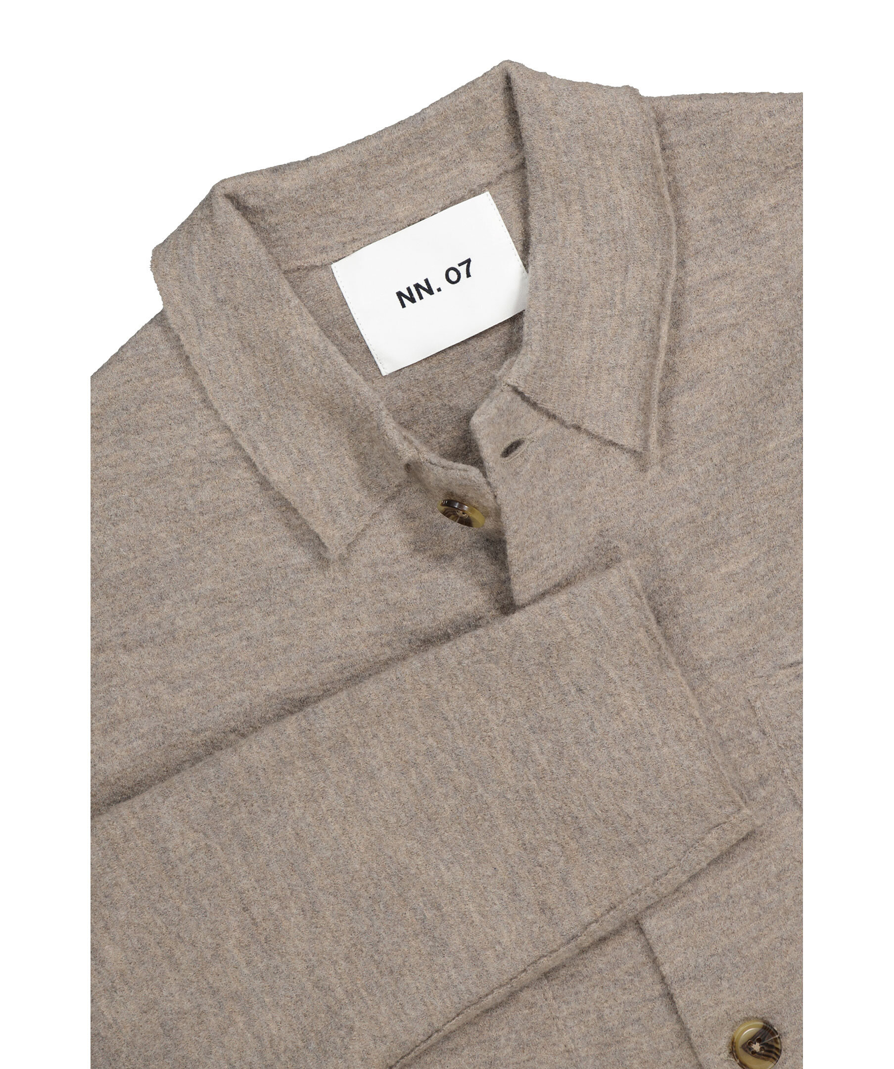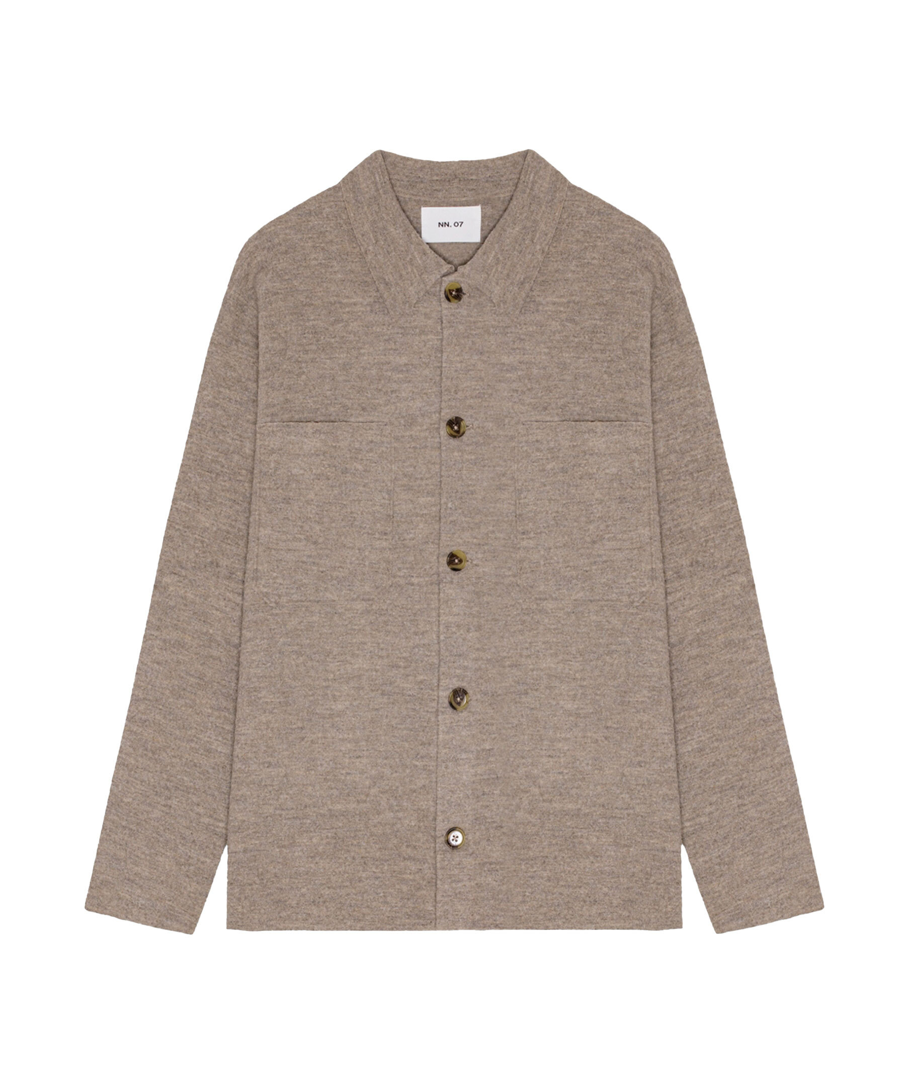 Beige, stickad overshirt från NN07. Skjortan stängs med knappar framtill och har två påsydda bröstfickor. Tillverkad i en mjuk kokt merinoull.