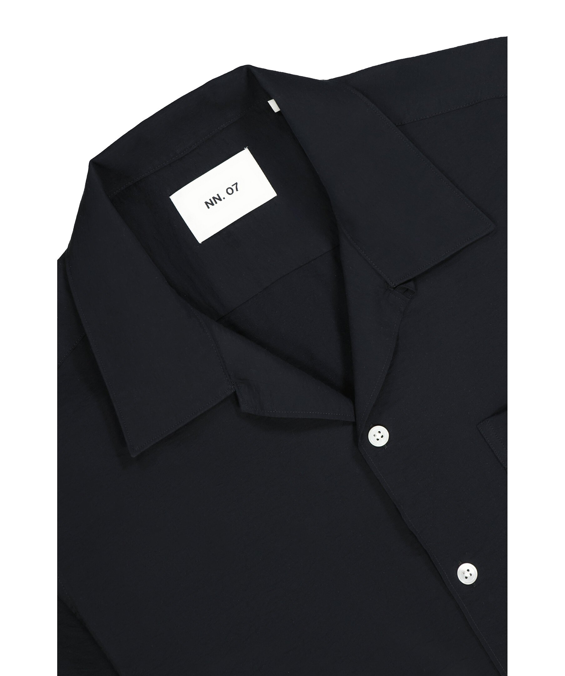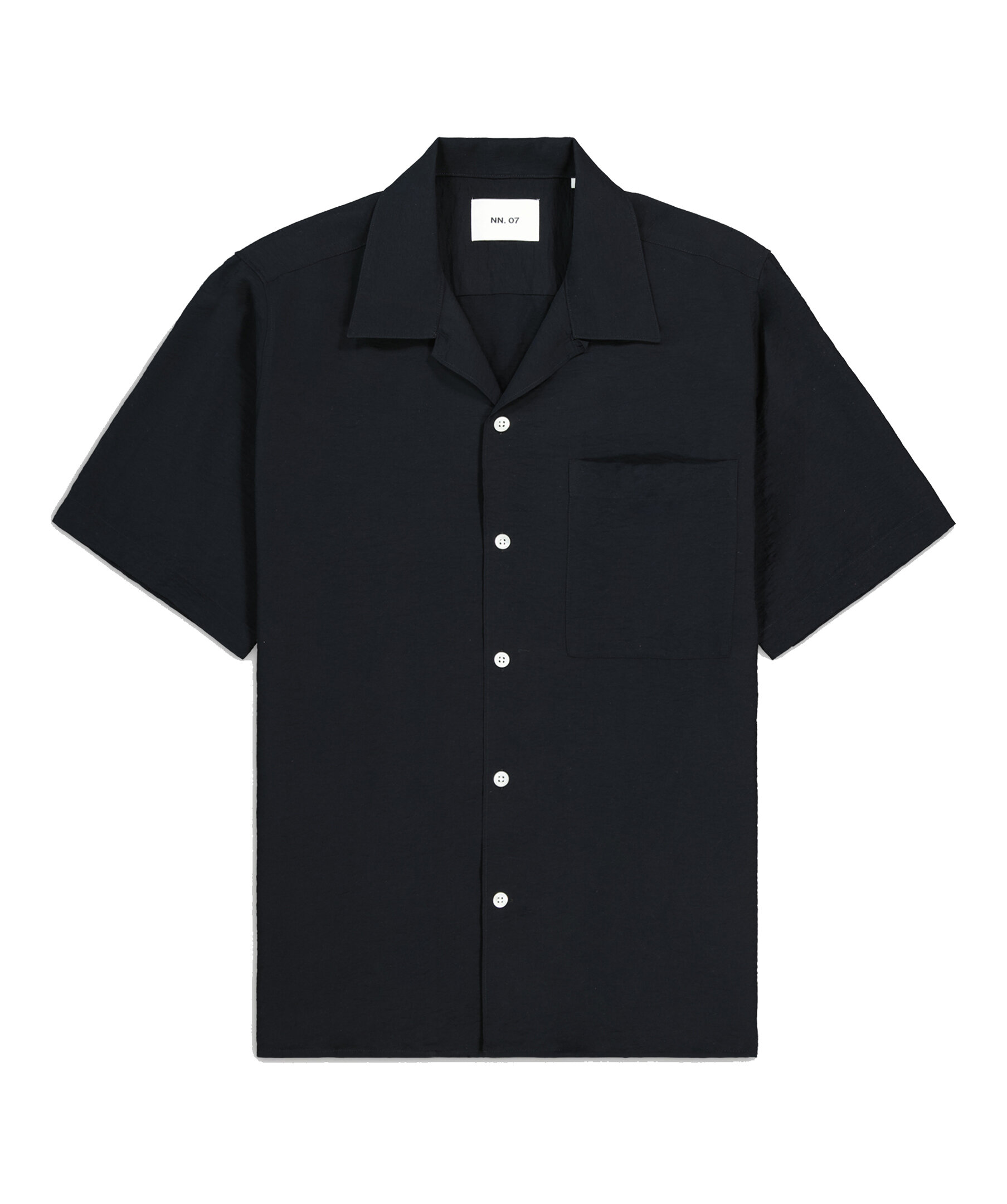 Svart, kortärmad skjorta från NN07. Tillverkad i en mjuk TENCEL™ modalblandning med öppen krage och enkel bröstficka. Prydd med pärlemorknappar. Normal passform.