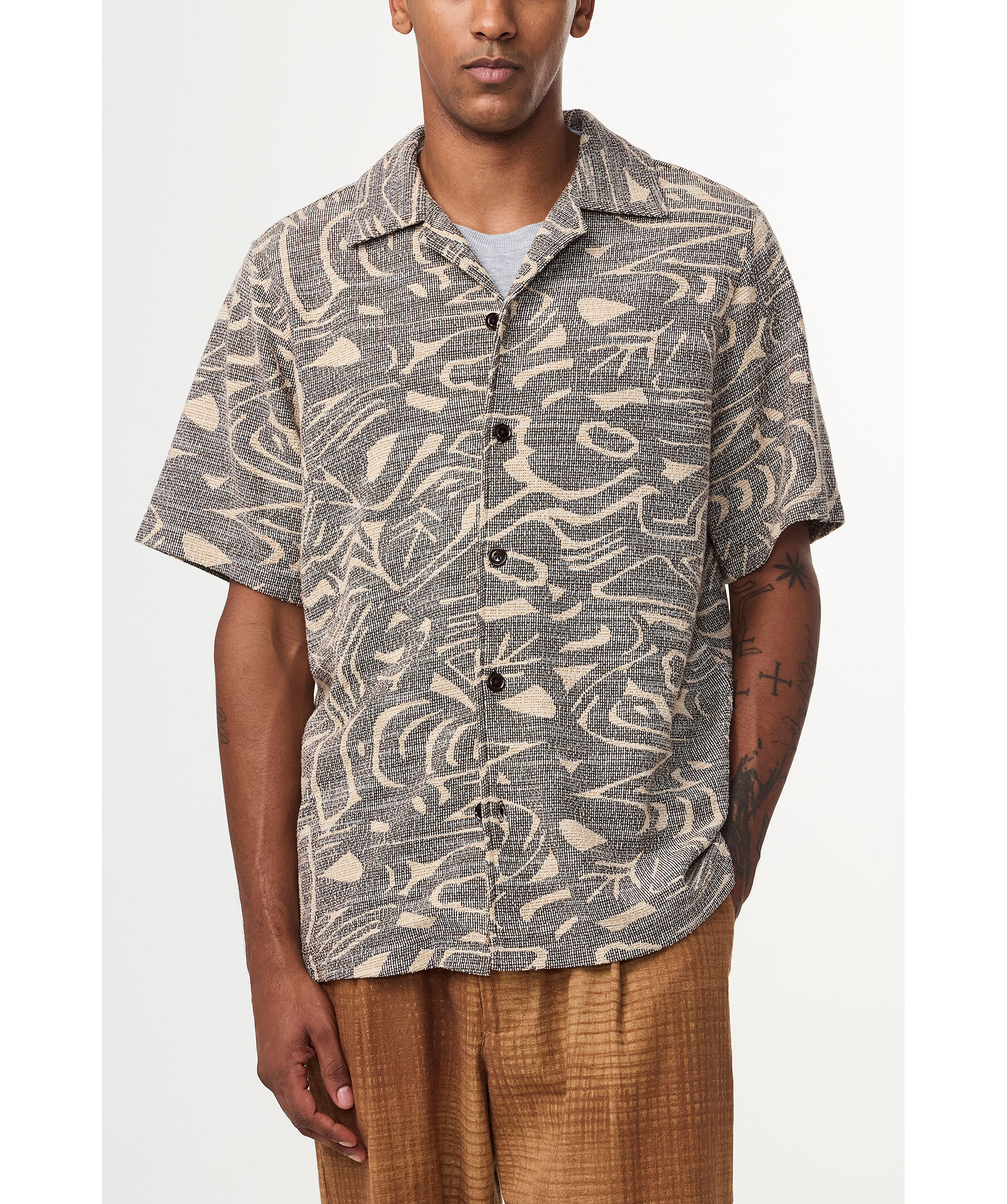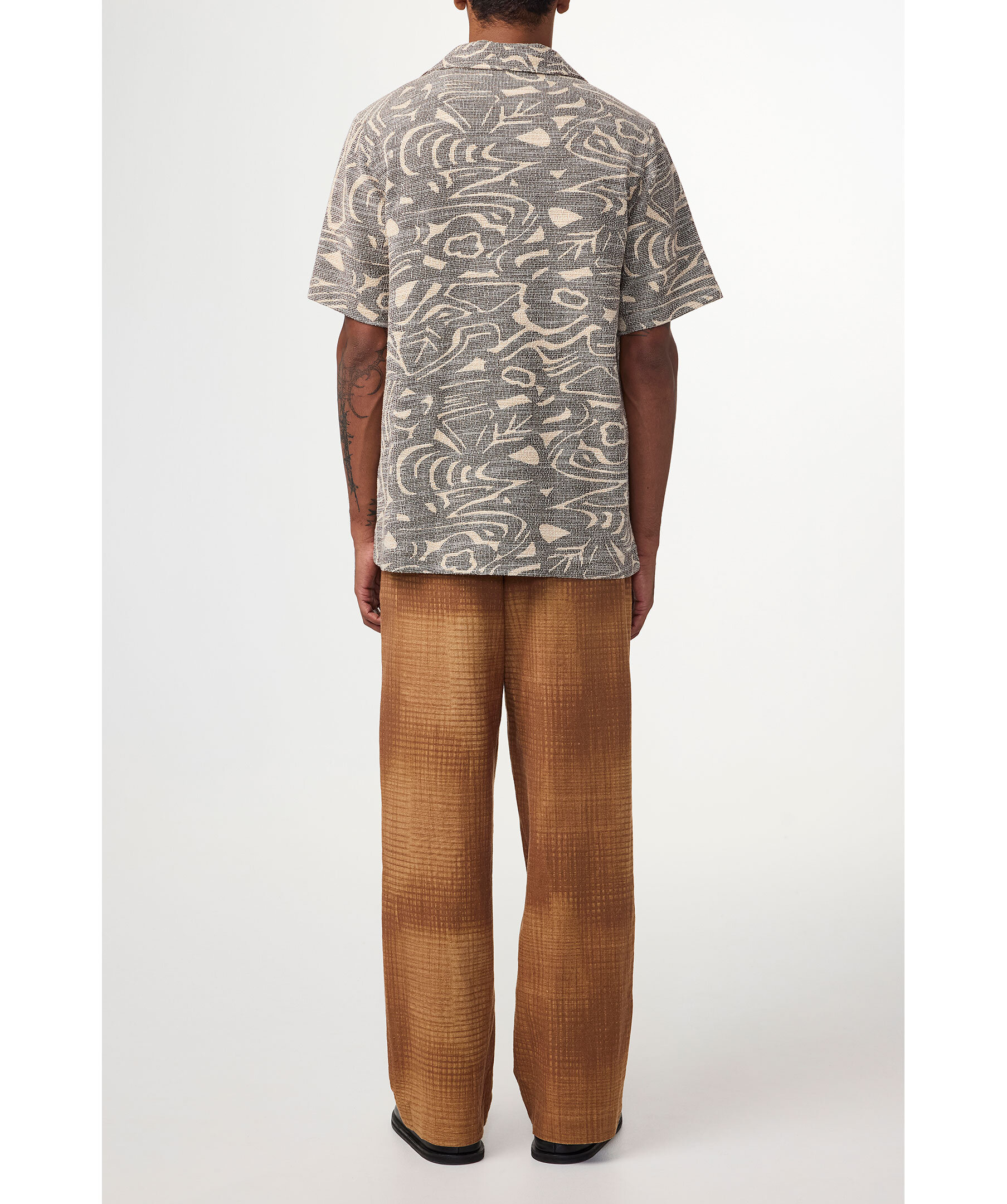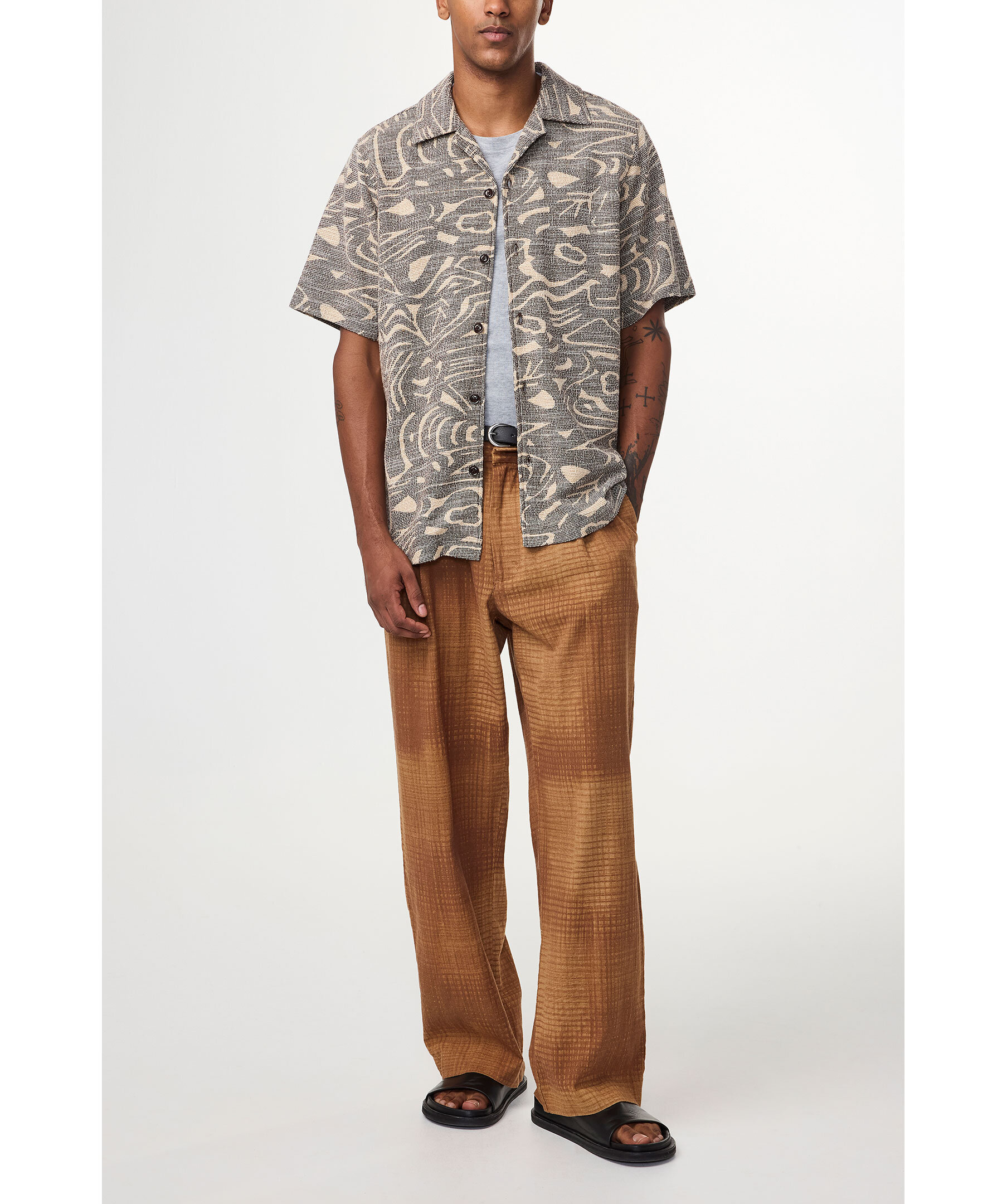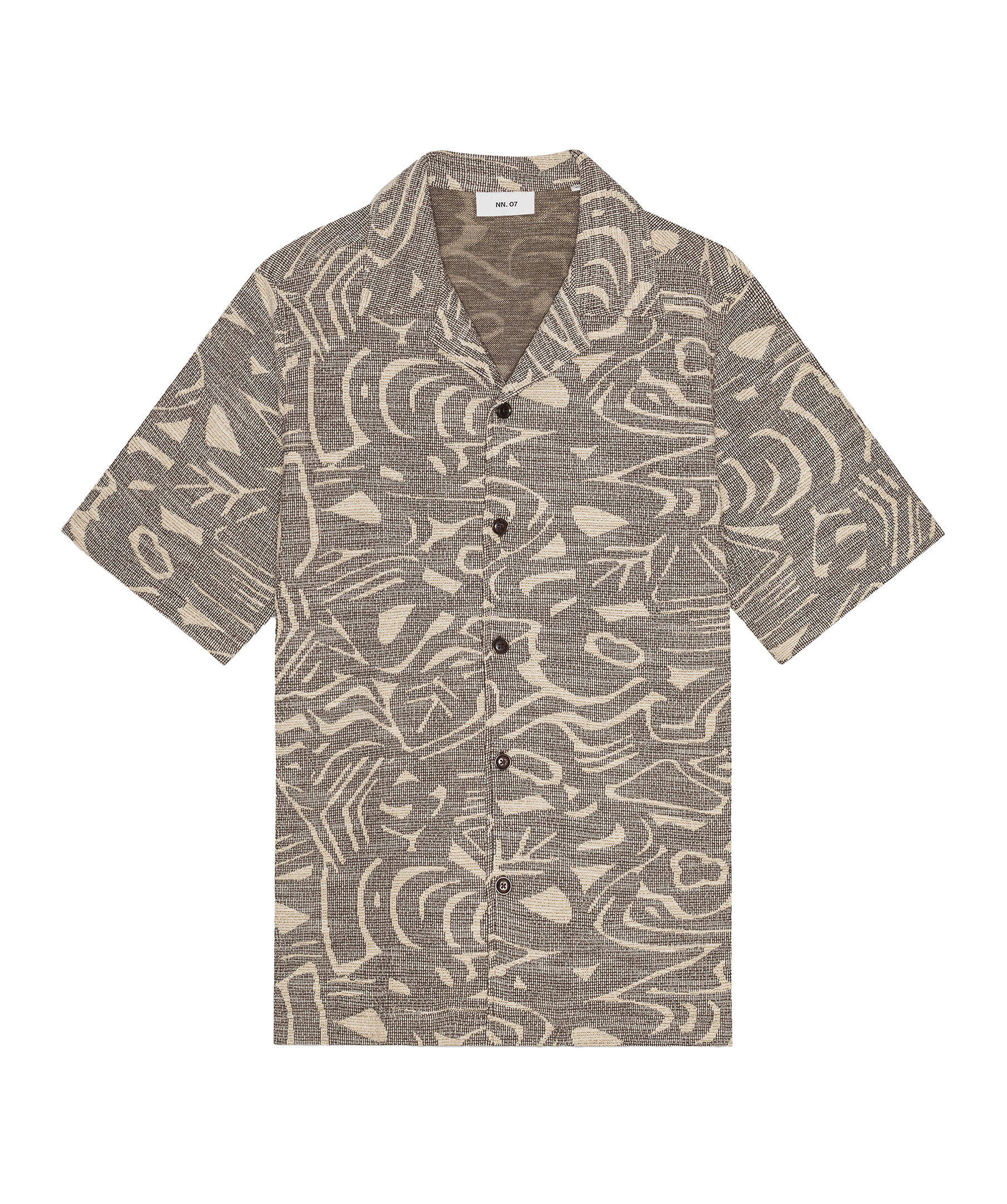 Brun, mönstrad skjorta i en kortärmad modell från NN07. Skjortan har öppen krage och är designad i en heltäckande bouclé-jacquard. Tillverkad i återvunnen polyester- och bomullsblandning.