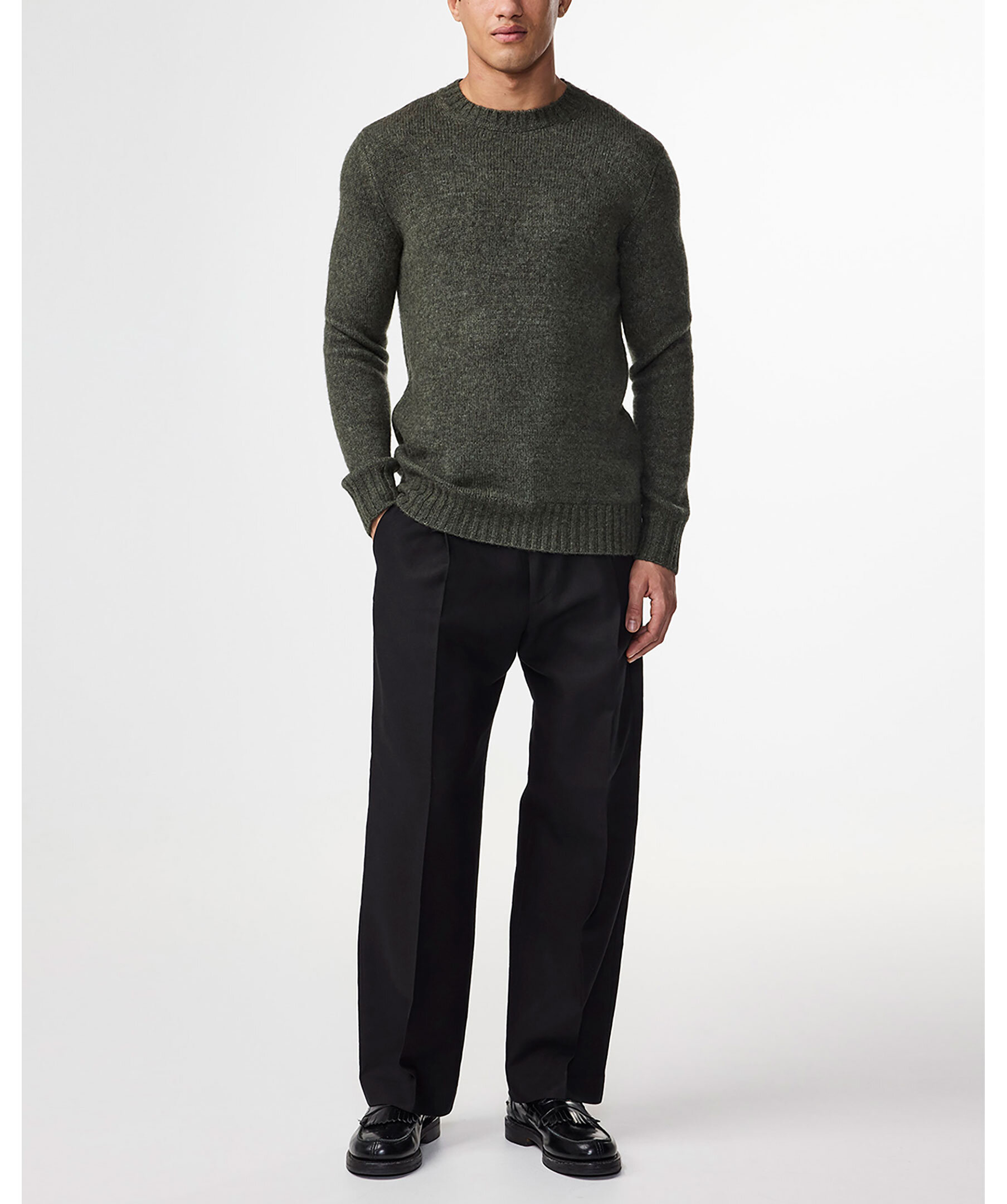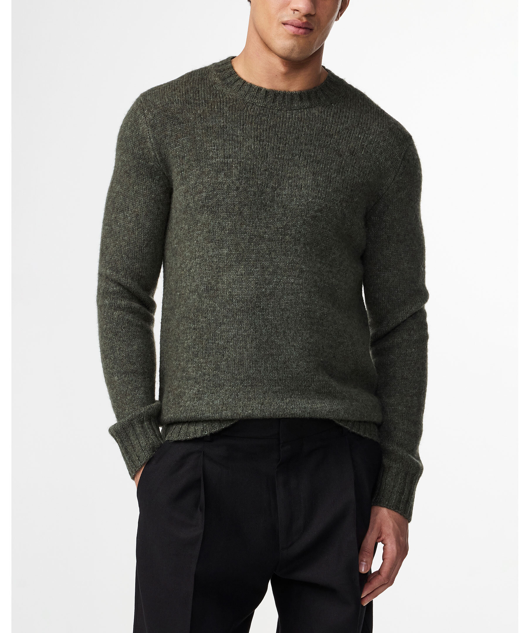 Grön, stickad tröja från NN.07. Rundad halsringning. Ribbstickad mudd vid kragen, ärm- och plaggslut. Tillverkad i ullblandning.