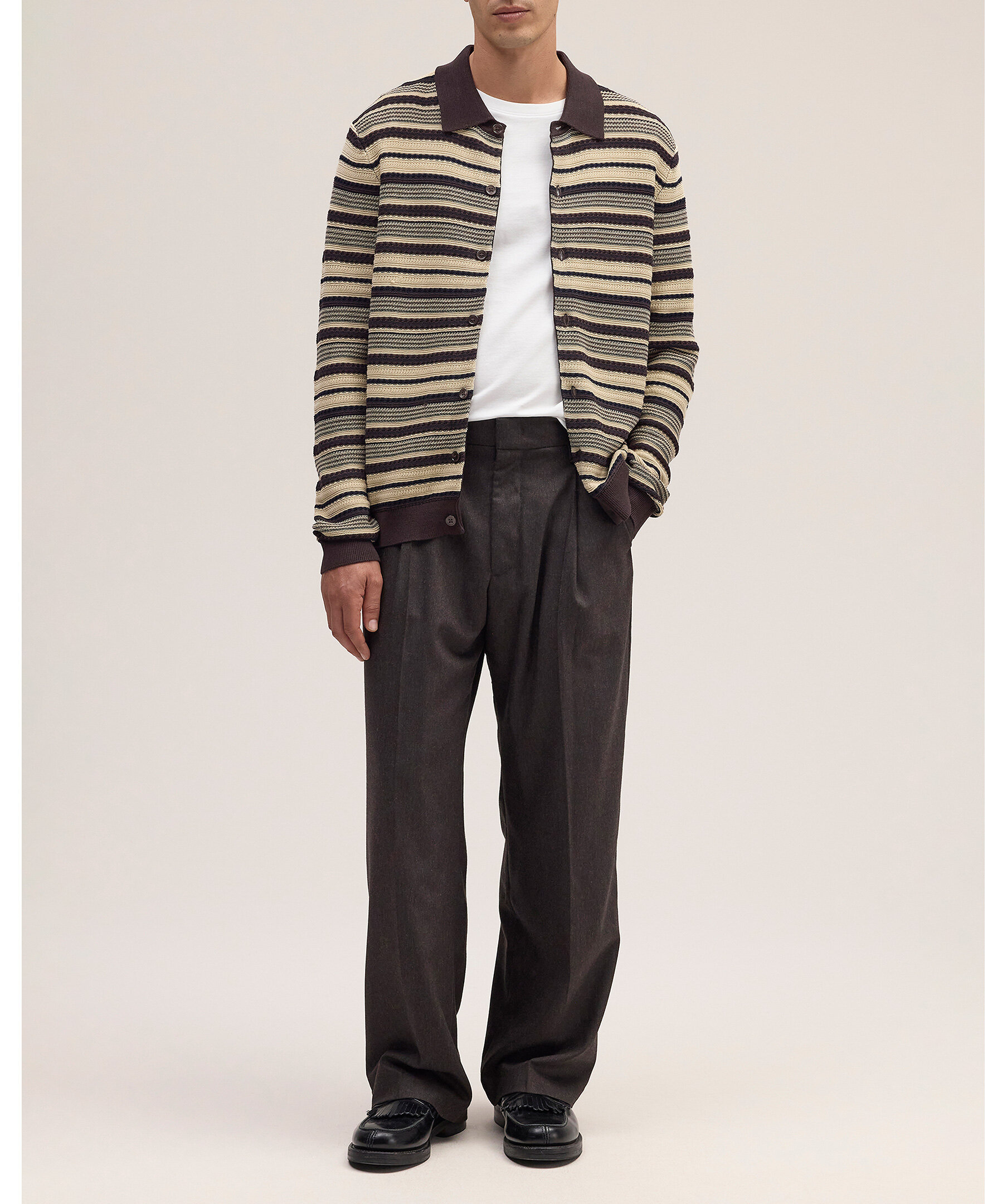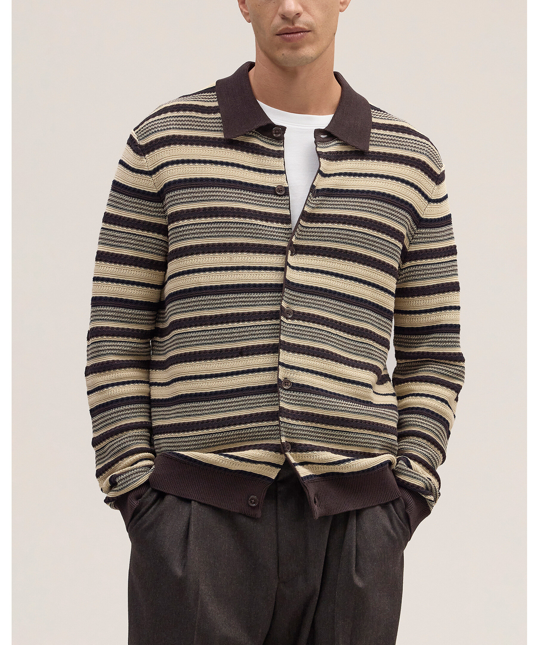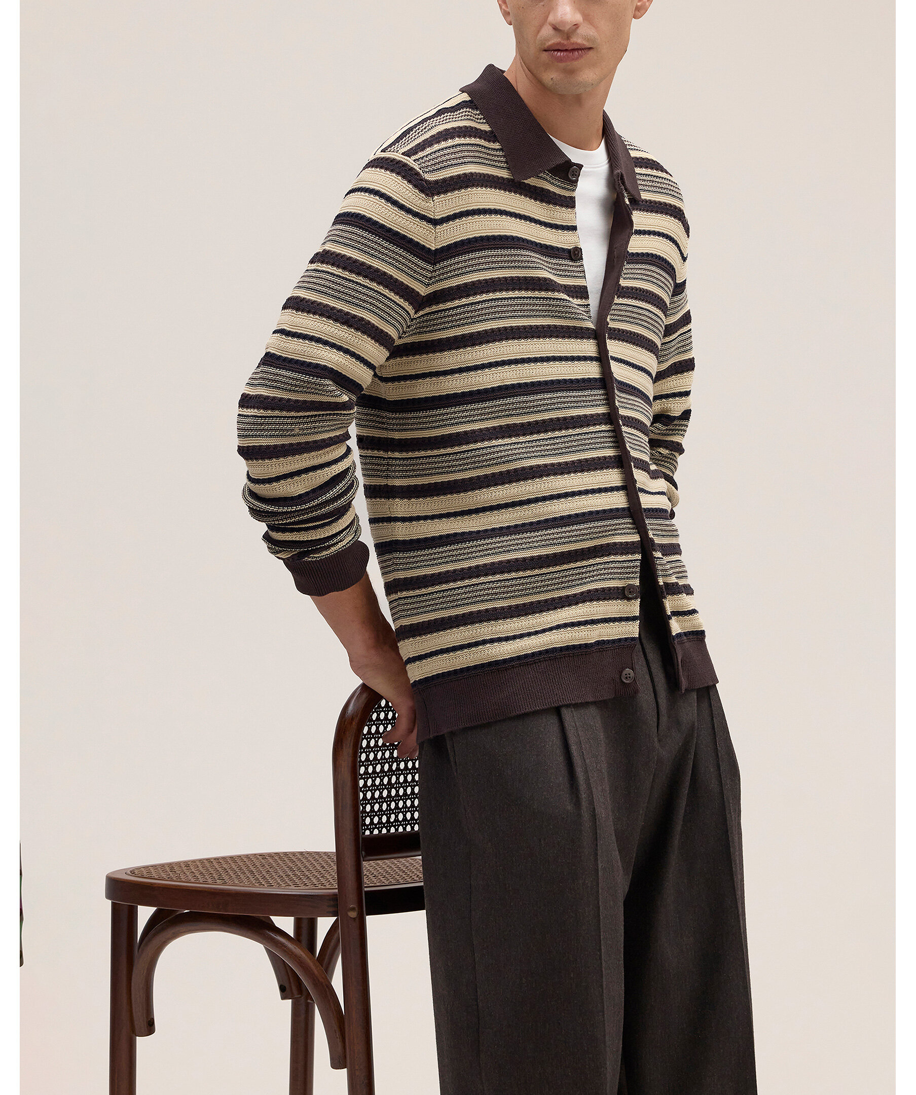 Långärmad pikétröja från NN07 i ekologisk bomull med texturerad stickning och randigt mönster. Den har klassisk polokrage och knappar framtill samt en regular fit‑passform som gör den perfekt för både vardags‑ och smart casual‑looks.