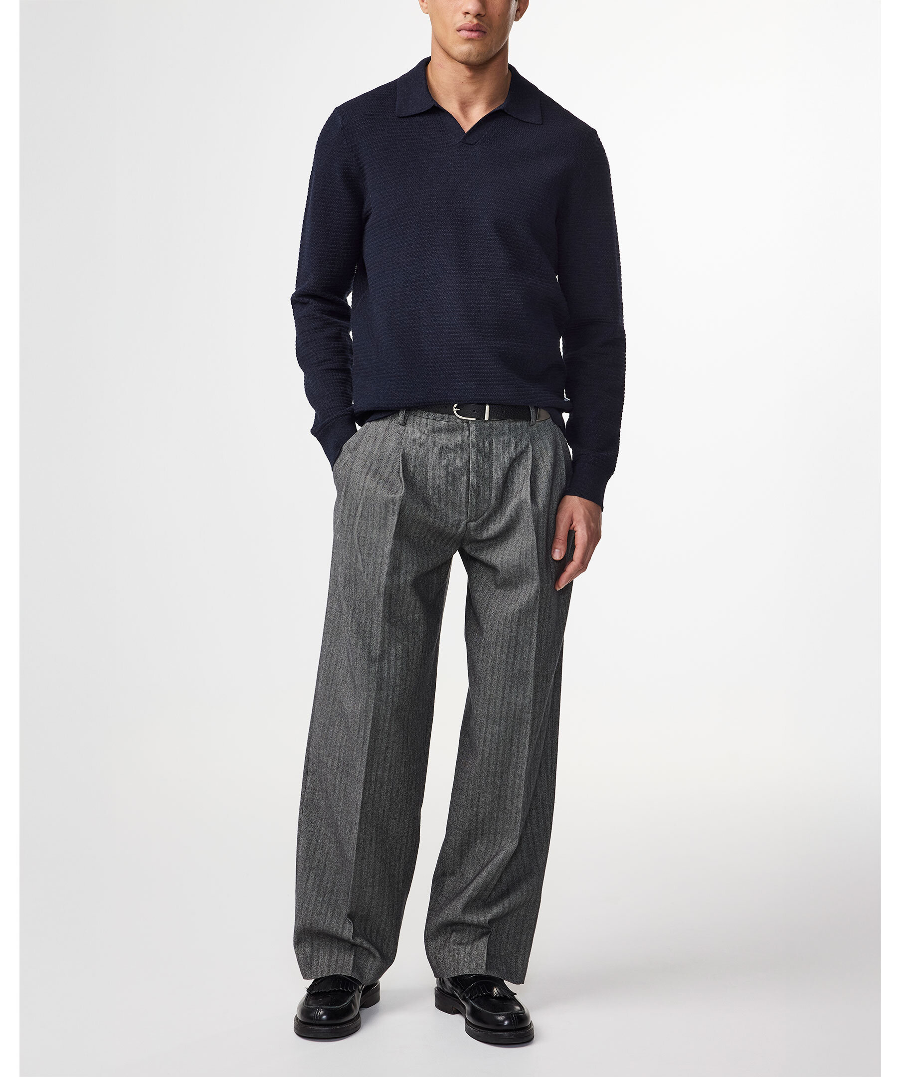 Långärmad pikétröja från NN.07. Tröjan har en öppen krage och är gjord i mjuk ekologisk bomullsjersey med subtil strukturstickning som ger extra karaktär. Den har en rak passform och är tillverkad i 100 % ekologisk bomull