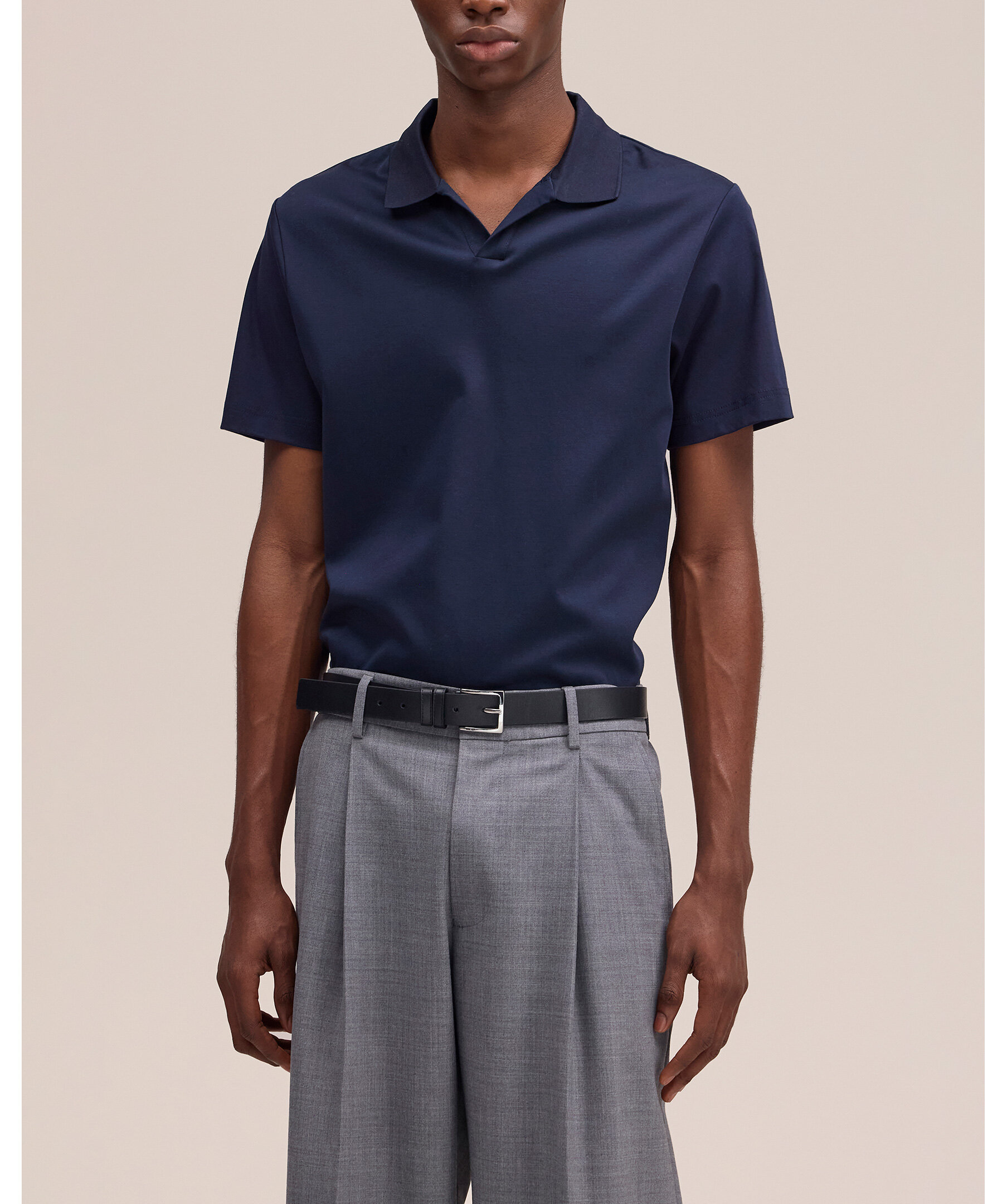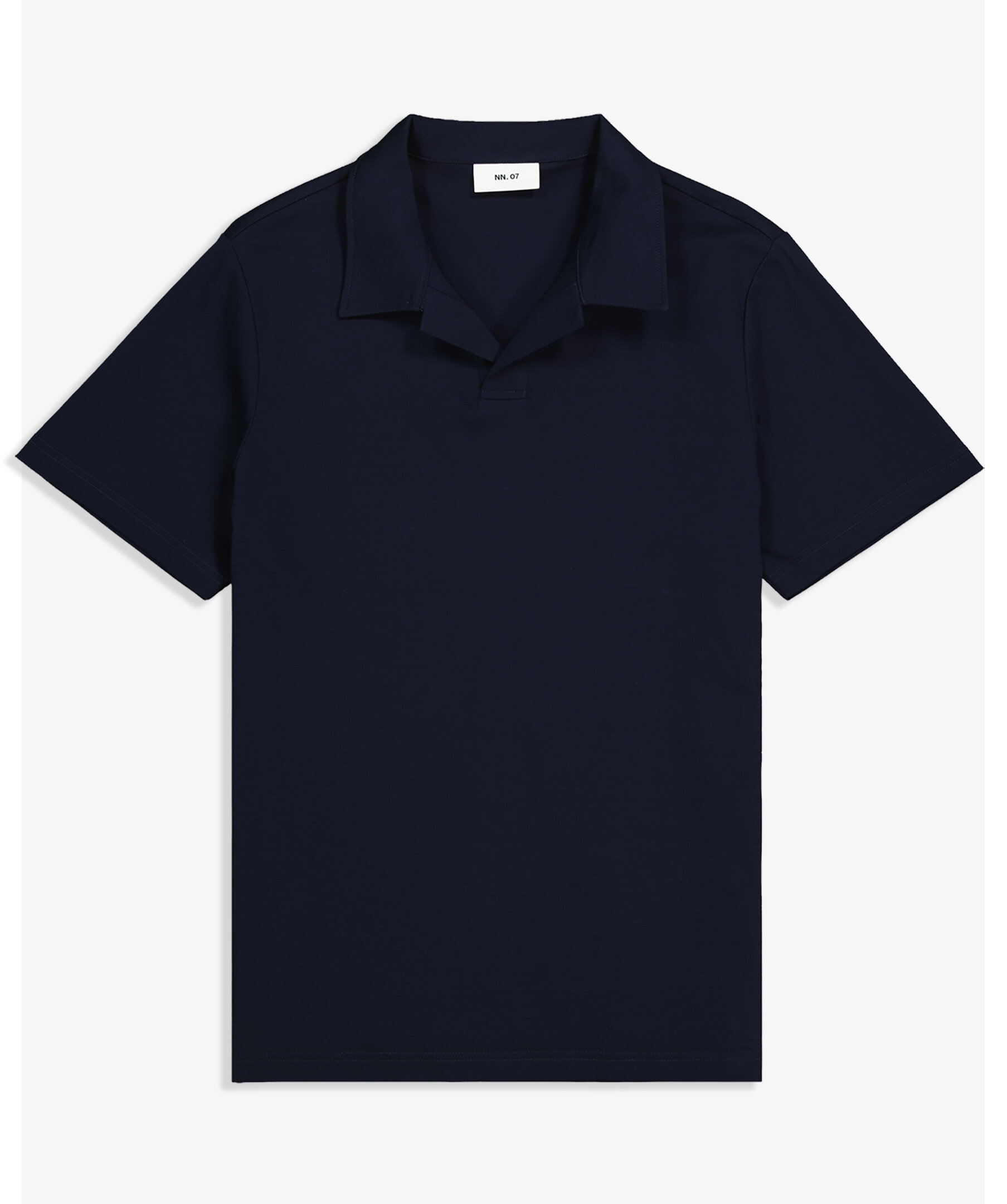 Mörkblå, kortärmad pikétröja från NN07. Pikén har en öppen krage och är tillverkad i ekologisk bomull.
