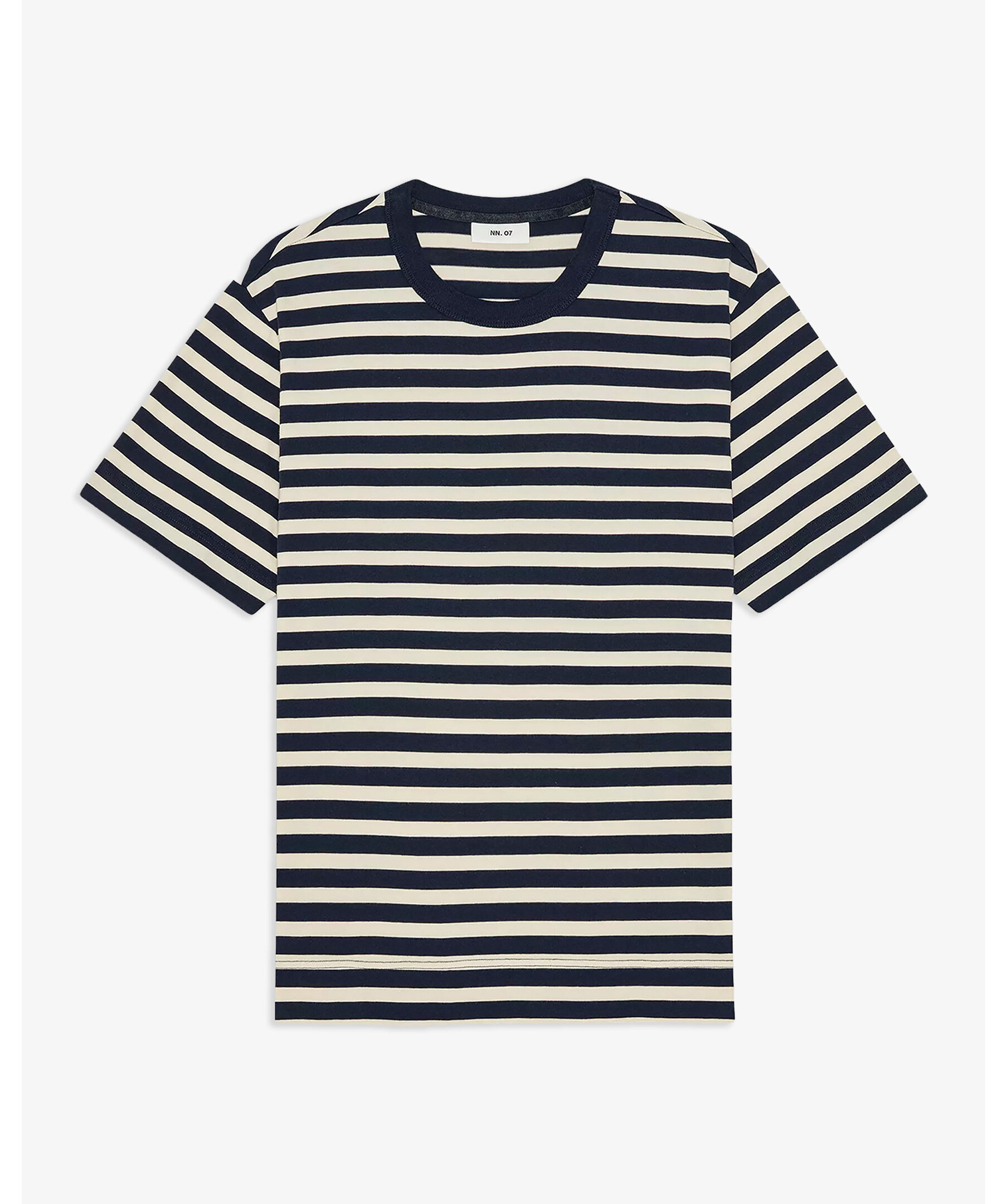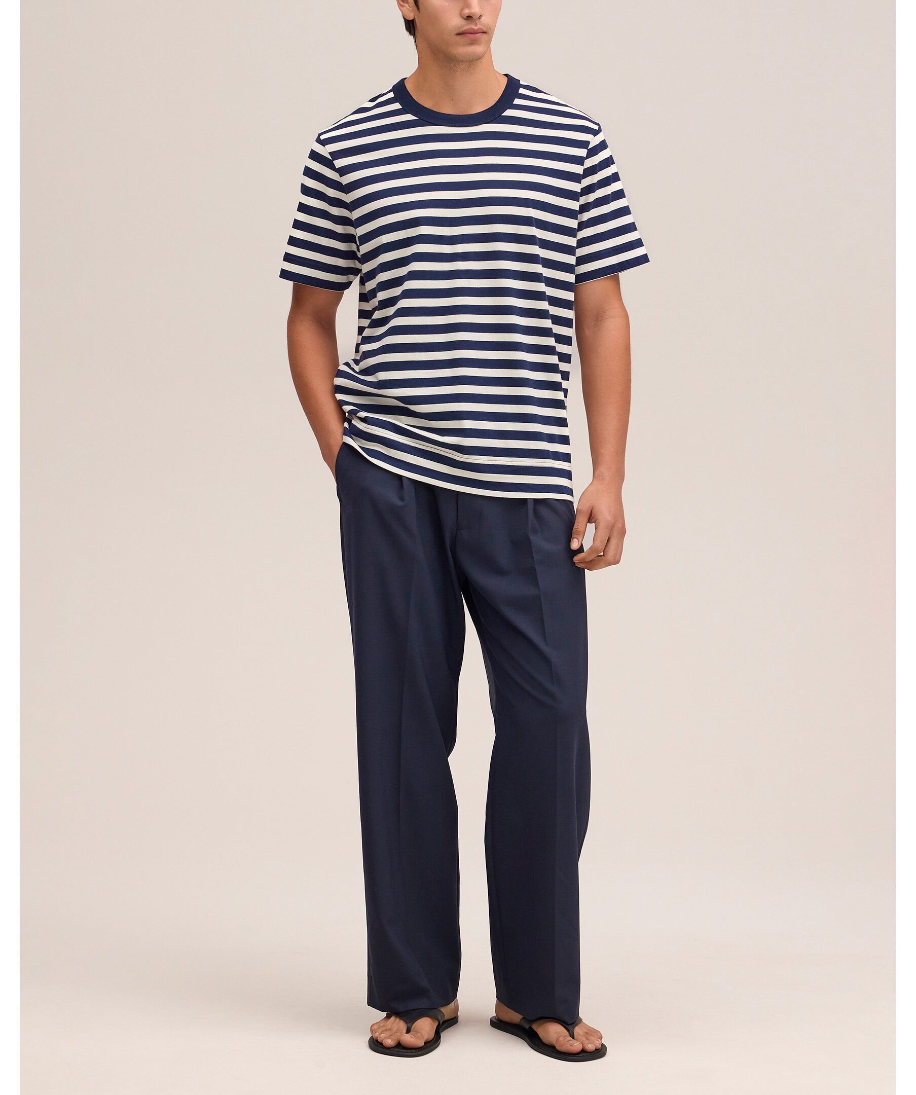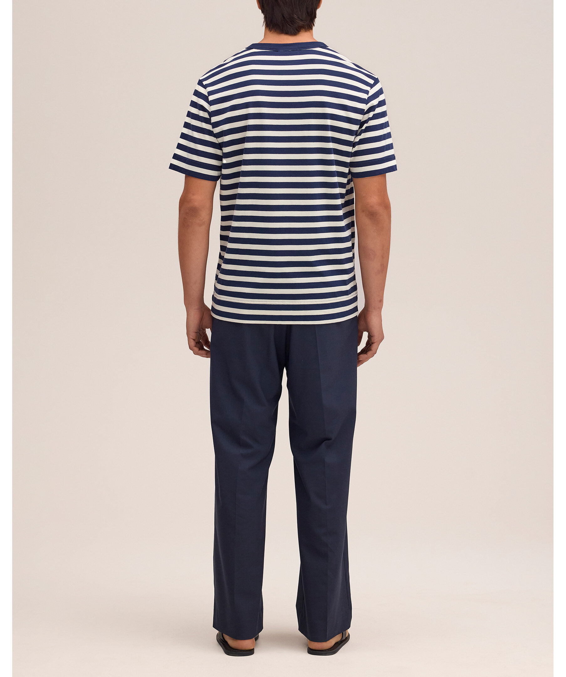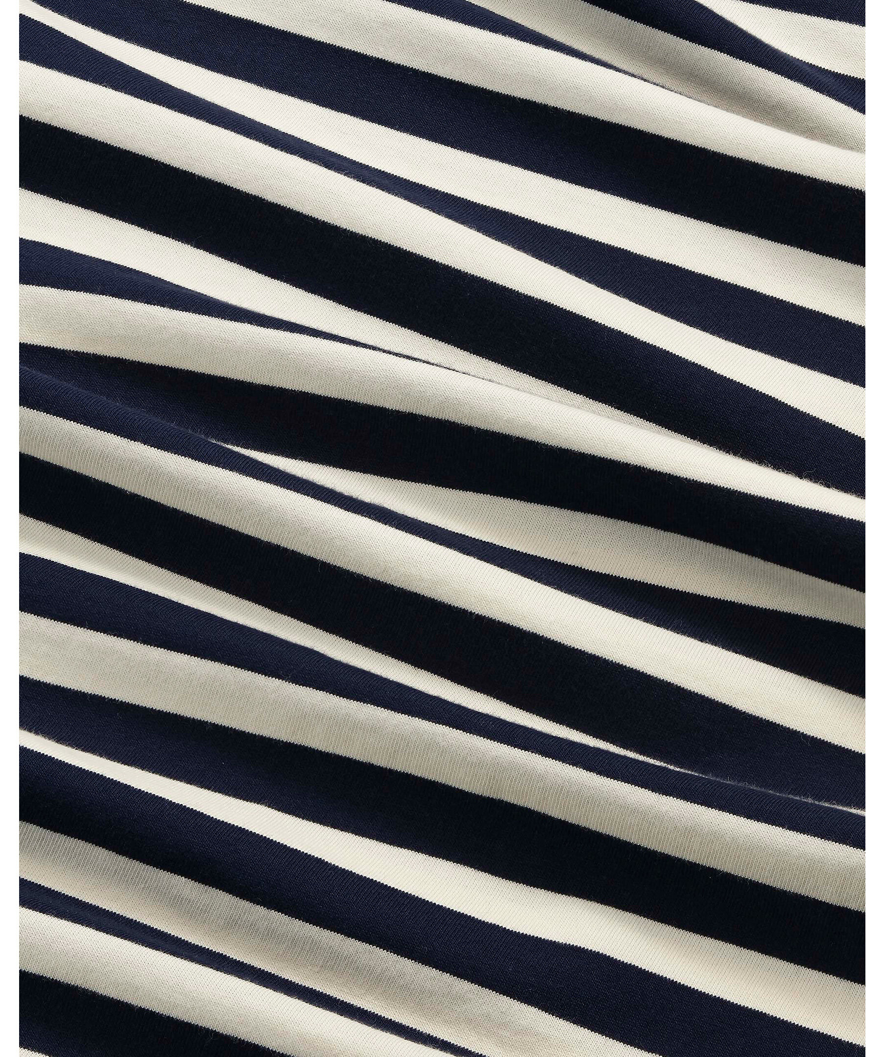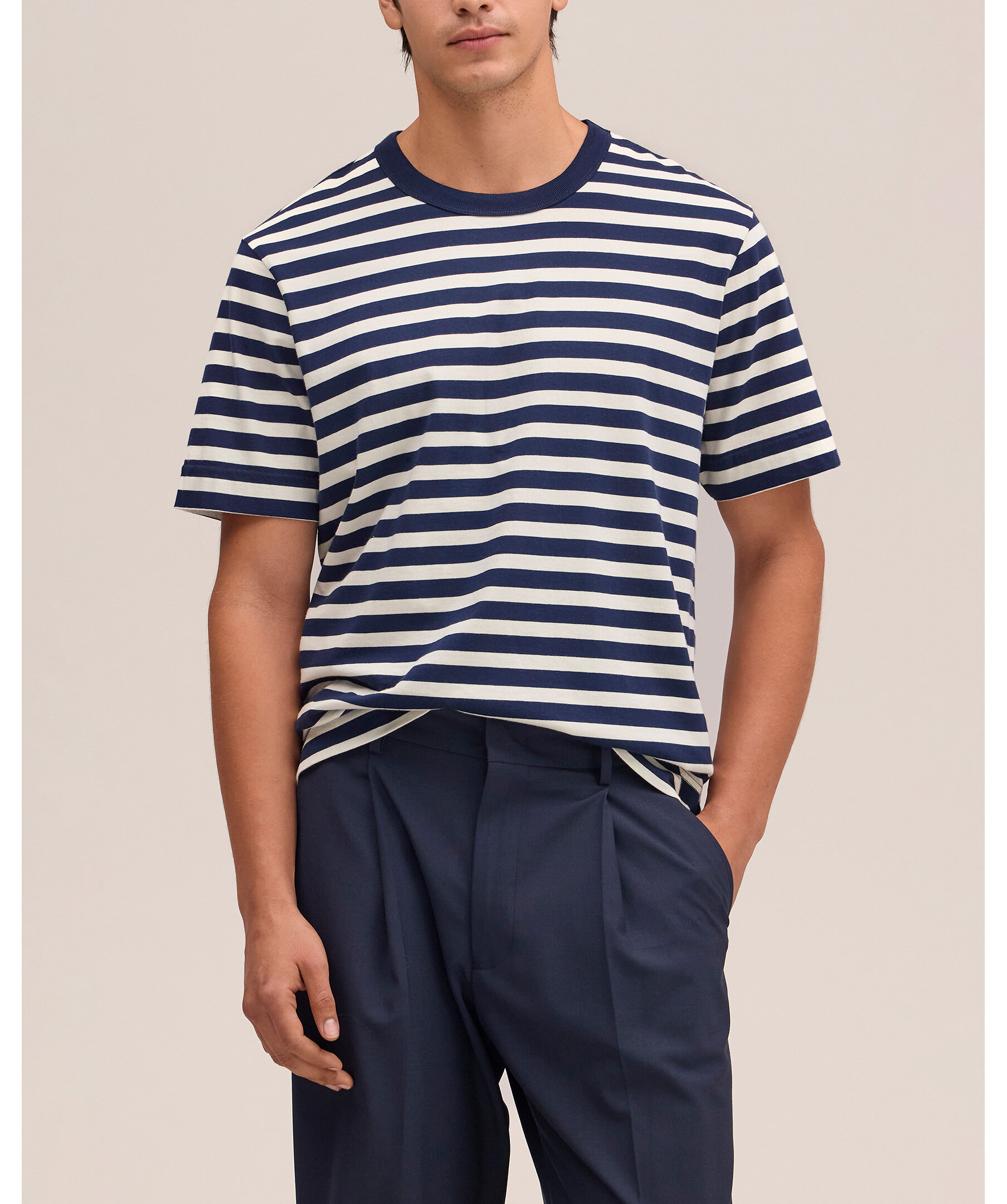 Kortärmad randig t-shirt tillverkad av lång bomullstråd som ger en mjuk och silkeslen känsla.
