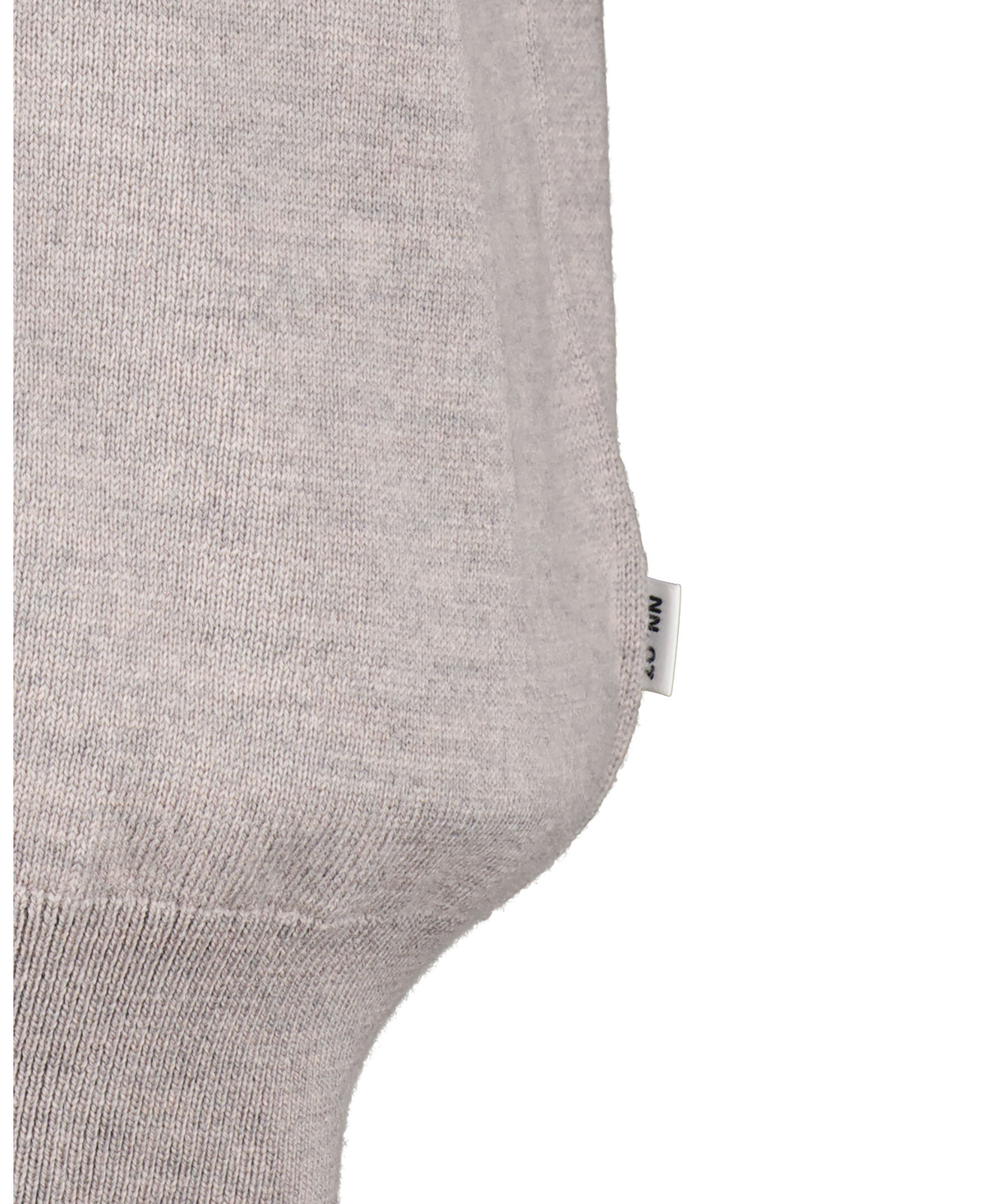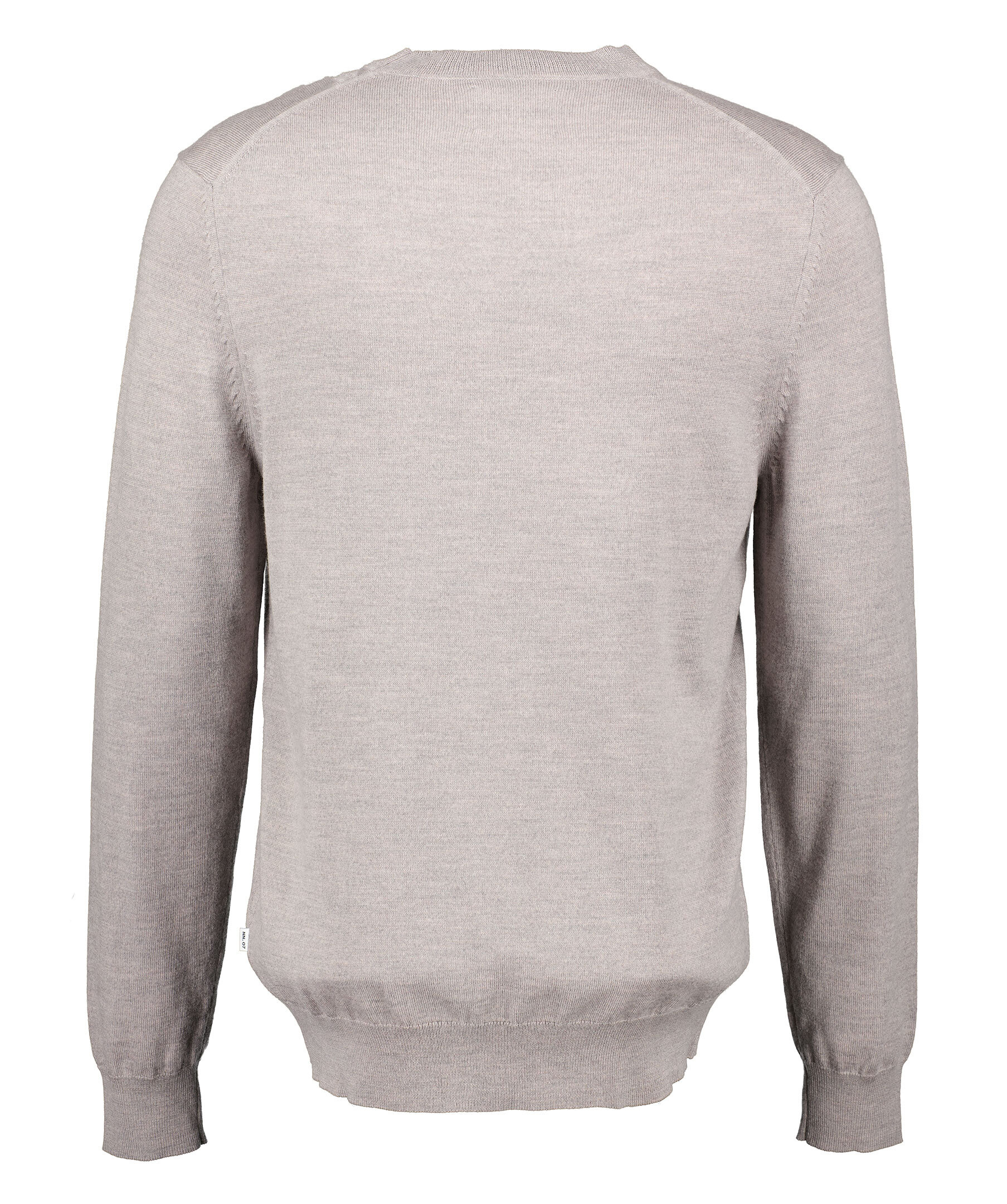 Gråmelerad finstickad tröja från Ted Knit. Rundad halsringning. Ribbstickade muddar vid kragen, ärm- och plaggslut. Tillverkad i 100% Ull.
