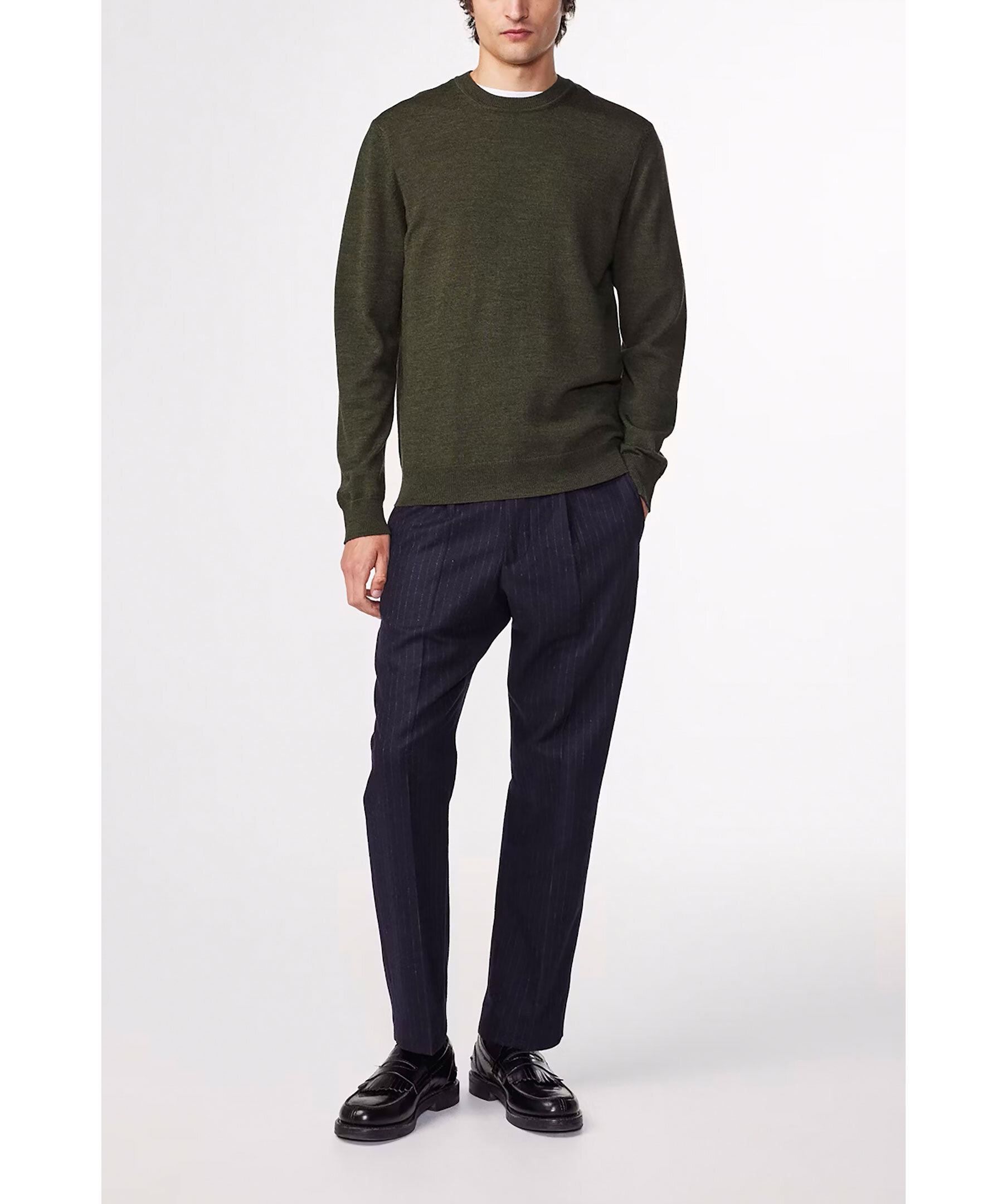 Mörkgrön stickad tröja från NN.07. Rundhalsad och tillverkad i mjuk, ansvarsfull ull. Med en axel som faller bakåt med subtila modemärken.