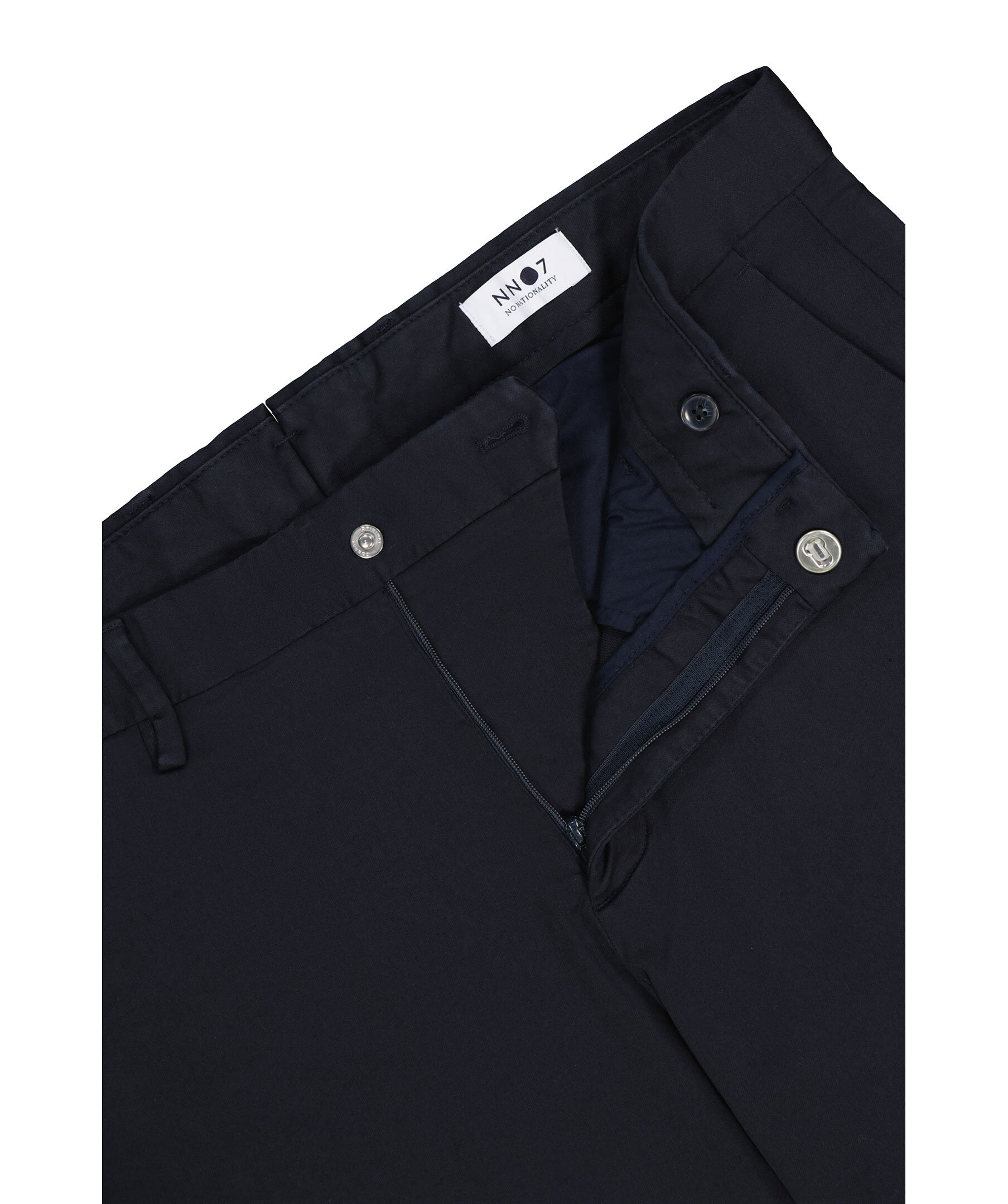 Svarta chinobyxor från NN07. Gylf som stängs med dragkedja och knapp, tryckknapp. Avsmalnande ben. Hällor för bälte. Två fickor framtill, två bakfickor. Tillverkade i en stretchig bomullsblandning.