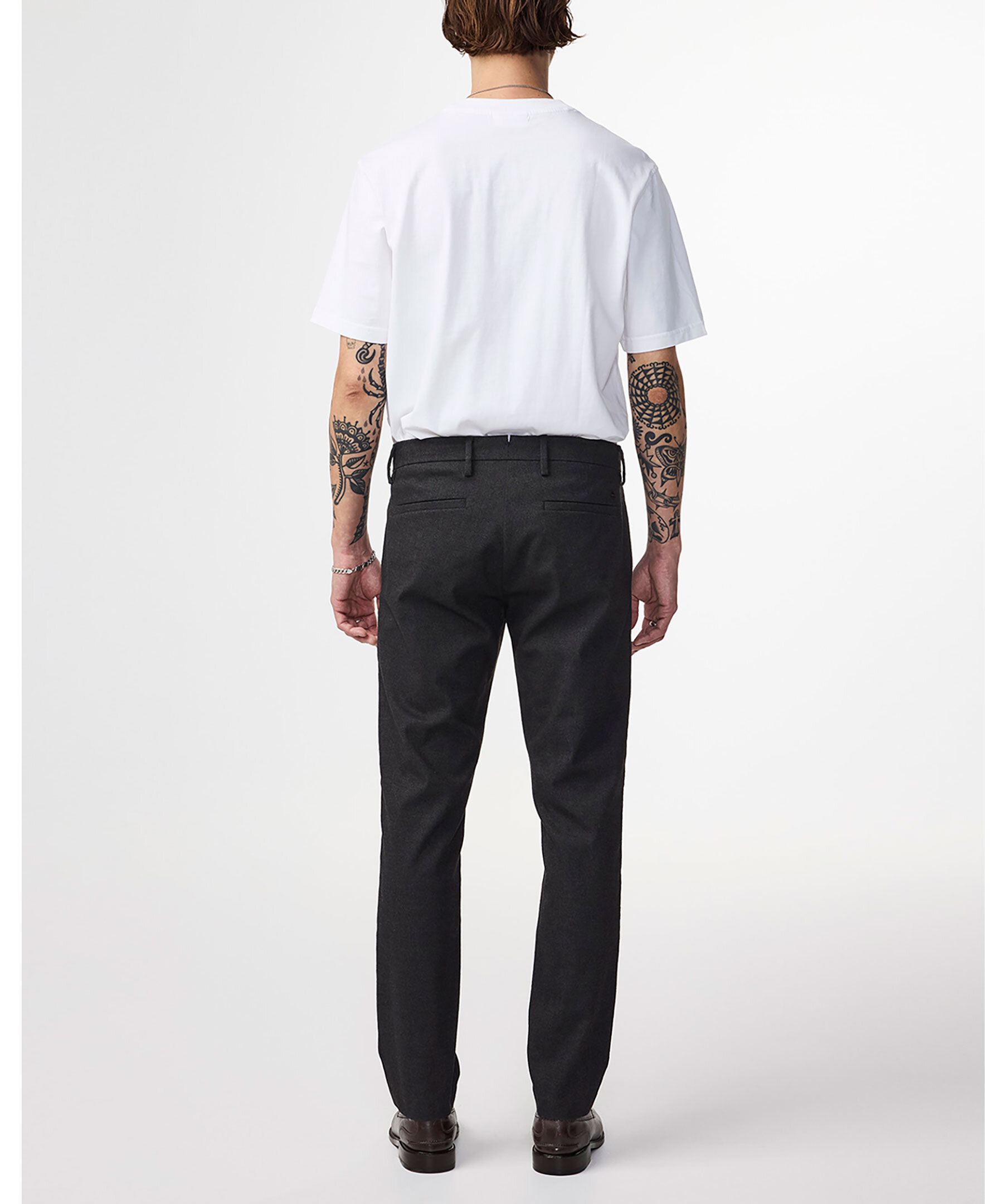 Svarta chinos från NN07. Byxorna har avsmalnande ben, bälteshällor i midjan, två sidfickor samt två passpoalfickor baktill. Tillverkad i en borstad bomullskypert melangeblandning.