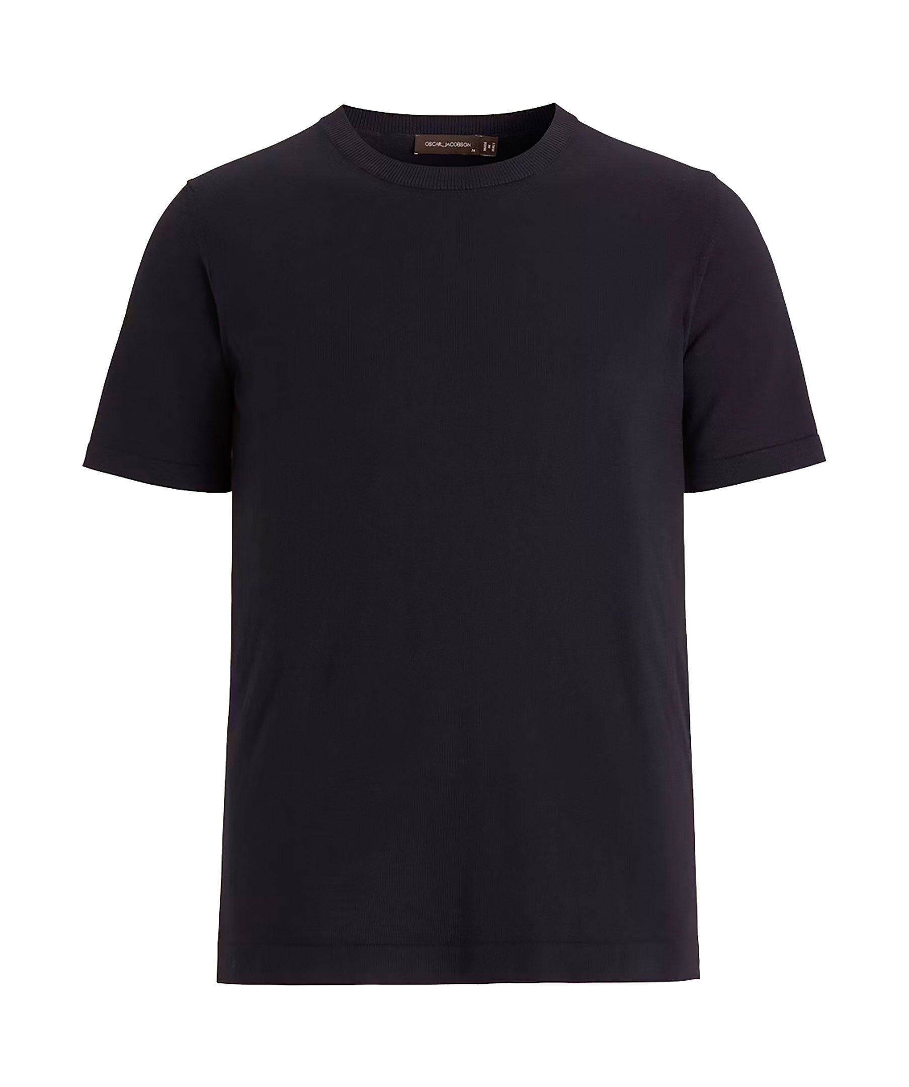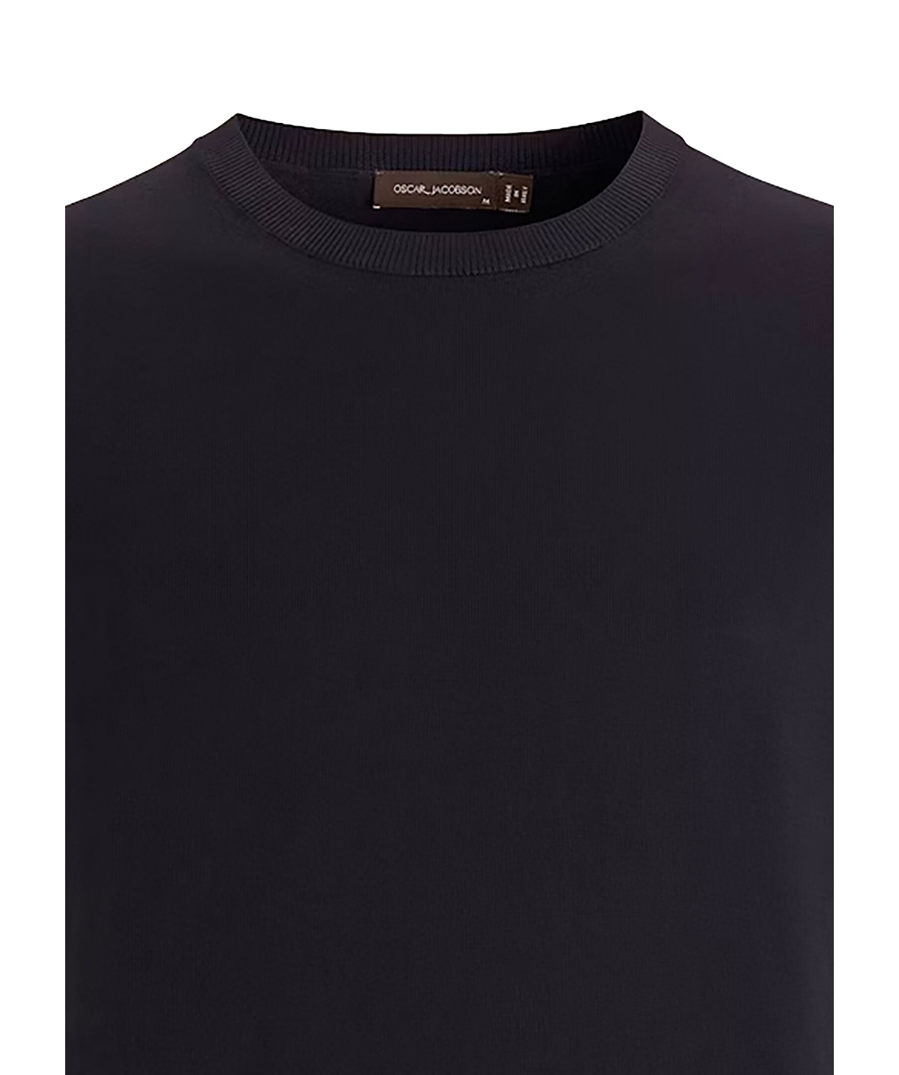 Marinblå T-shirt från Oscar Jacobson. T-shirten är stickad med rundad hals, tillverkad av 100% bomull.