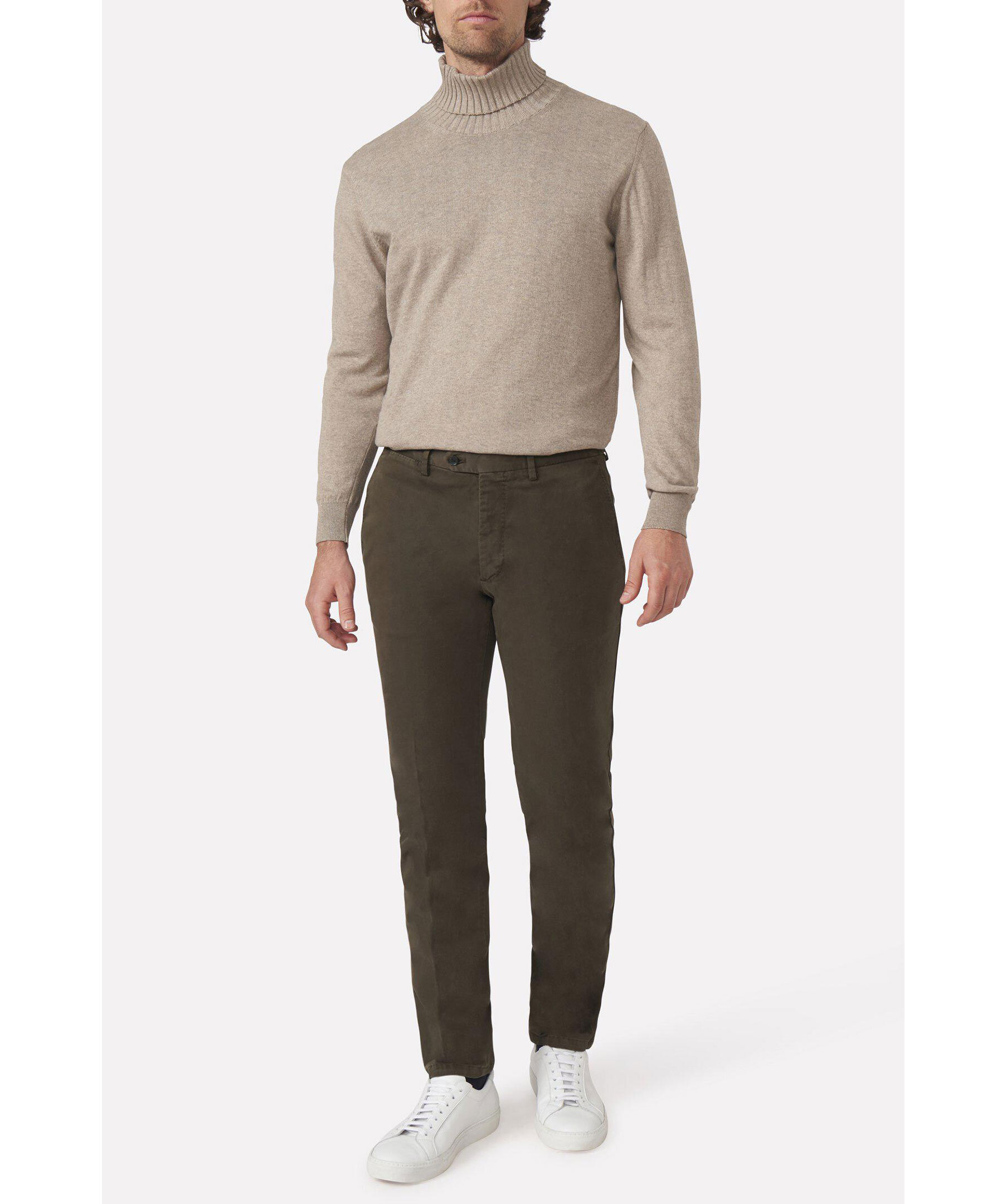 En uppdaterad version av den klassiska chinos-byxan. Den här modellen är regular fit, normalhög midja och en benlängd där byxan slutar precis ovanför skon och får ett naturligt fall utan bryt. Midjan är försedd med side adjusters - en stilfull detalj som dessutom kan användas för att göra byxans midjemått några cm mindre.