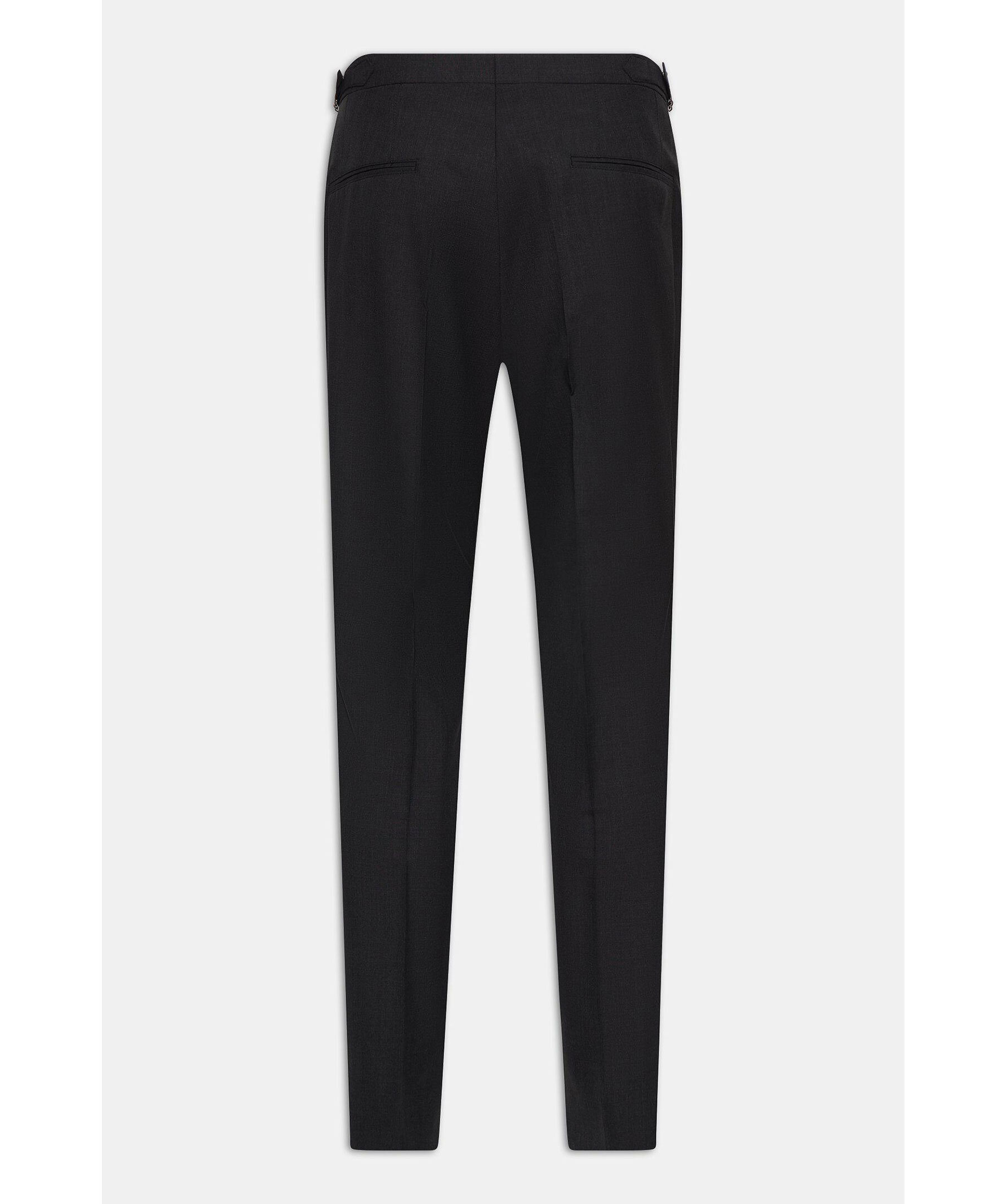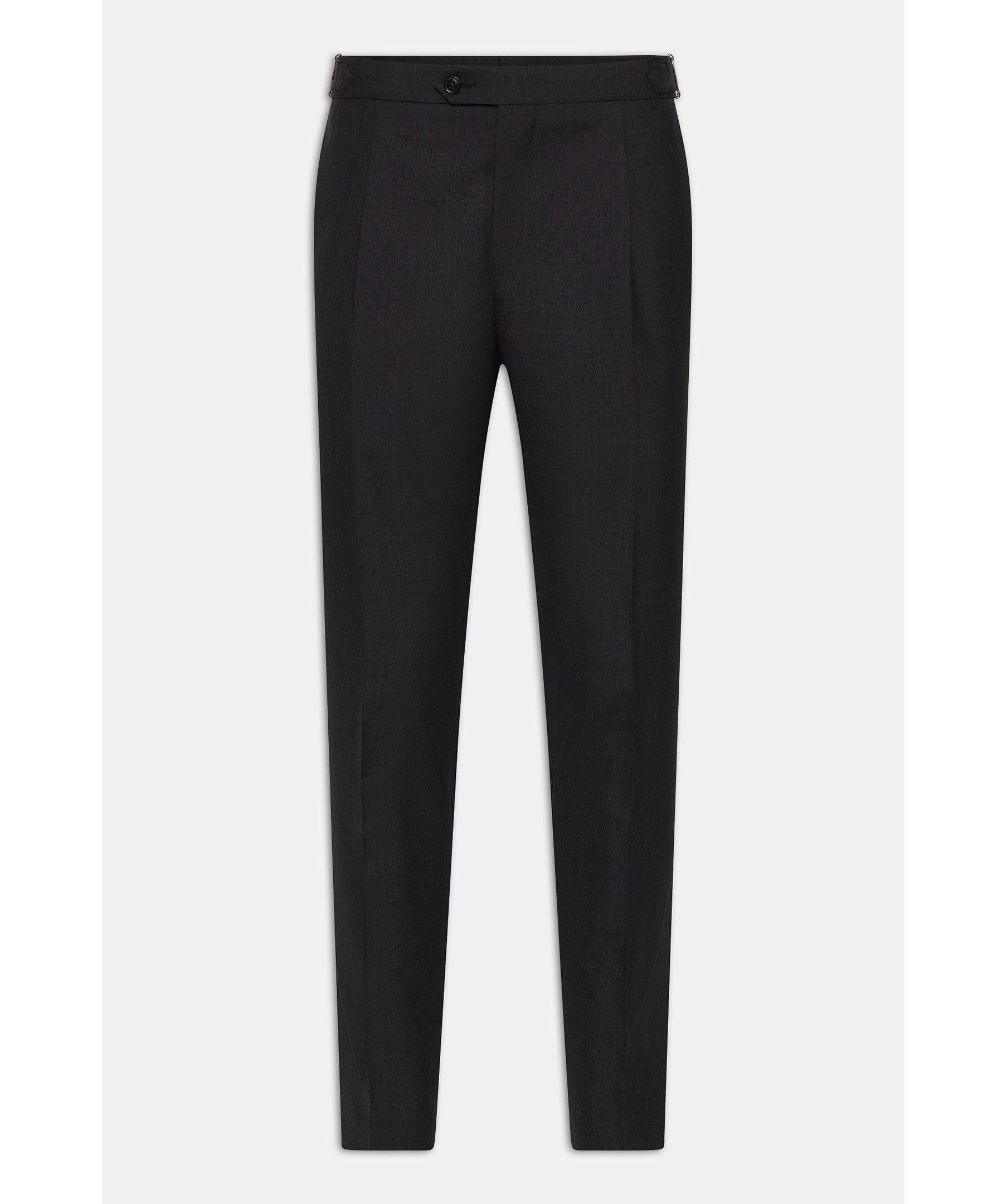 En av våra favoritbyxor med hög midja och frontveck, även försedda med eleganta sidospännen. Tillverkade i italiensk super 120’s ull från väveriet Vitale Barberis Canonico.