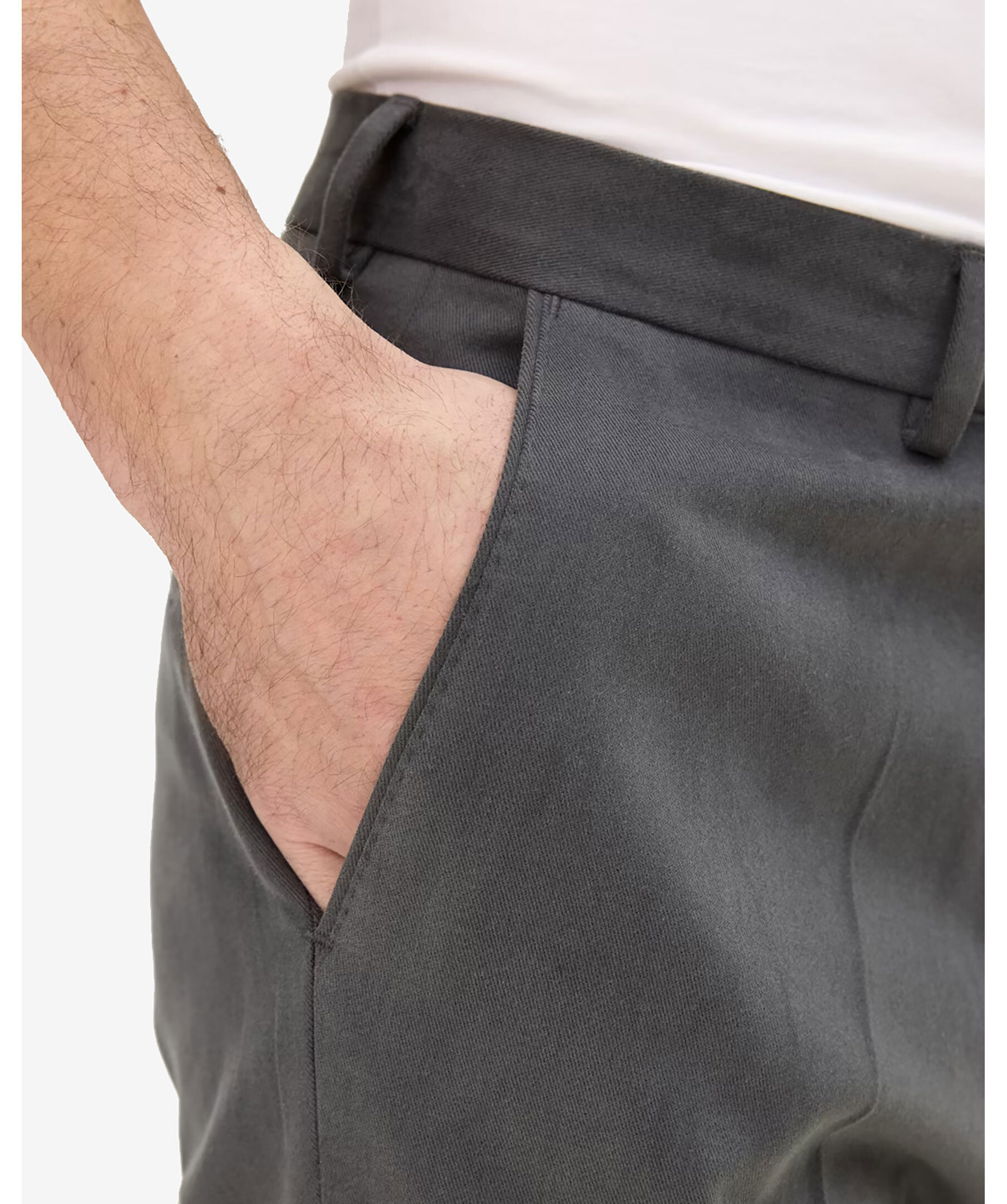 Gråa dressade byxor med smal passform från Oscar Jacobson. Uppslag i benslut och normalhög midja. Tillverkade i semi-formell kvalitet av borstad bomullstwill som ger både stil och komfort. Den mörkgrå färgen skapar ett sofistikerat intryck och gör byxorna perfekta för både kontoret och mer uppklädda tillfällen.