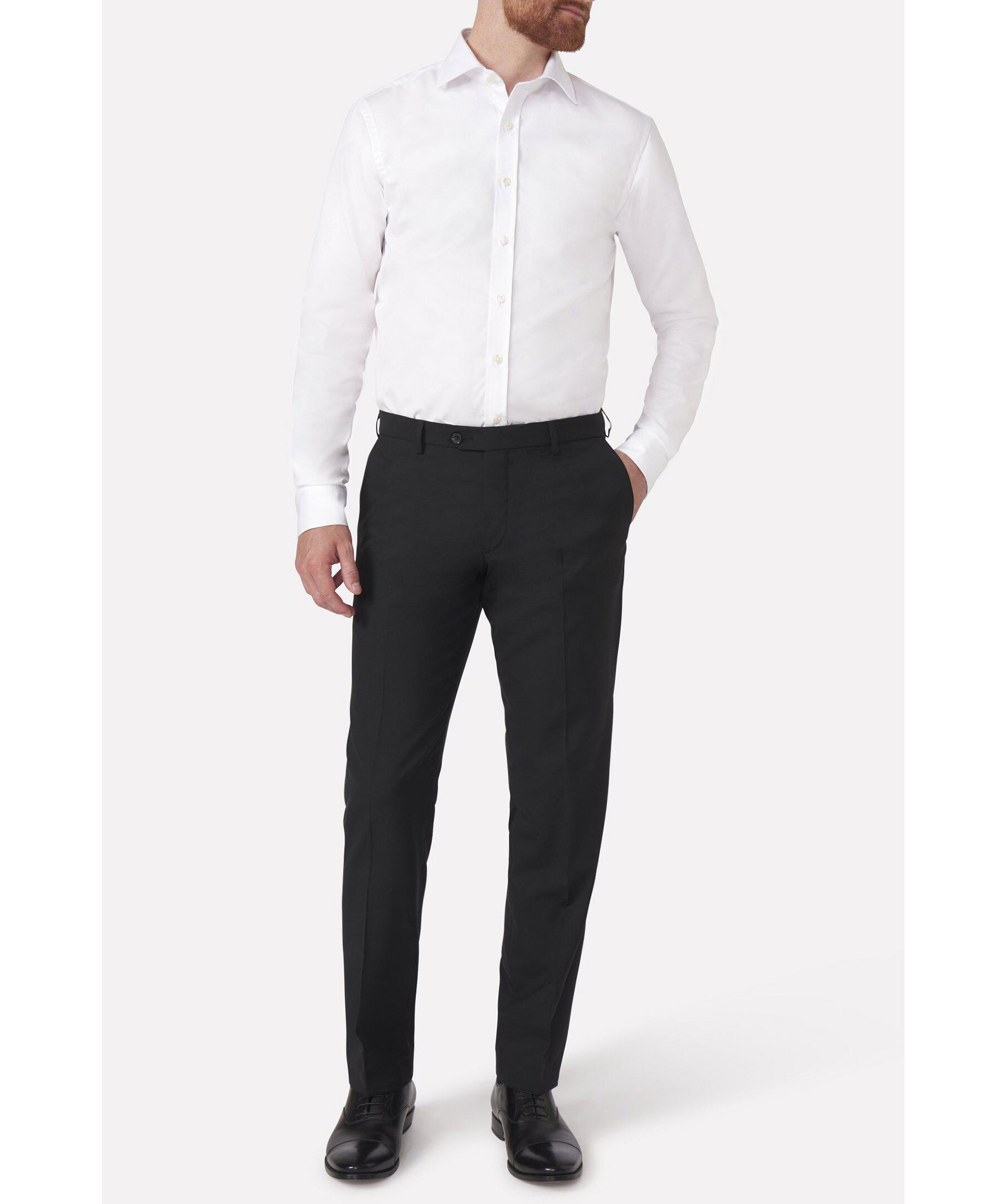 Dressade byxor i en tunn och fin super 120´s ull från väveriet Vitale Barberis Canonico. Den här modellen har en klassisk passform som smalnar av mot foten och en klassisk byxlängd som precis nuddar skon. Bär den som elegant uddabyxa eller som del av en hel kostym! För en hel kostym, lägg till kavaj: Falk eller Farris