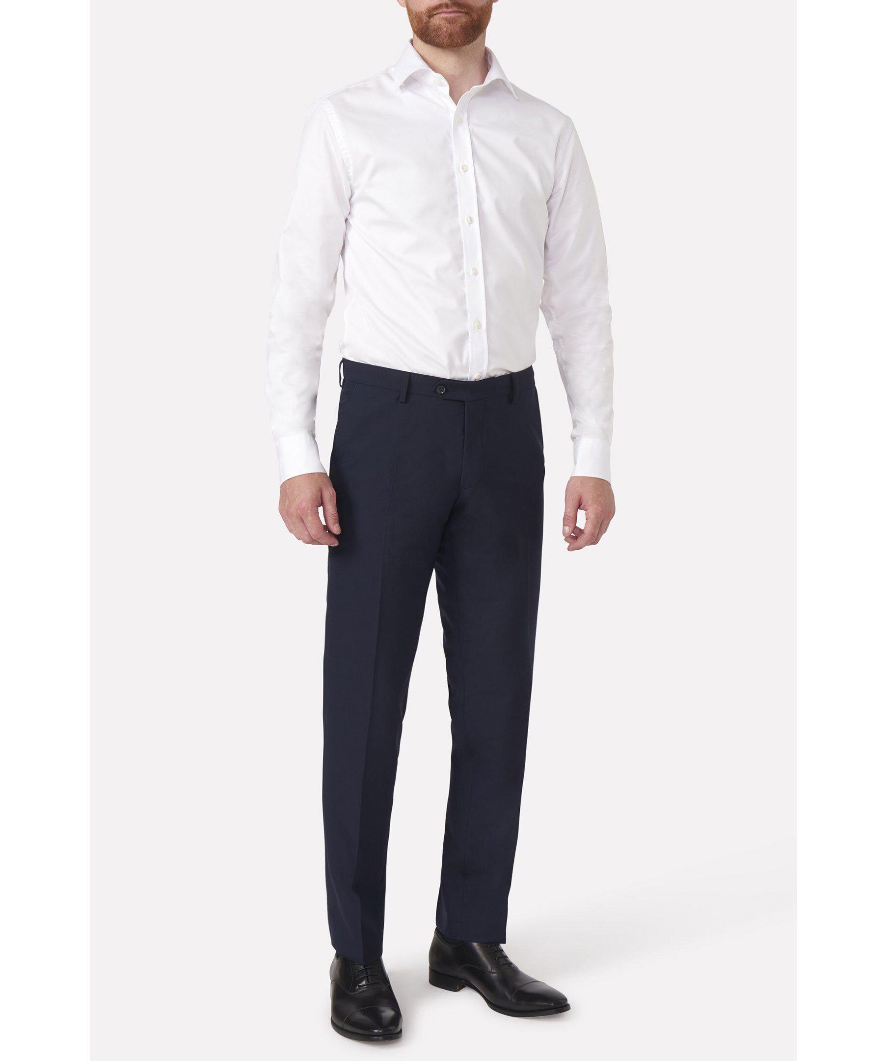Dressade byxor i en tunn och fin super 120´s ull från väveriet Vitale Barberis Canonico. Den här modellen har en klassisk passform som smalnar av mot foten och en klassisk byxlängd som precis nuddar skon. Bär den som elegant uddabyxa eller som del av en hel kostym! För en hel kostym, lägg till kavaj: Falk eller Farris