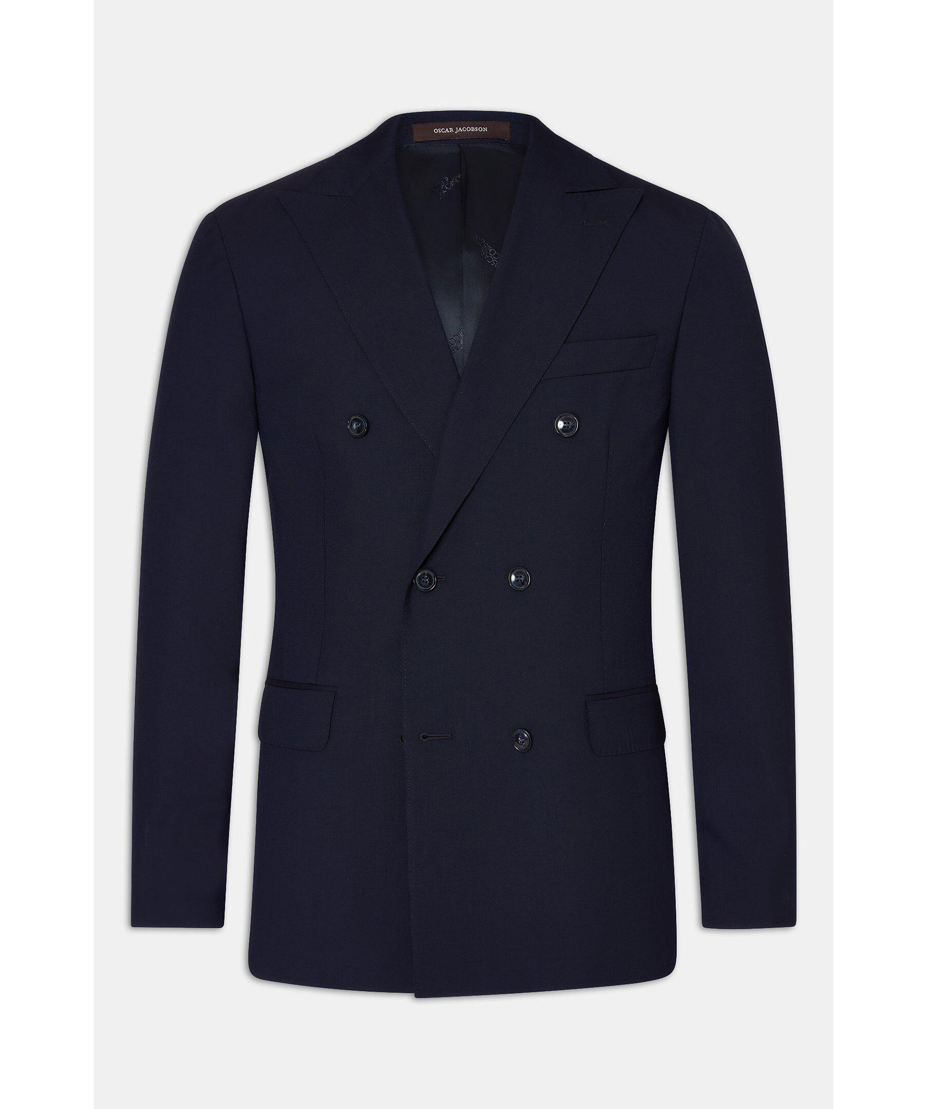 Klassisk dubbelknäppt kavaj i normal passform med spetsiga slag och mjuk konstruerad axel. Tillverkad i slät Super 120’S ull. För en tredelad kostym: Lägg till Diego byxa och Carlo väst.