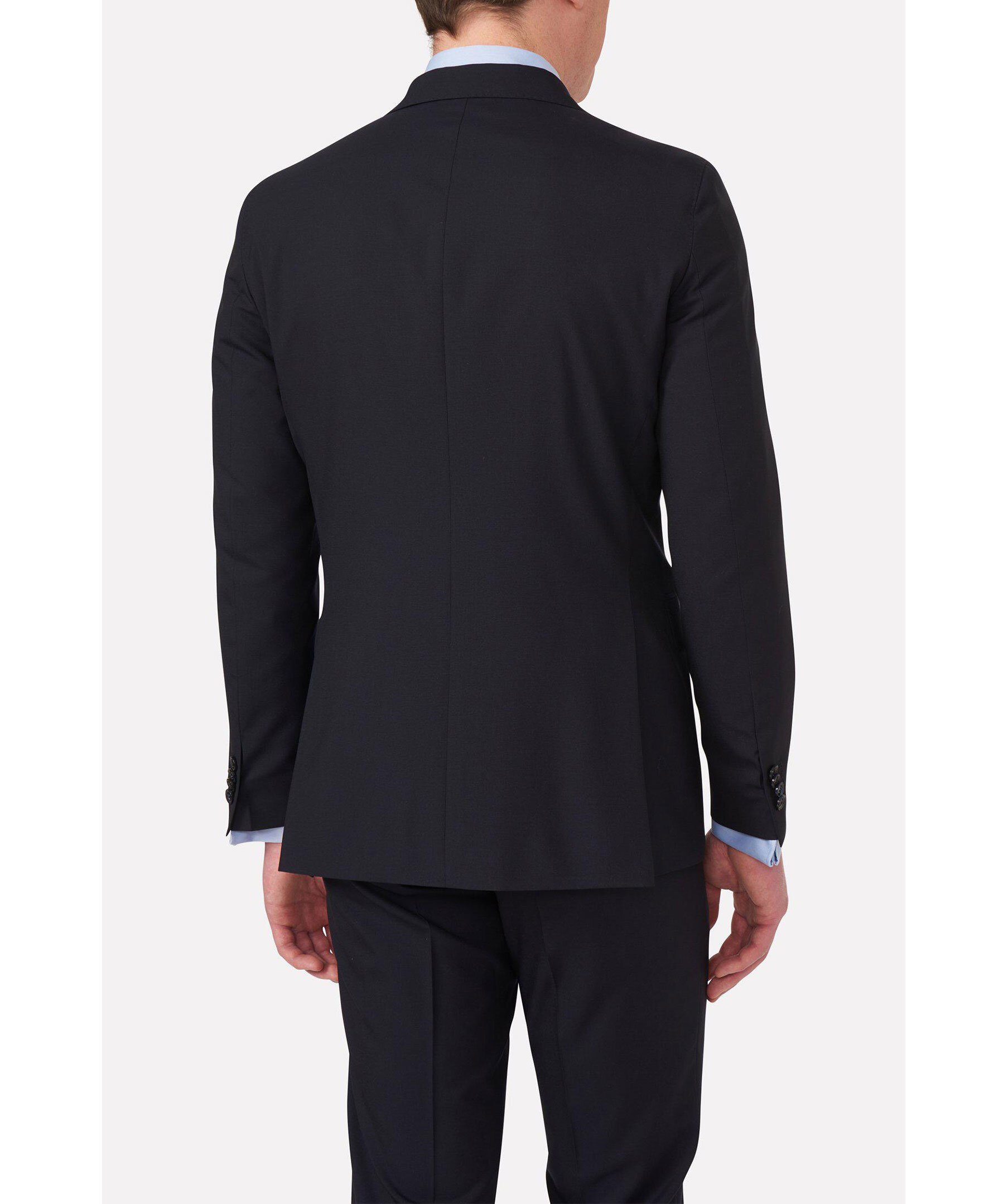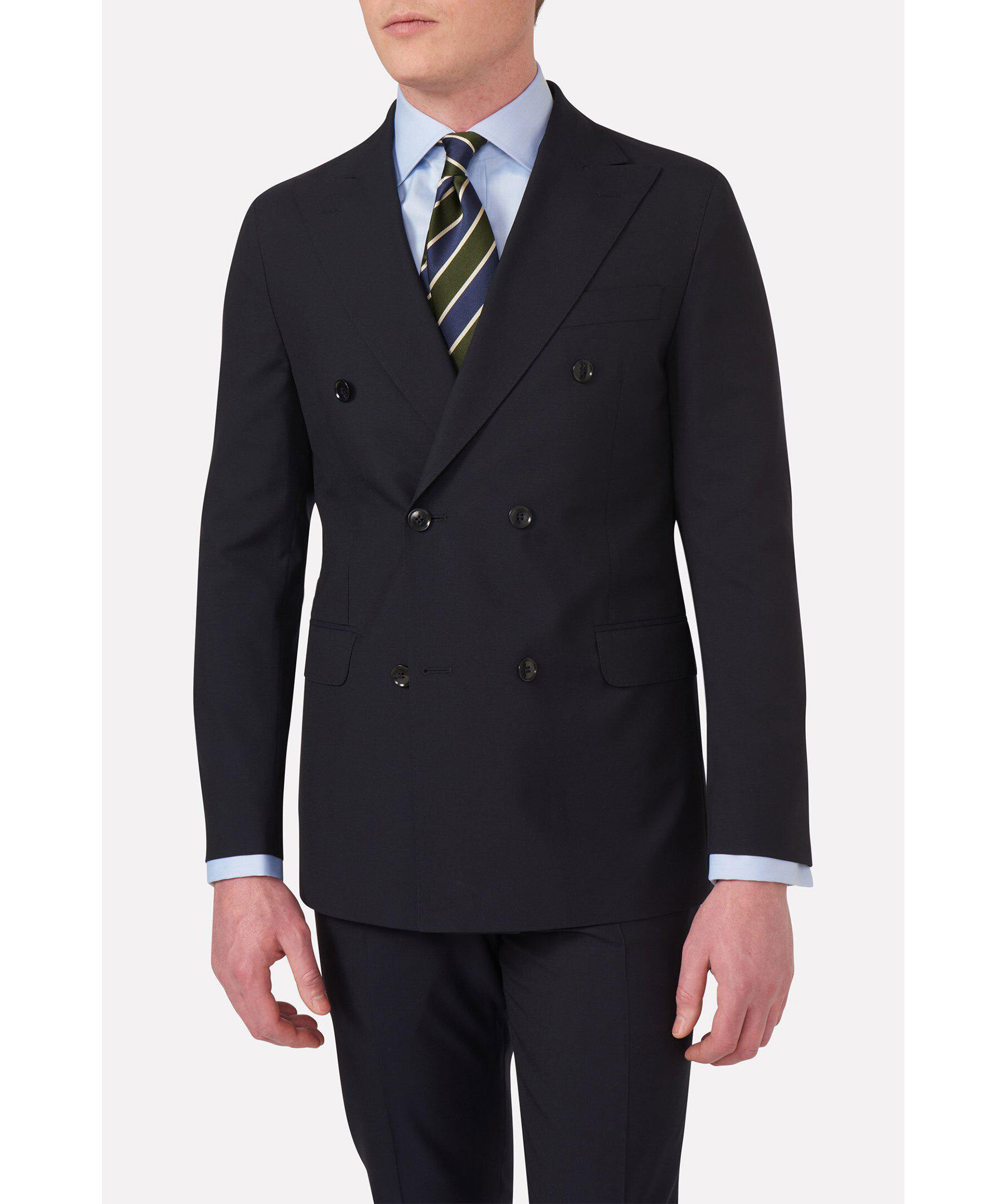 Klassisk dubbelknäppt kavaj i normal passform med spetsiga slag och mjuk konstruerad axel. Tillverkad i slät Super 120’S ull. För en tredelad kostym: Lägg till Diego byxa och Carlo väst.