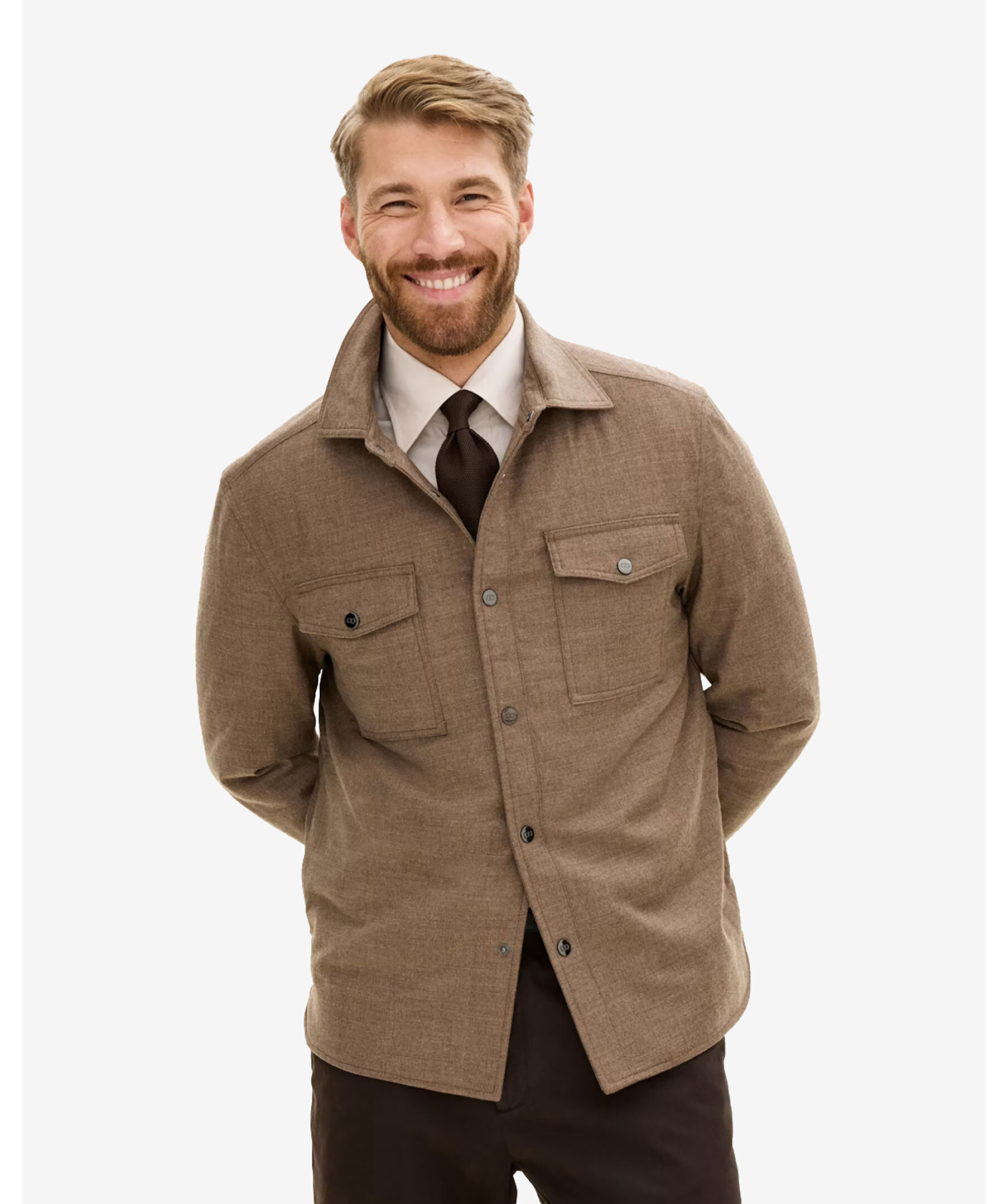 Overshirt från Oscar Jacobson. Tillverkad i en mjuk ullblandning. Overshirten kombinerar flanellens mjuka struktur med varm vaddering i polyester – perfekt för kyligare dagar. Med regular fit får du en stilren siluett som inte känns trång, medan den vadderade insidan tillför komfort och isolering. Perfekt som ett extra lager eller som självständigt plagg.