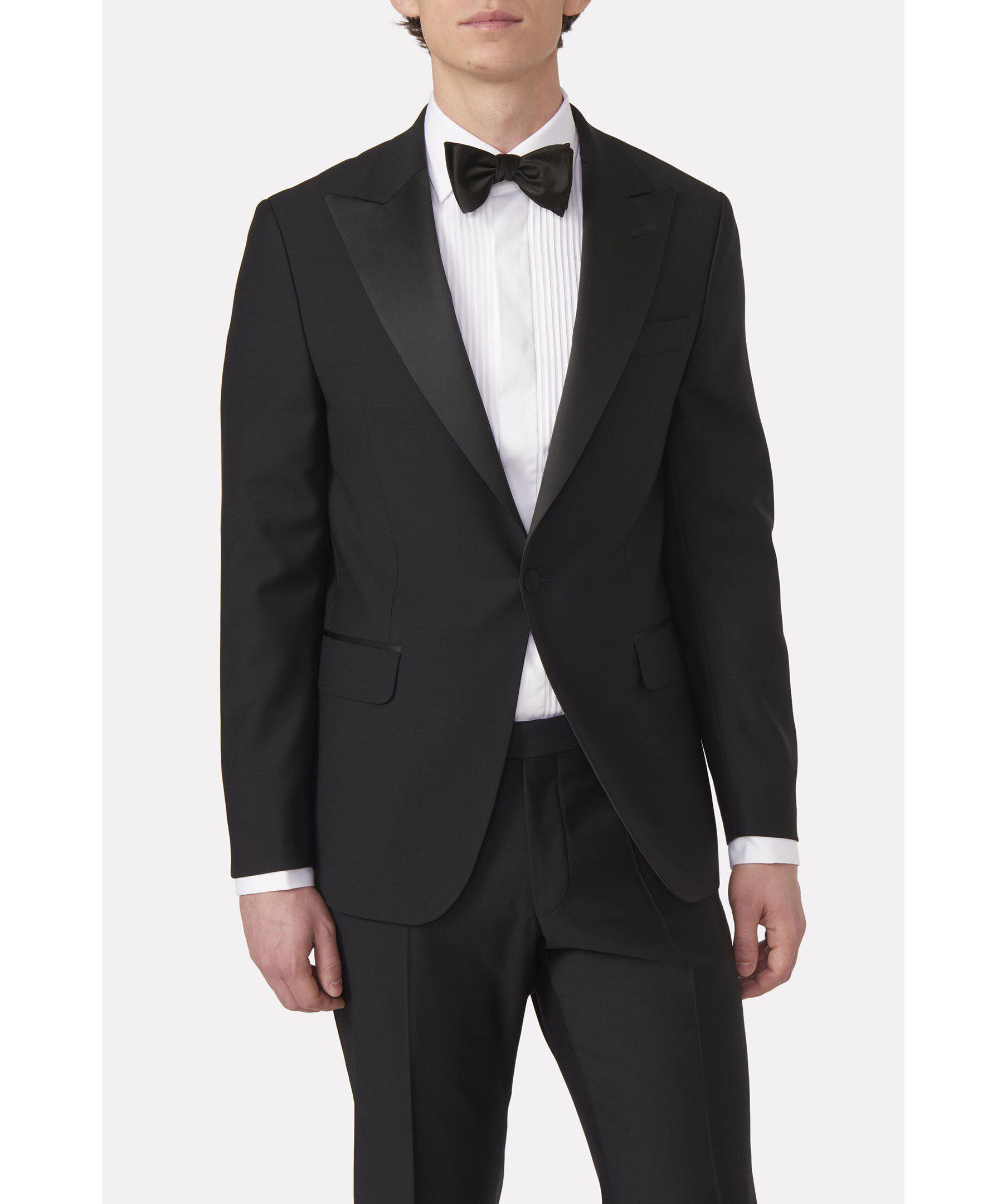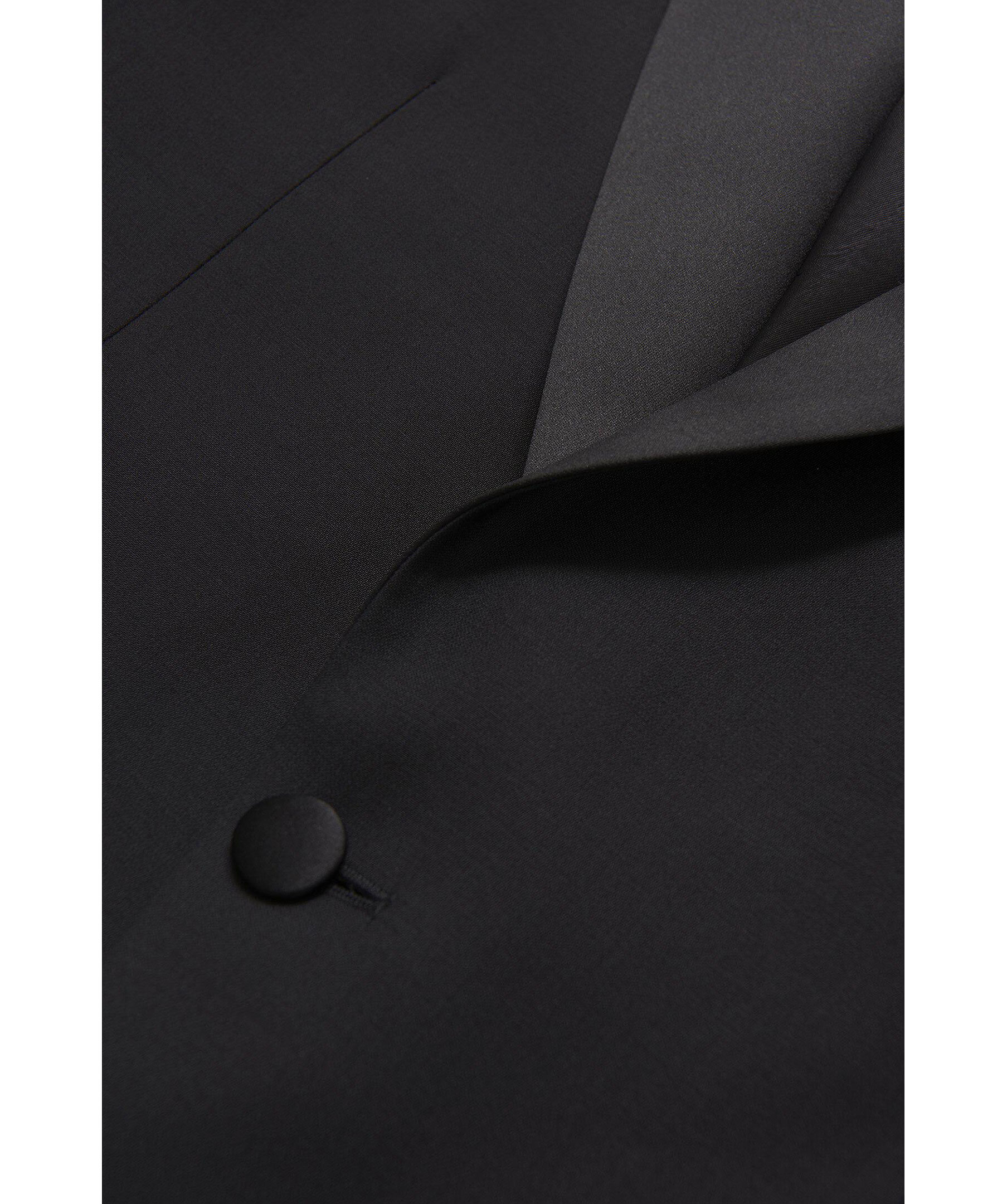 Klassisk smoking med spetsiga sidenslag. Normal passform - figursydd med lite mer utrymme. Klassisk konstruktion med väldefinierade linjer. Helfodrad insida i viskos för komfort och känsla. Sidenpasspoalerade fickor - ett självklart val för extra festliga tillfällen. Längd från nacke till kavajslut i storlek 50: 75 cm. Kan matchas med följande byxor: - Duke smokingbyxor - Devon smokingbyxor