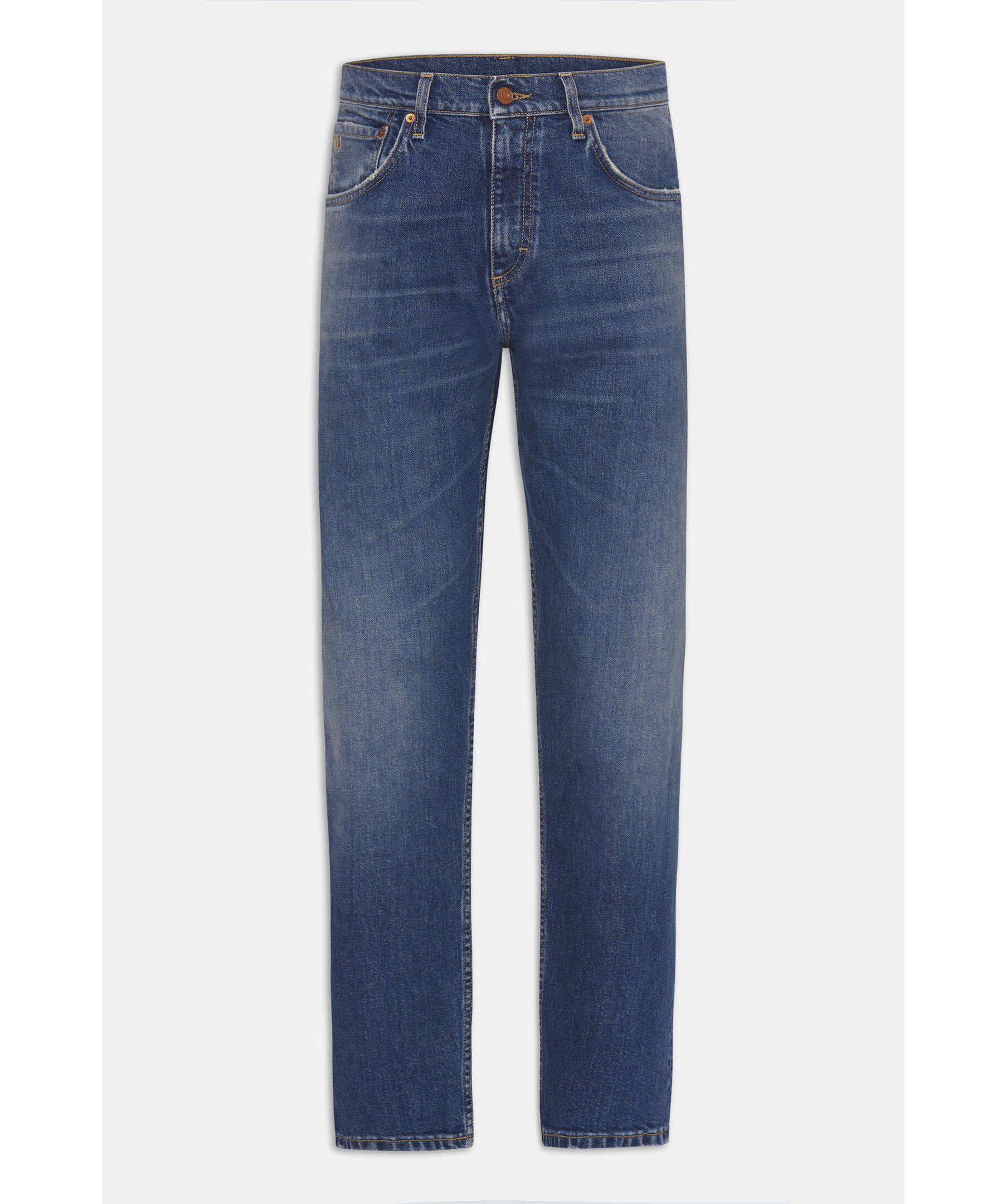 Passformen är löst sittande, rakt ben med normal till hög midja. Gjord på denim med stretch från Candiani i Italien, som är vävd på gamla, begagnade vävstolar från Levis med knappar och nitar från Italien och Borås.Jeansen är gjorda på 100% hållbart odlad bomull.Fotvidd 40 cm i storlek W32/L32