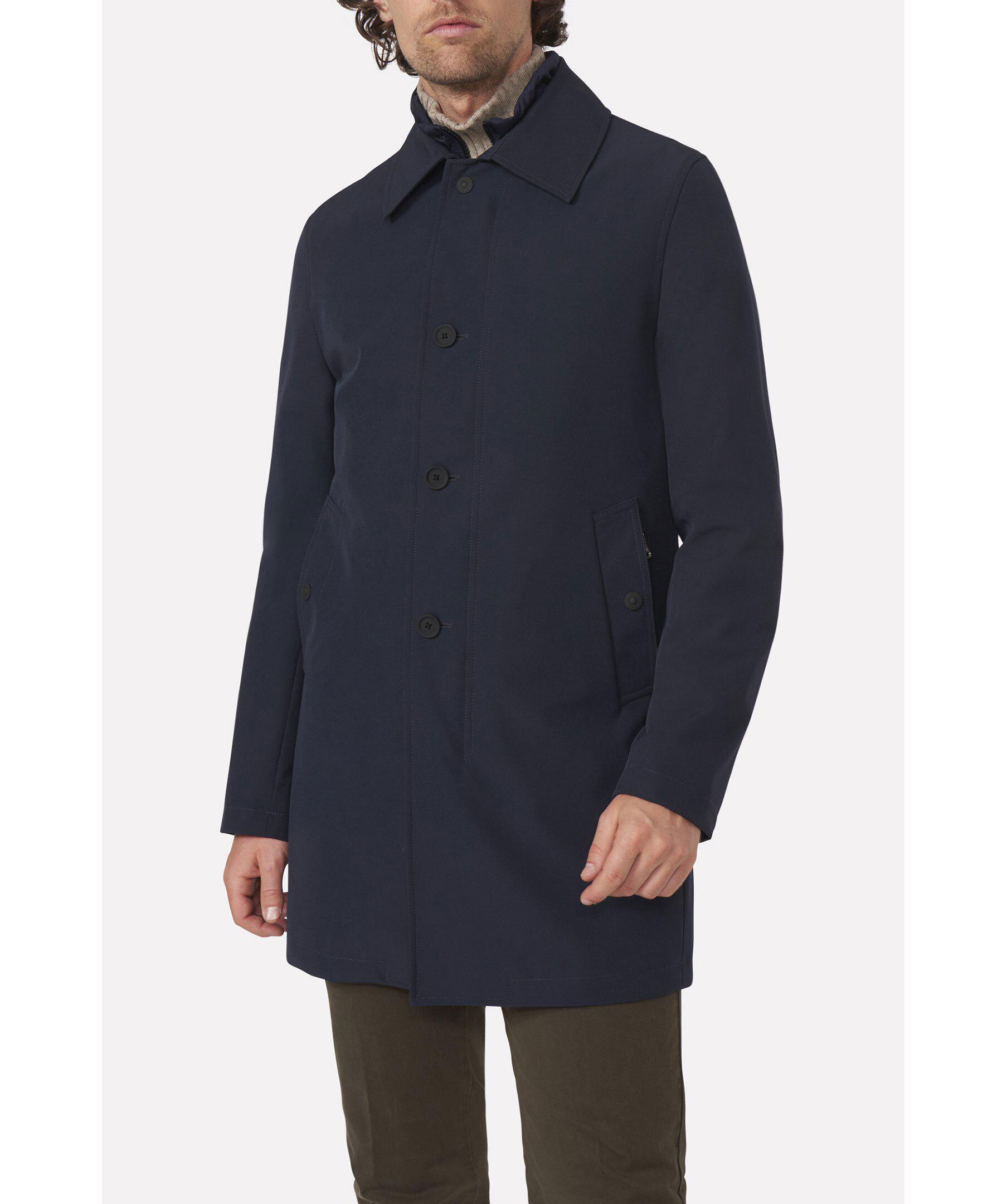 Vindtät och vattentålig rock i car coat-modell med dold dragkedja. Ett stilrent och lättmatchat ytterplagg som passar lika bra höst som vår. Rocken har två praktiska sidofickor som försluts med dragkedja och knapp samt två innerfickor.