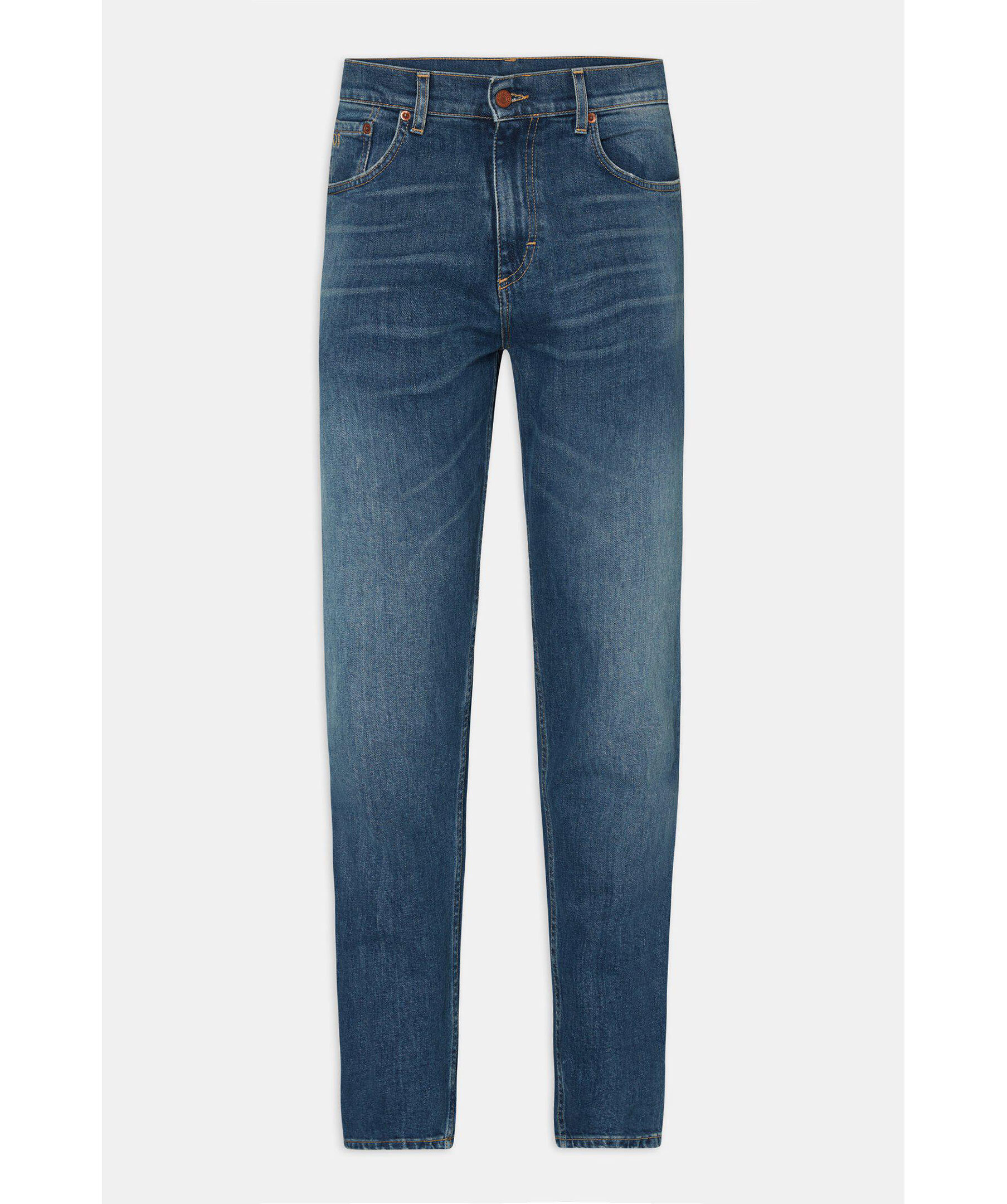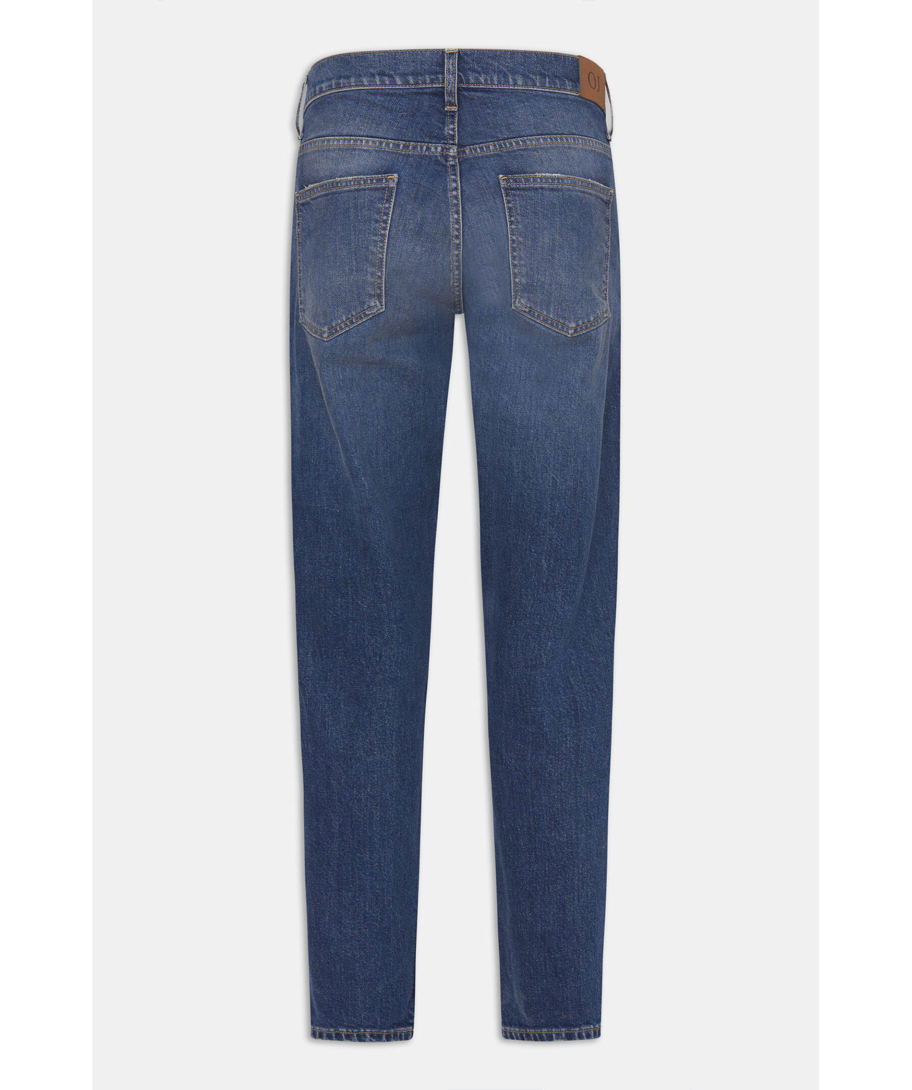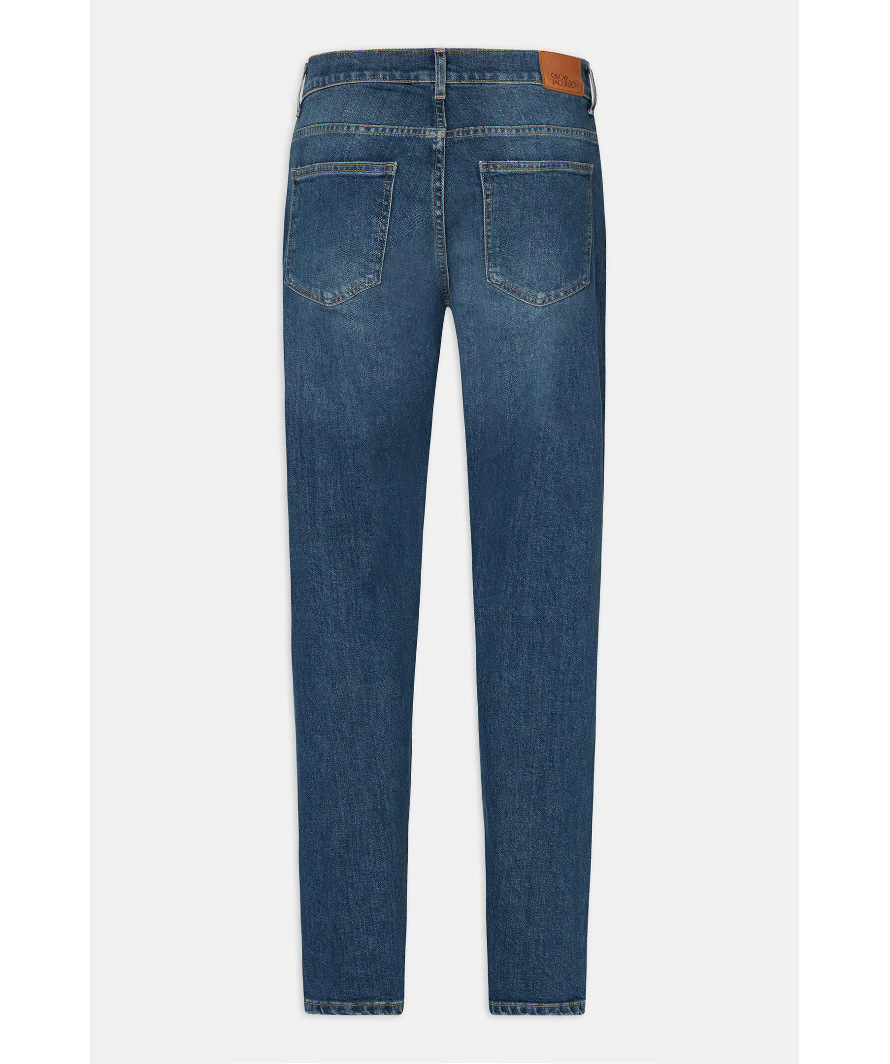 Passformen är löst sittande vid lår och knä med smal fot, midjan är hög till normal. Gjorda på denim med stretch från Candiani i Italien, som är vävd på gamla, begagnade vävstolar från Levis med knappar och nitar från Italien och Borås.Jeansen är gjorda på 100% hållbart odlad bomull.Fotvidd 34 cm i storlek W32/L32