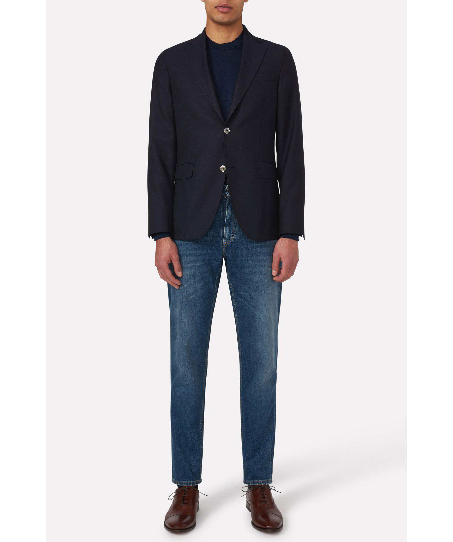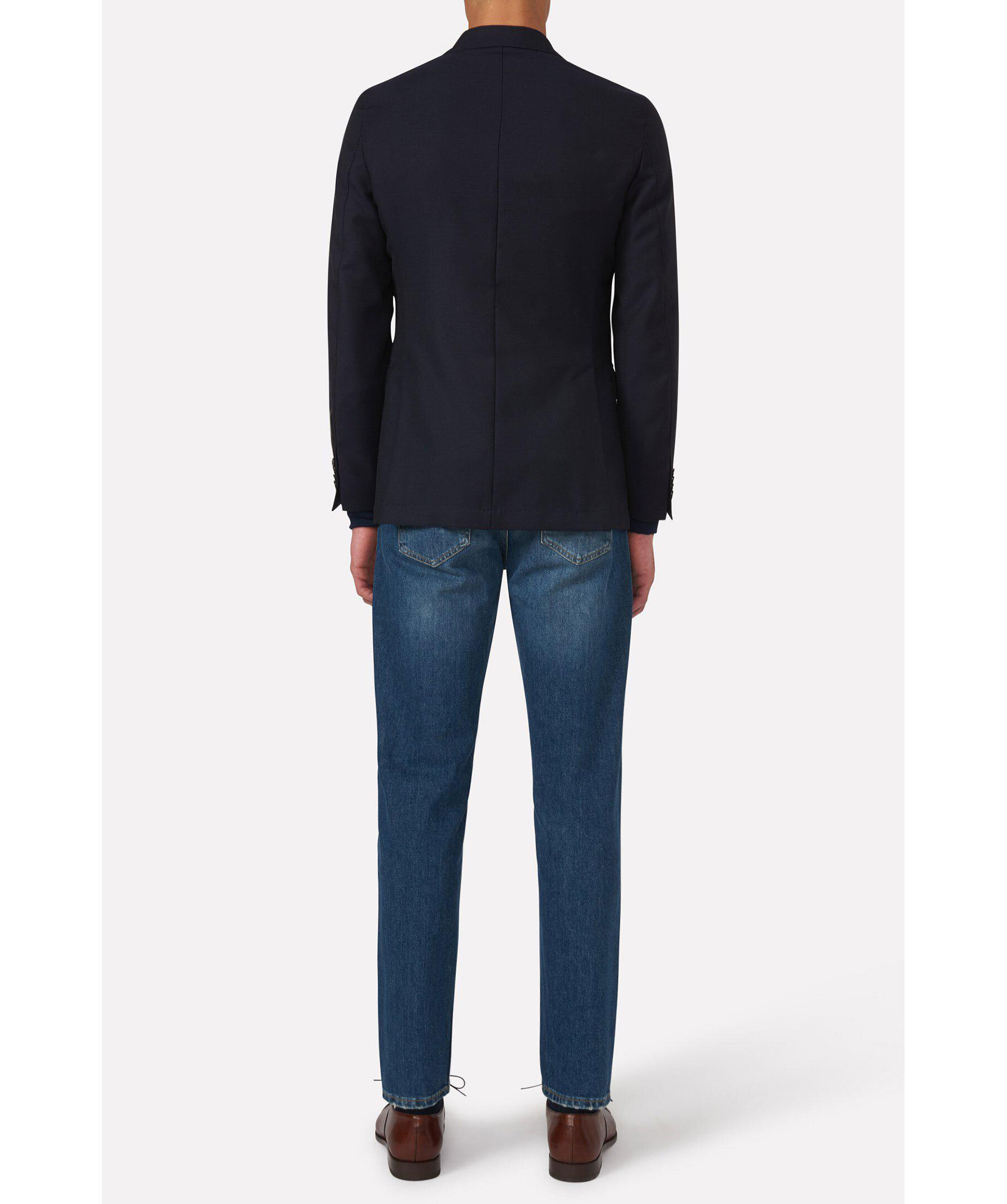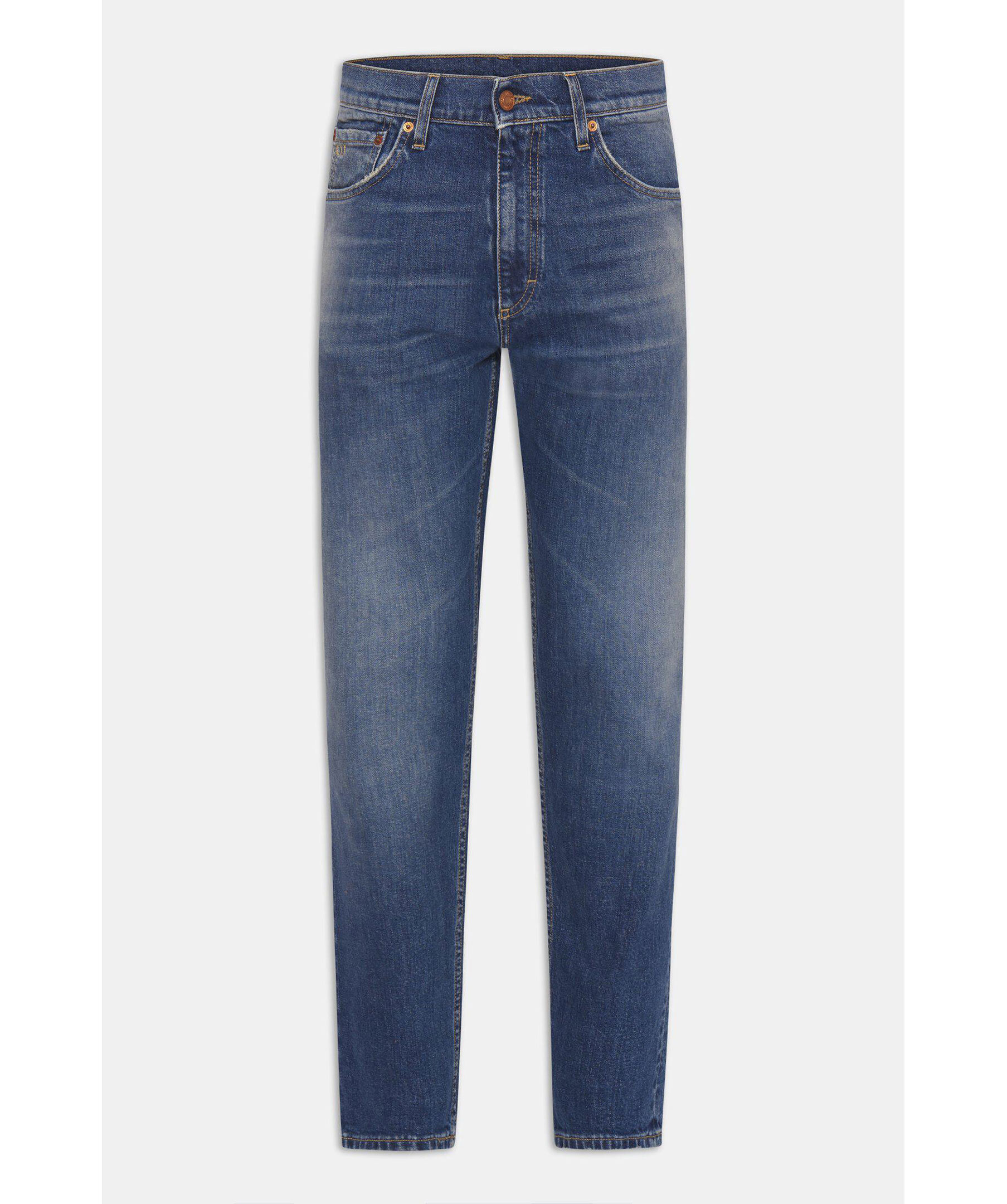 Passformen är löst sittande vid lår och knä med smal fot, midjan är hög till normal. Gjorda på denim med stretch från Candiani i Italien, som är vävd på gamla, begagnade vävstolar från Levis med knappar och nitar från Italien och Borås.Jeansen är gjorda på 100% hållbart odlad bomull.Fotvidd 34 cm i storlek W32/L32