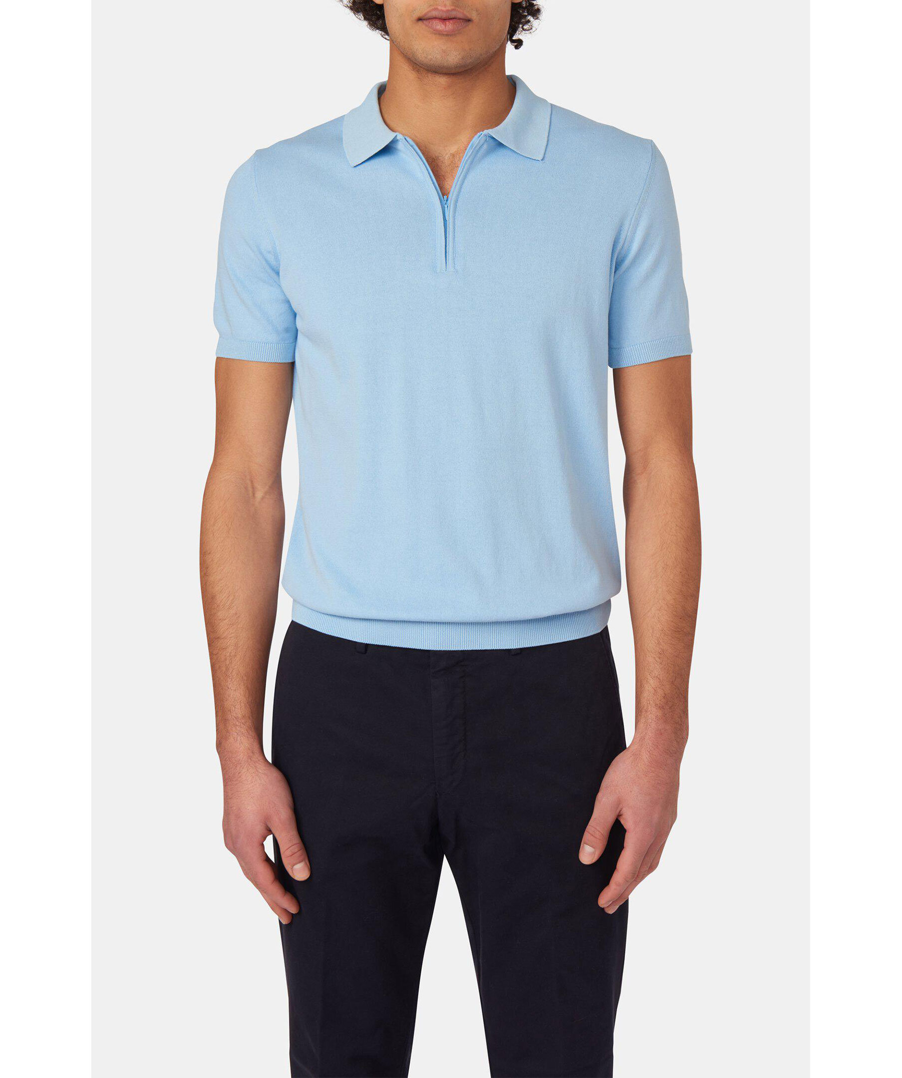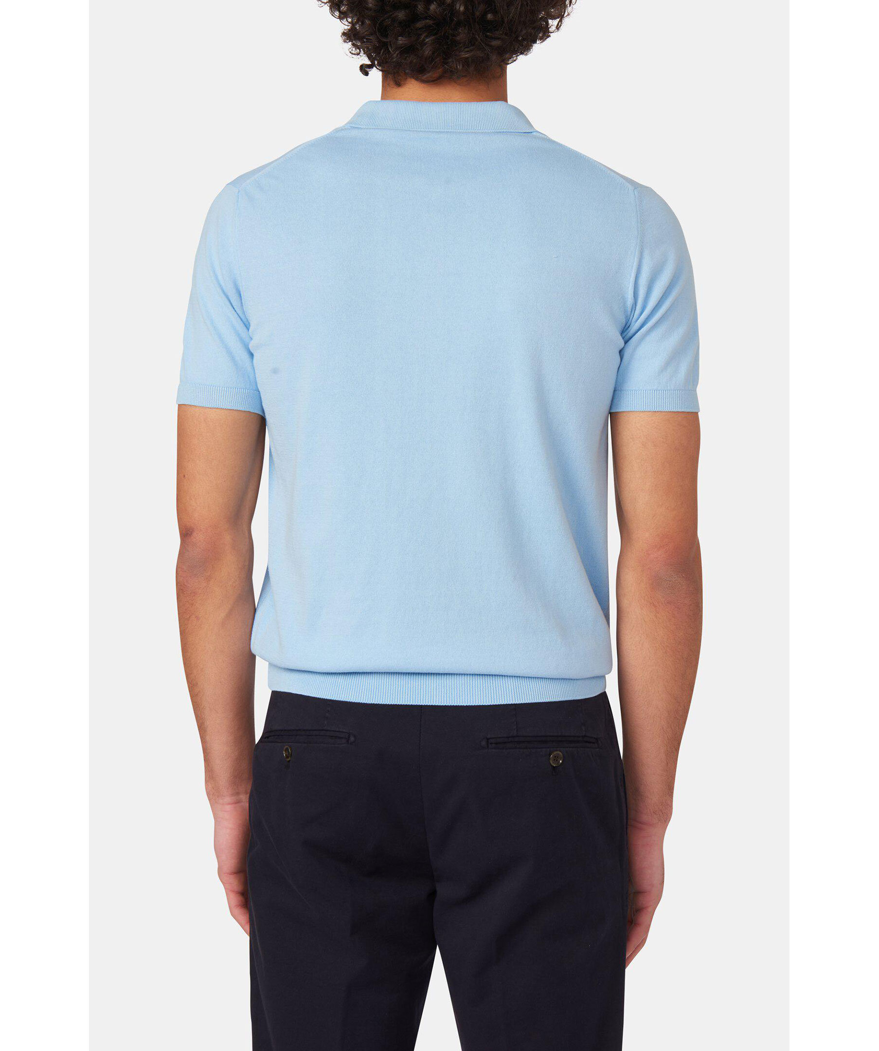 Kortärmad kragtröja tillverkad i finstickad ekologisk bomull. Försedd med elegant dragkedja i kragen.