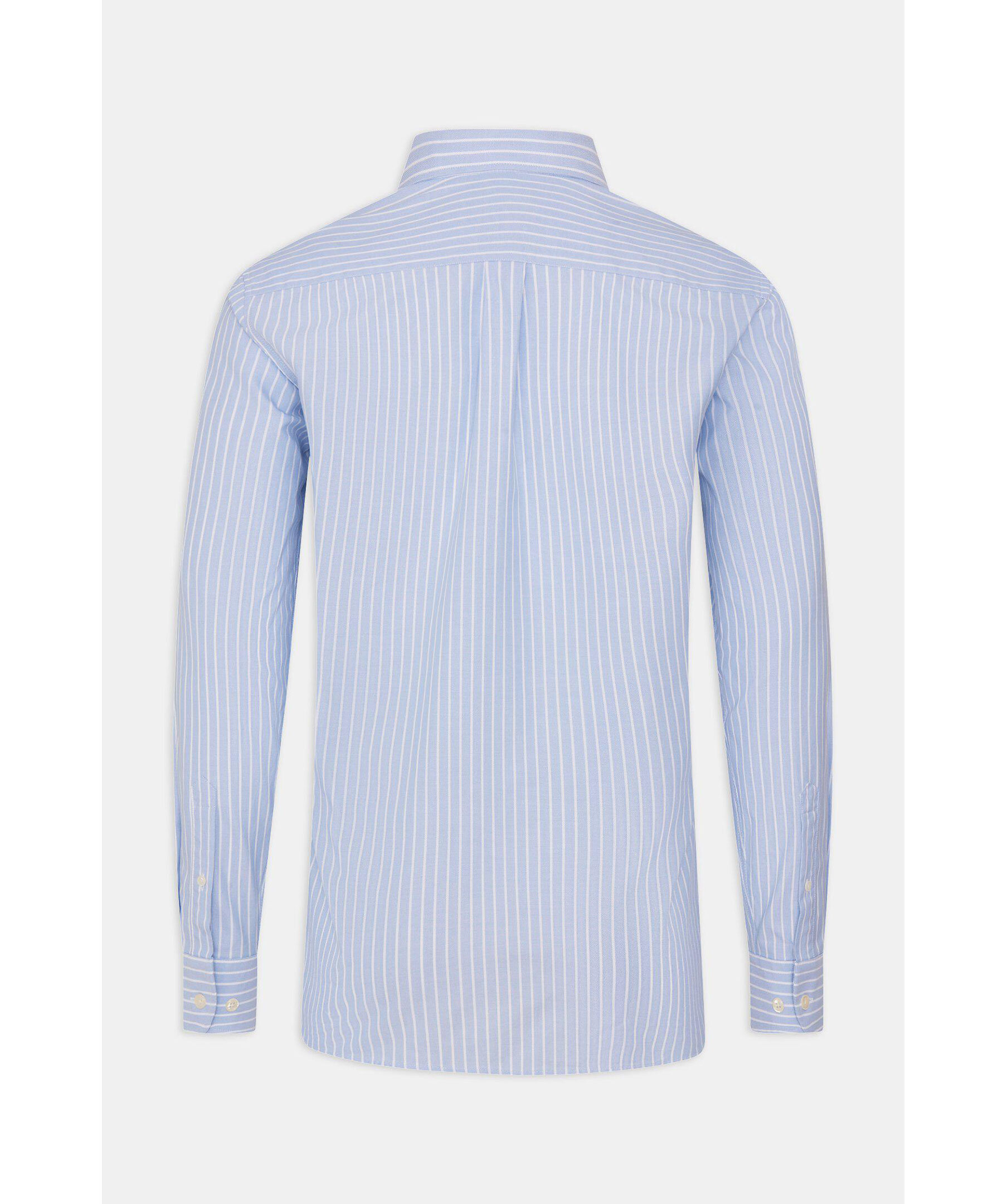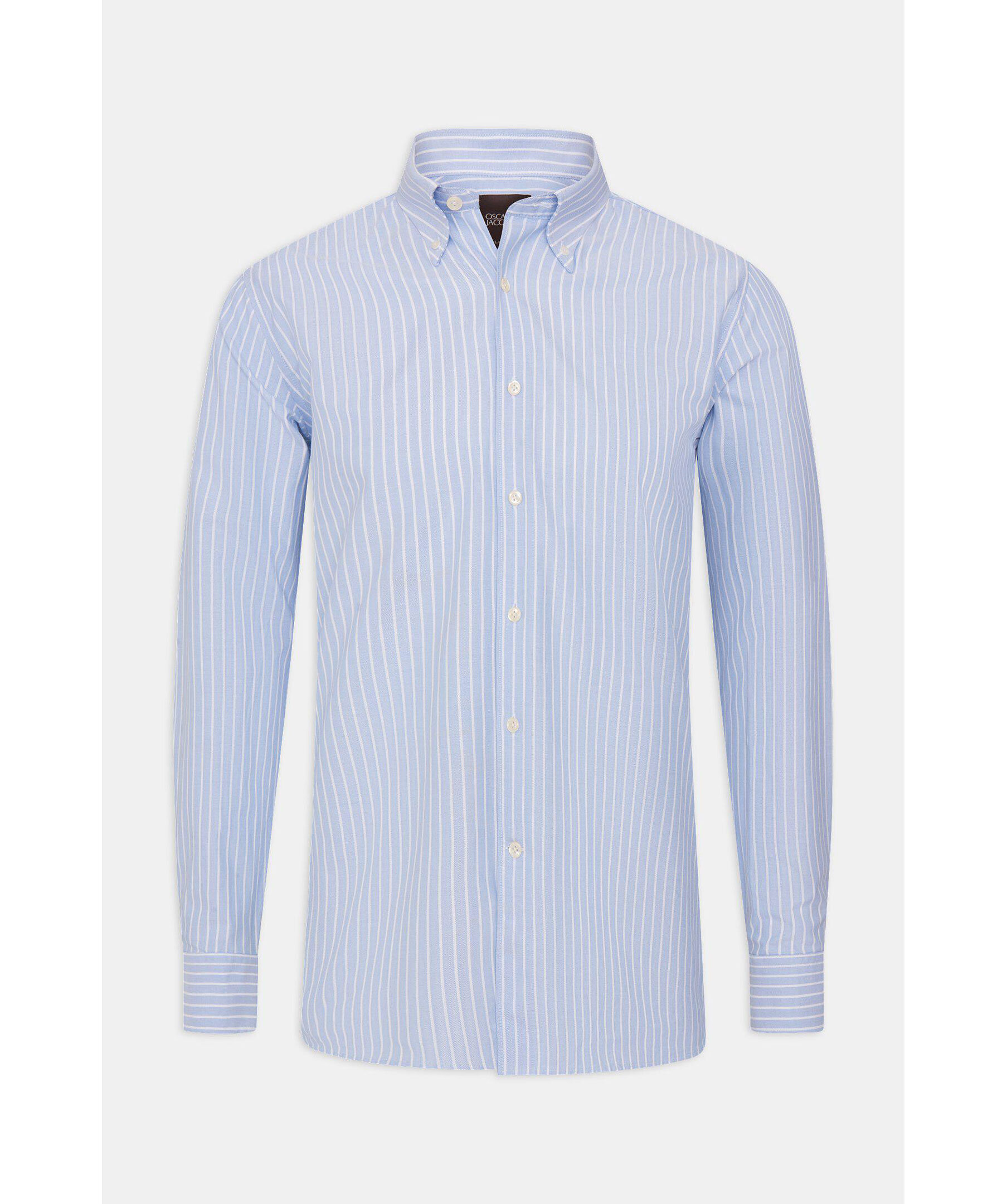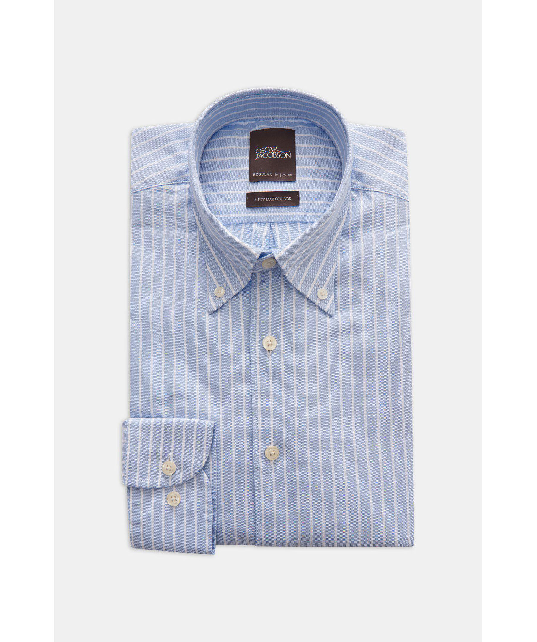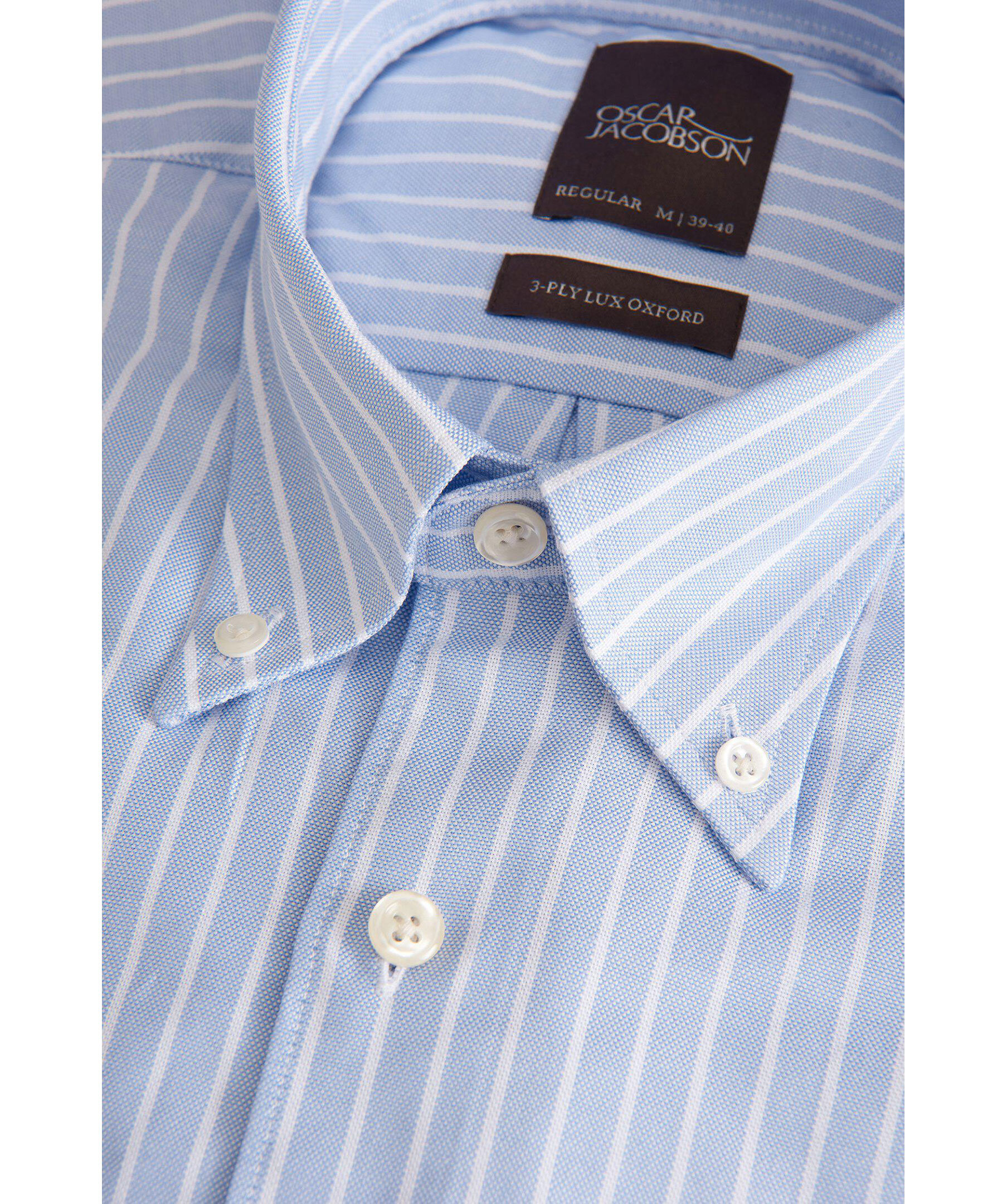Randig oxfordskjorta i regular passform. Tillverkad i 100% bomull med elegant struktur och button down-krage som gör sig perfekt i både formella som sociala tillfällen. En skjorta alla bör ha i sin basgarderob som står sig lika bra instoppad som oinstoppad.