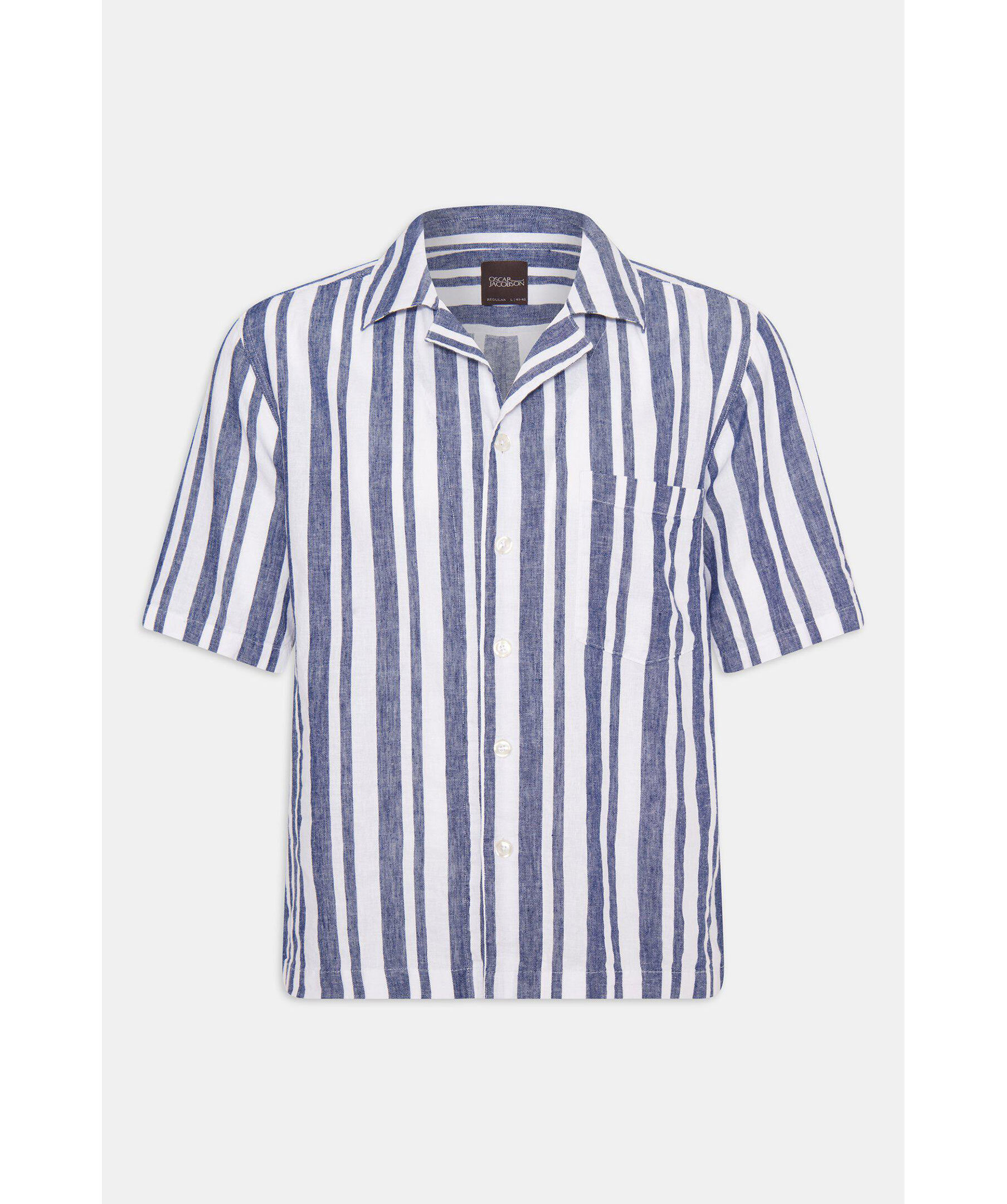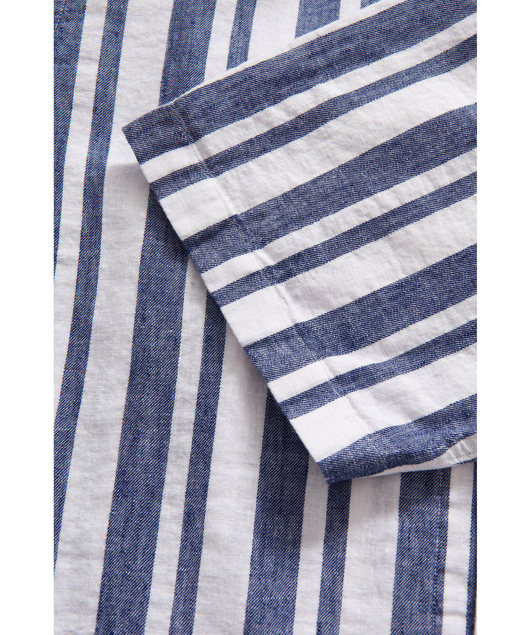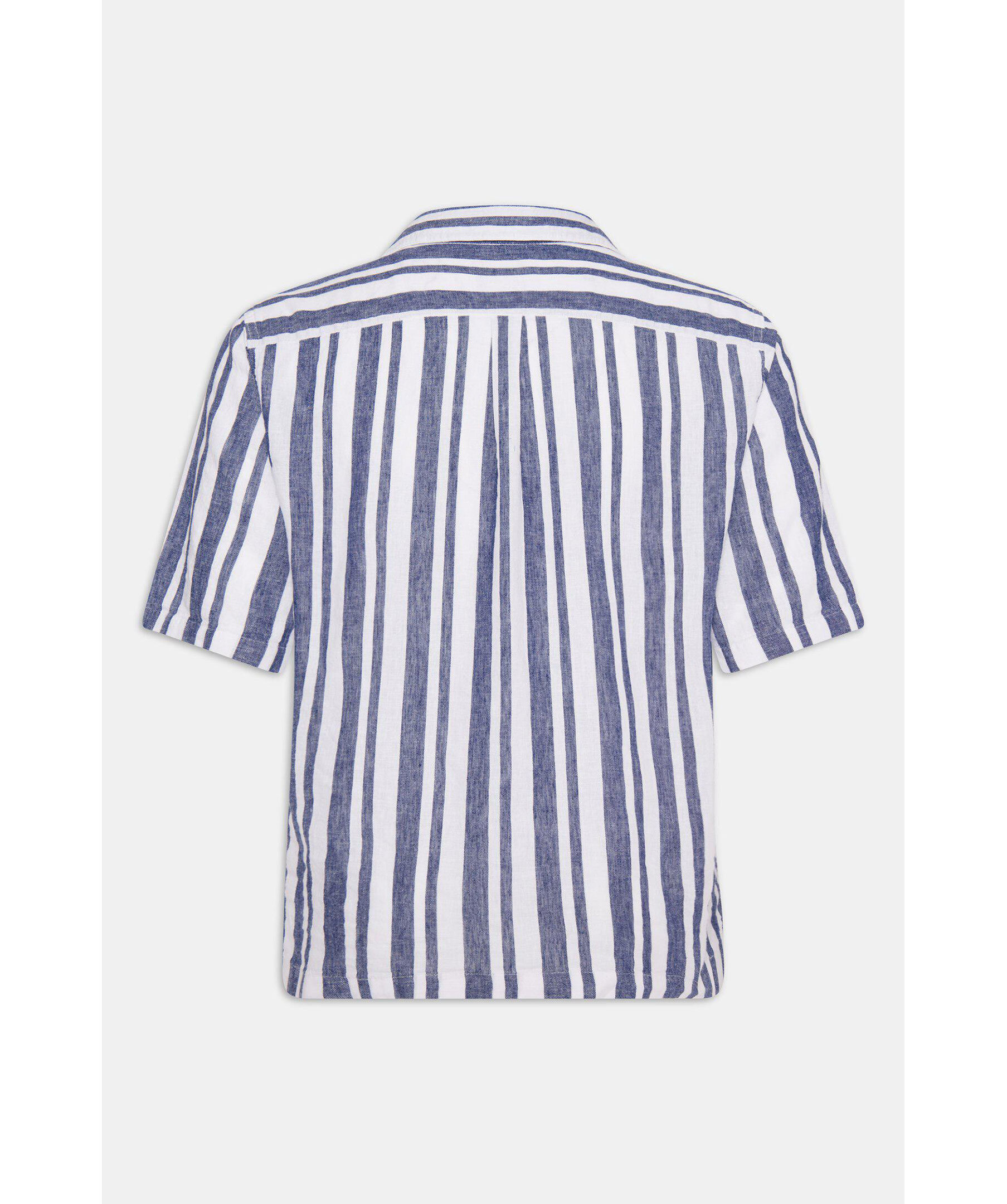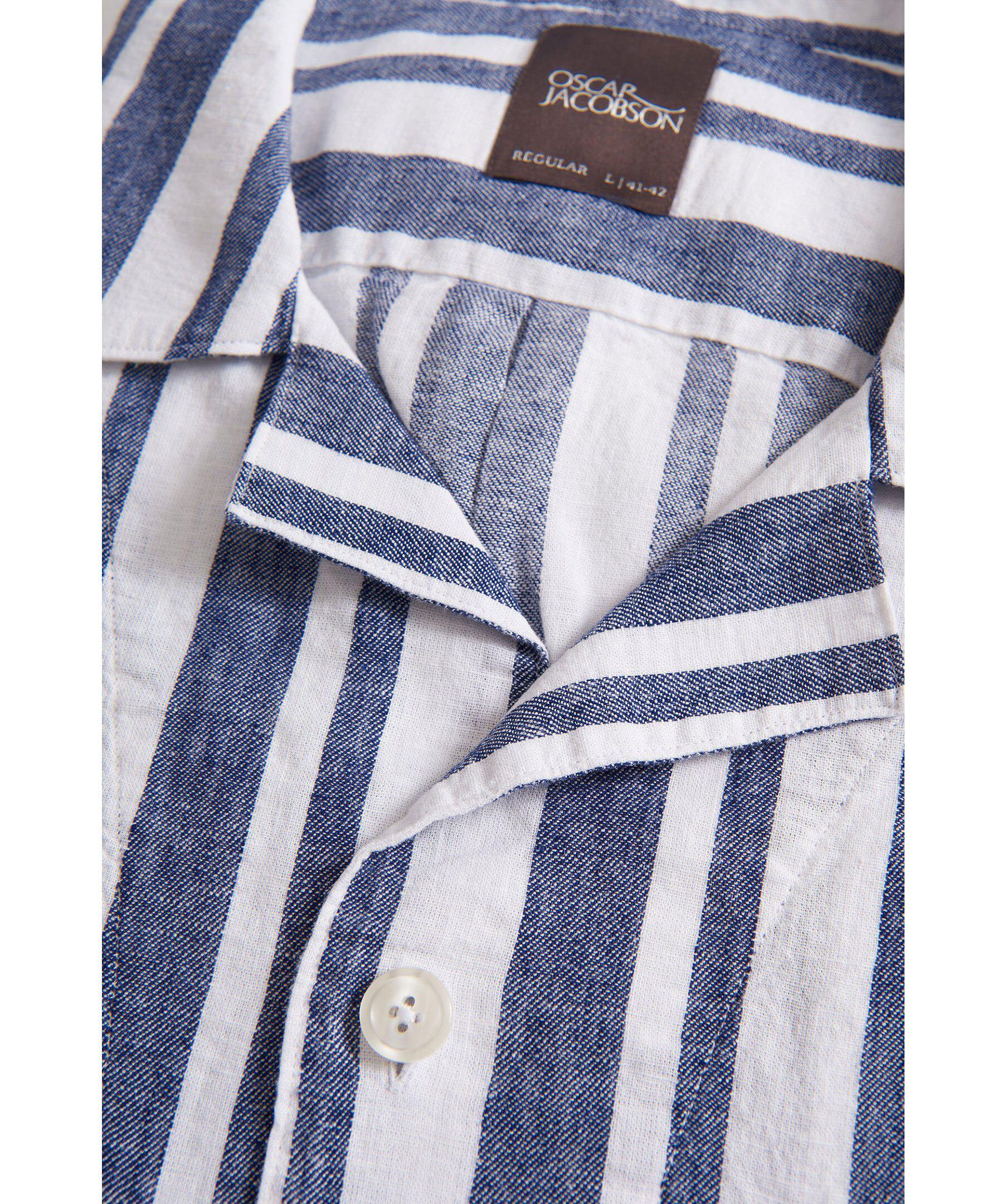 Kortärmad skjorta i regular fit med bowlingkrage. Gjord i ett randigt bomull och linnetyg.