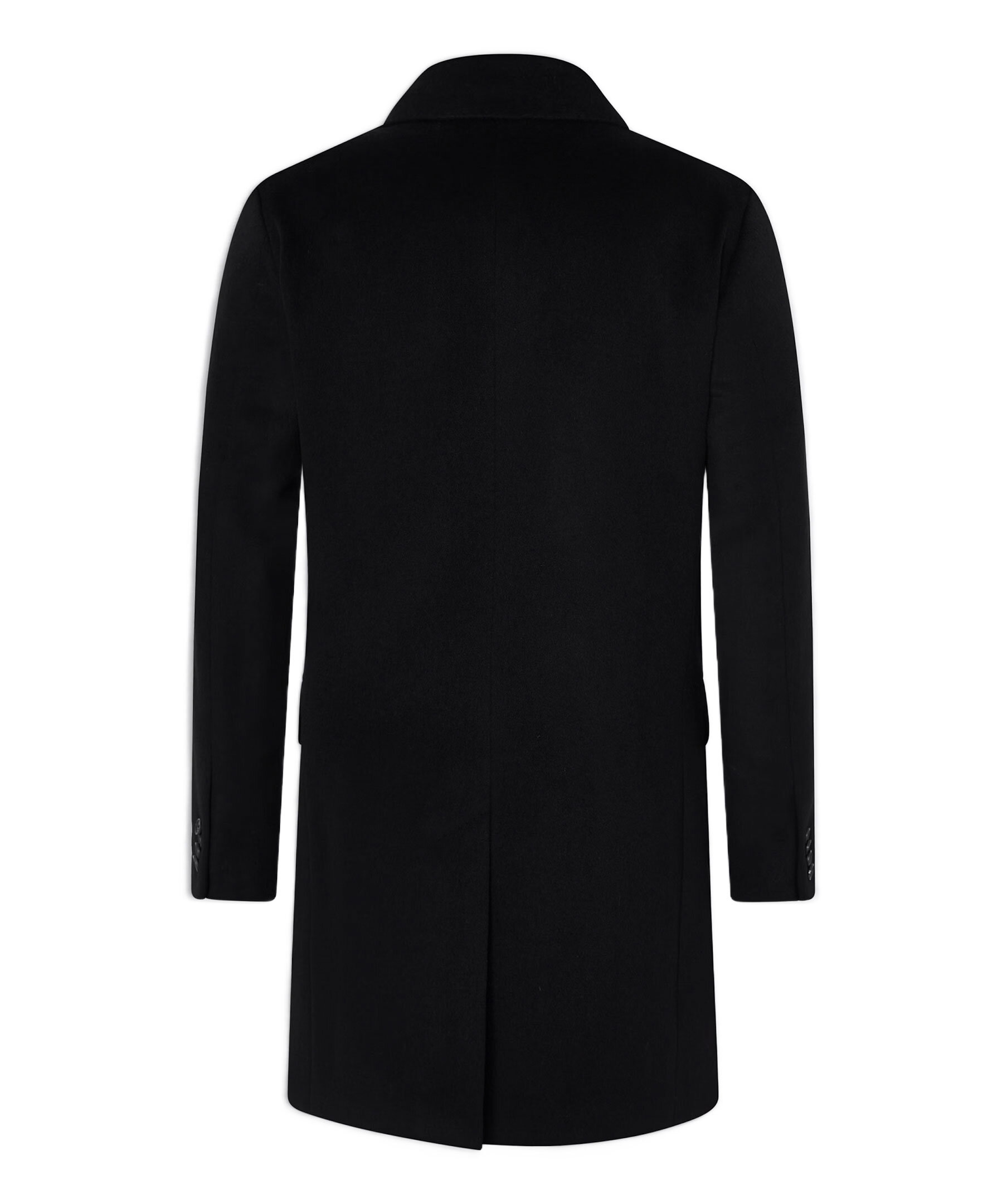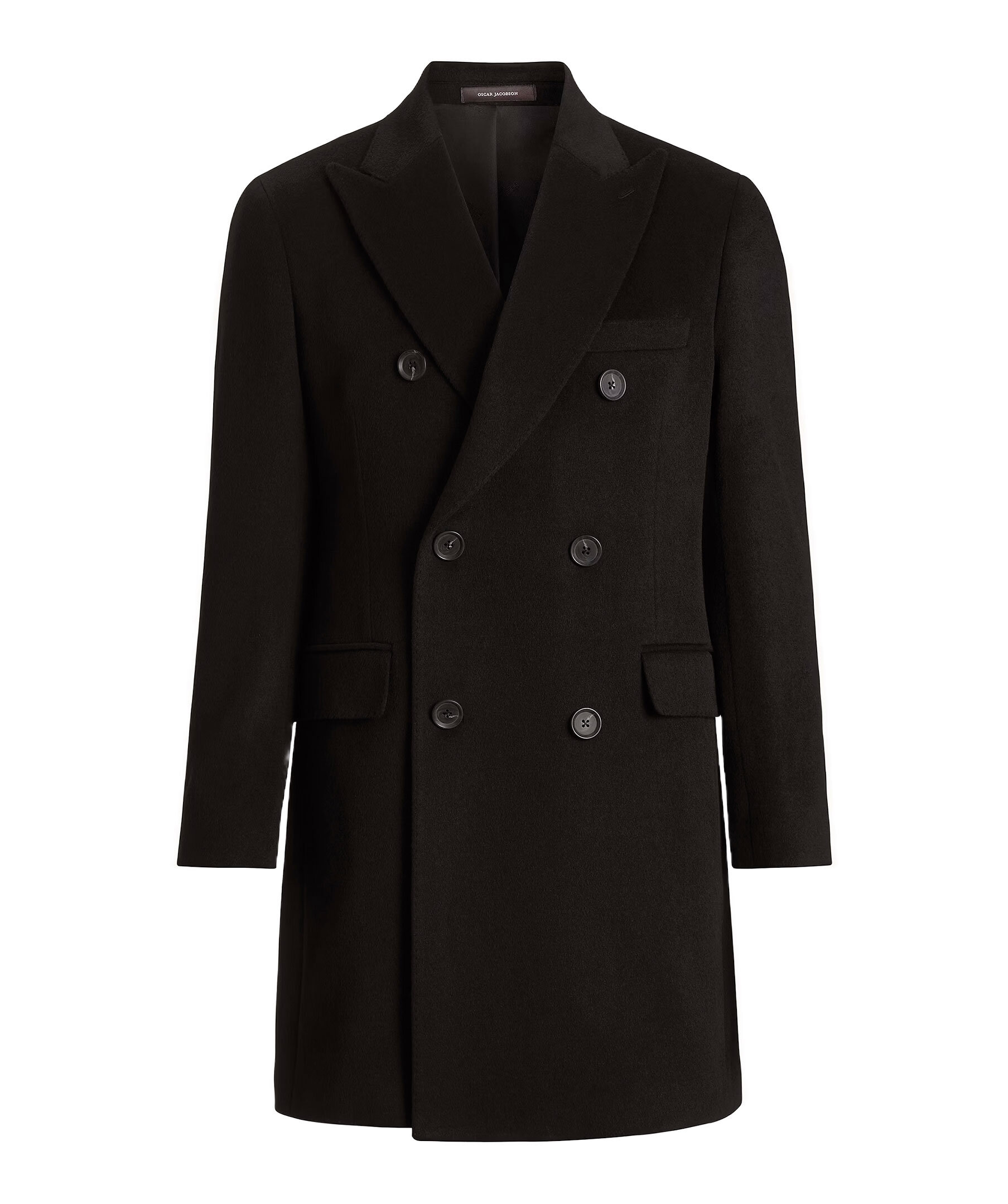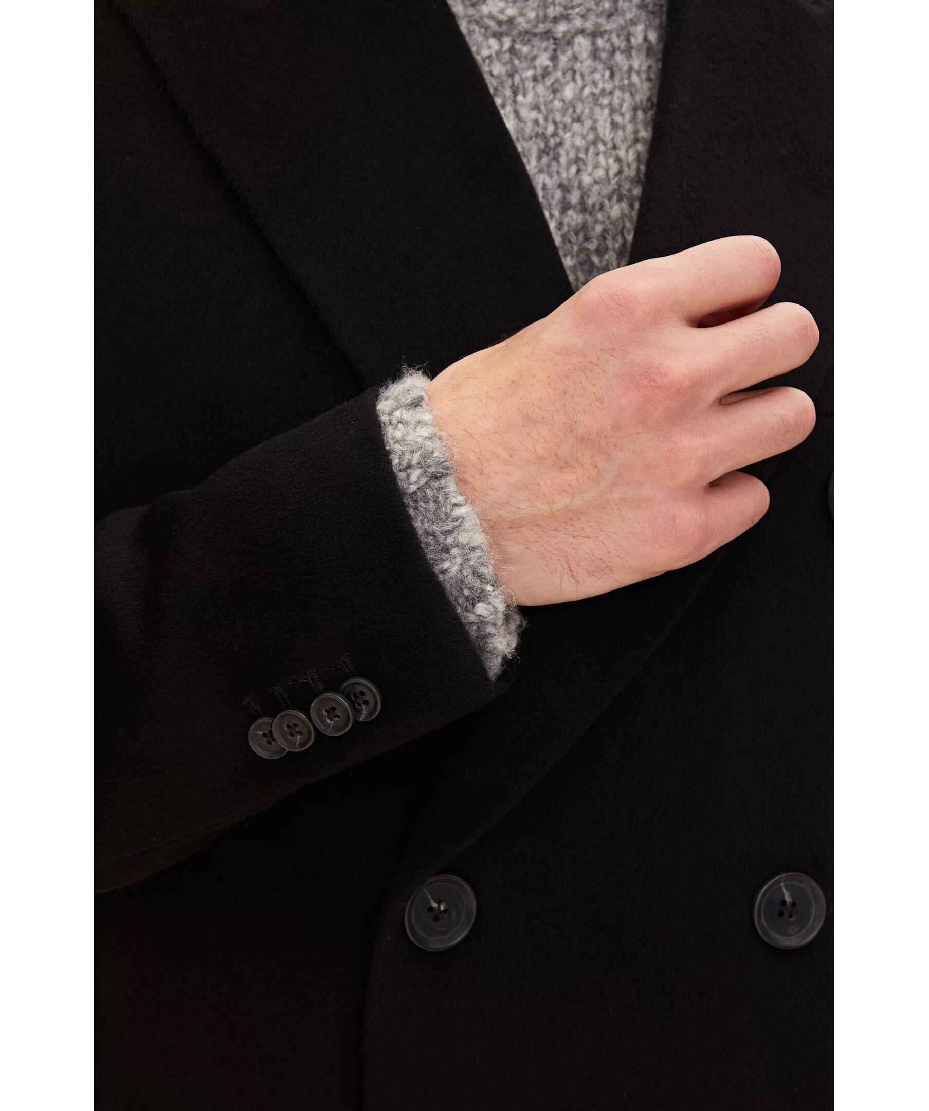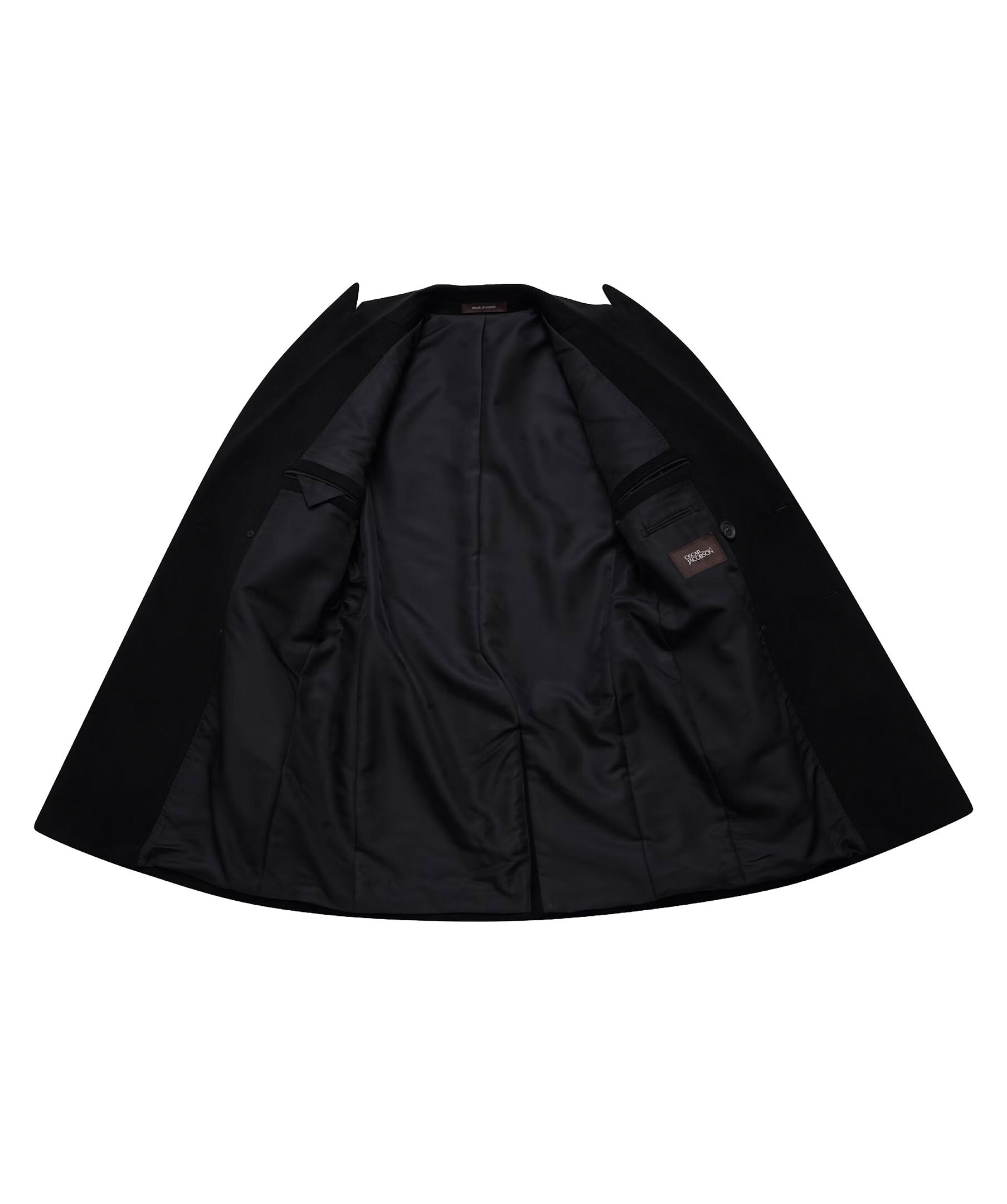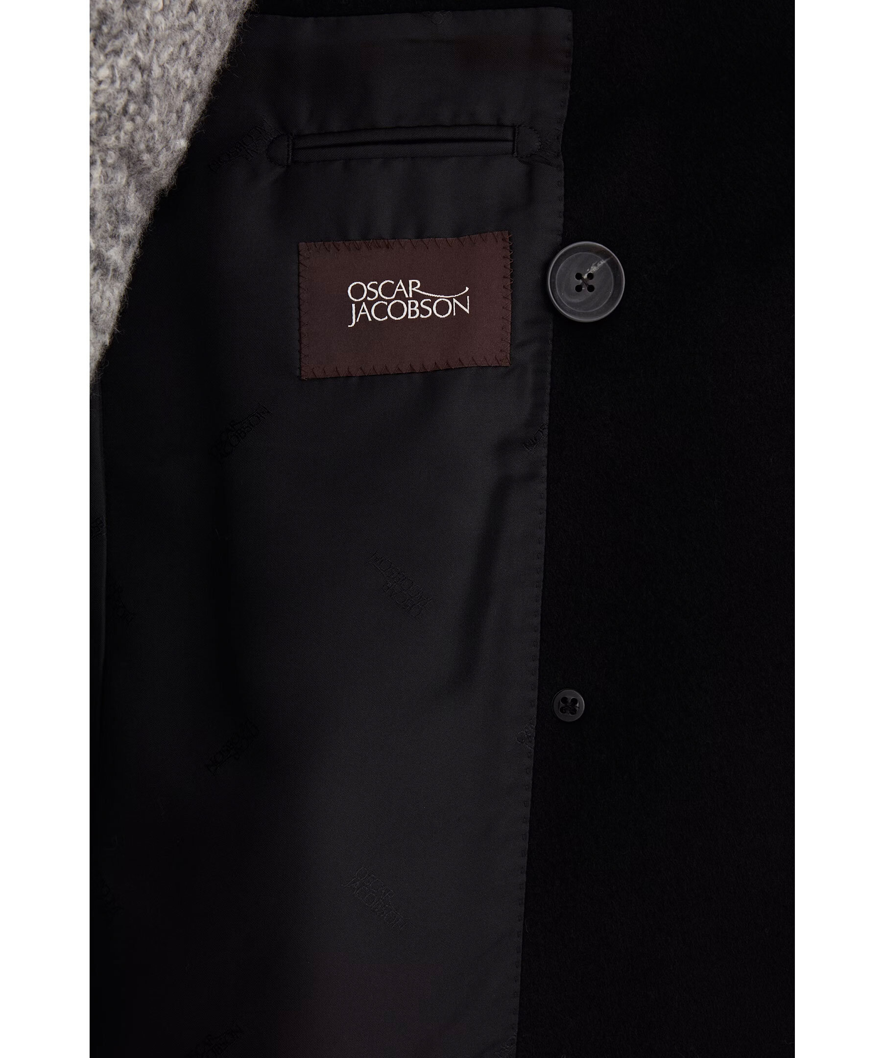 Svart, dubbelknäppt rock från Oscar Jacobson. Gjord i en borstad ullblandning. Två front fickor och en bröstficka.