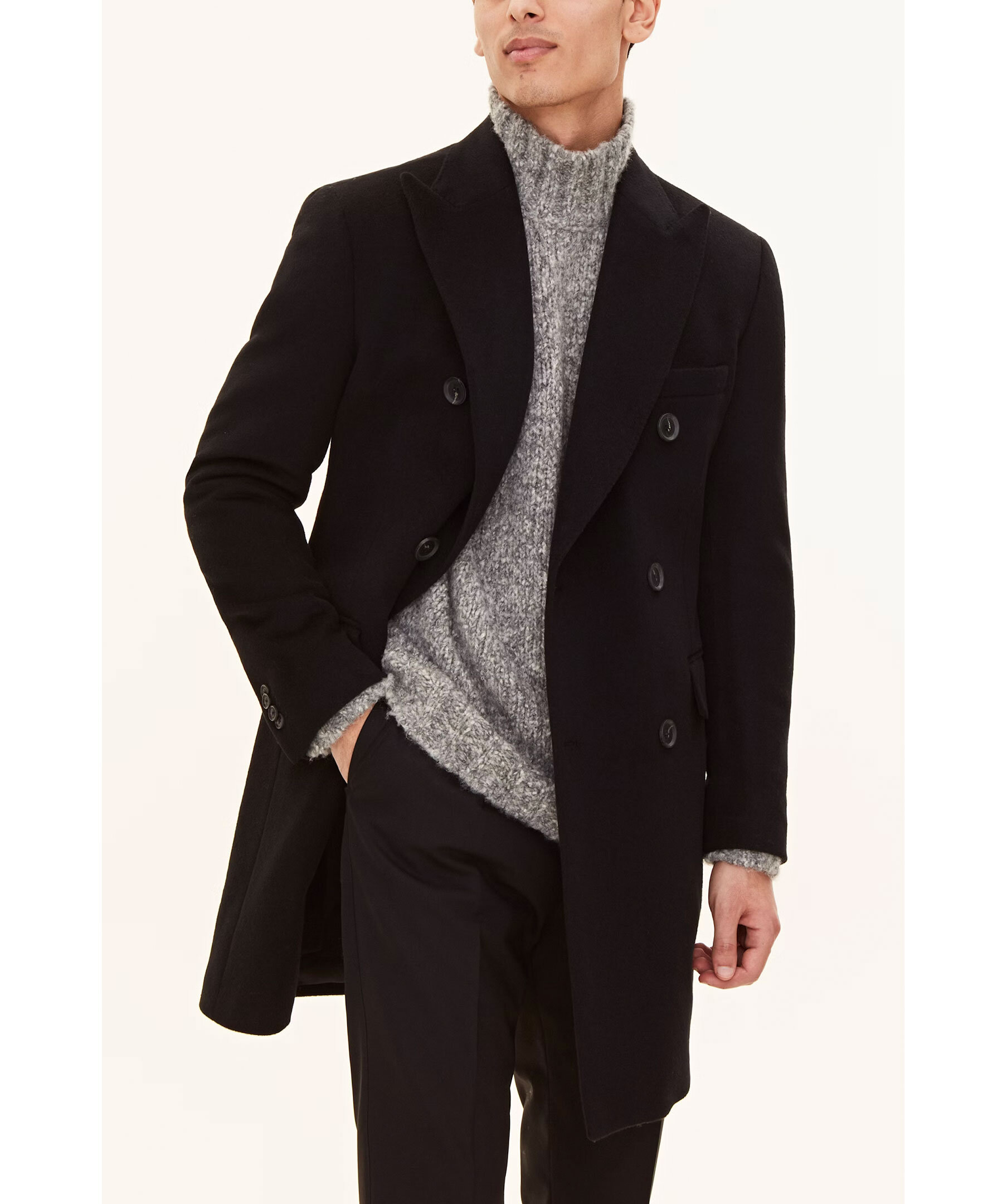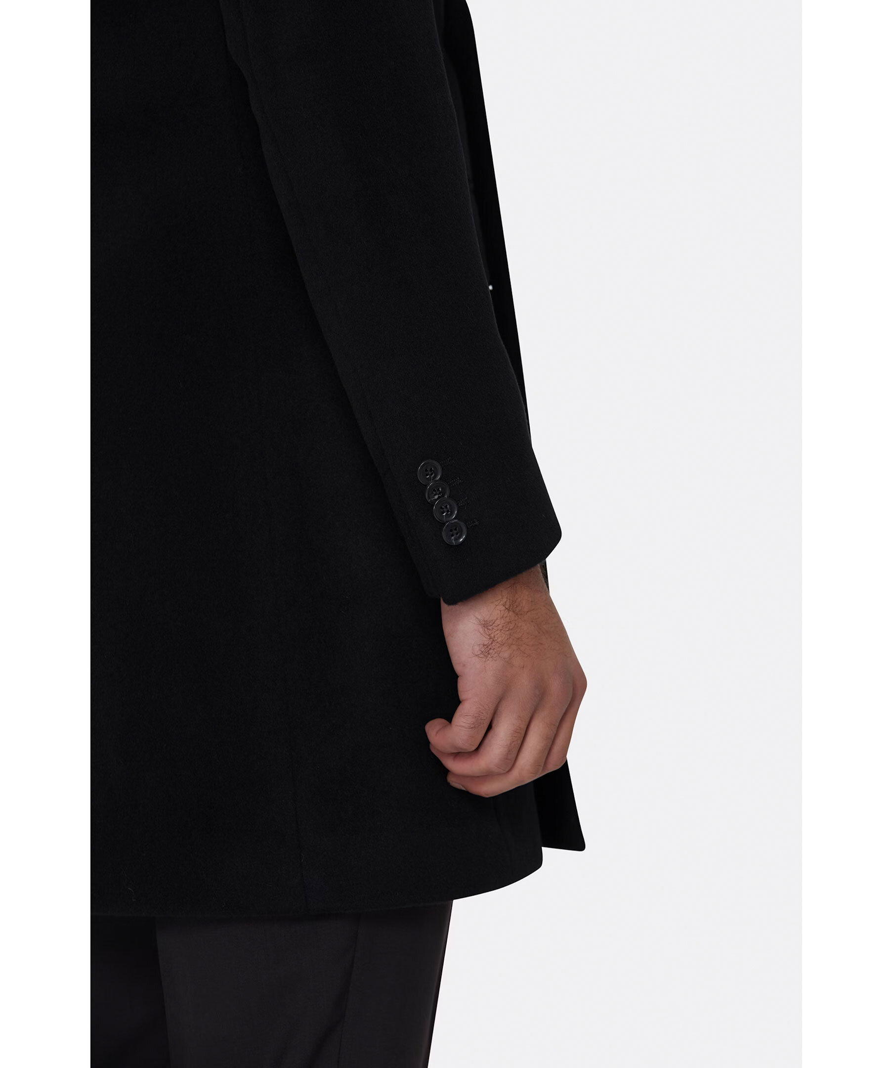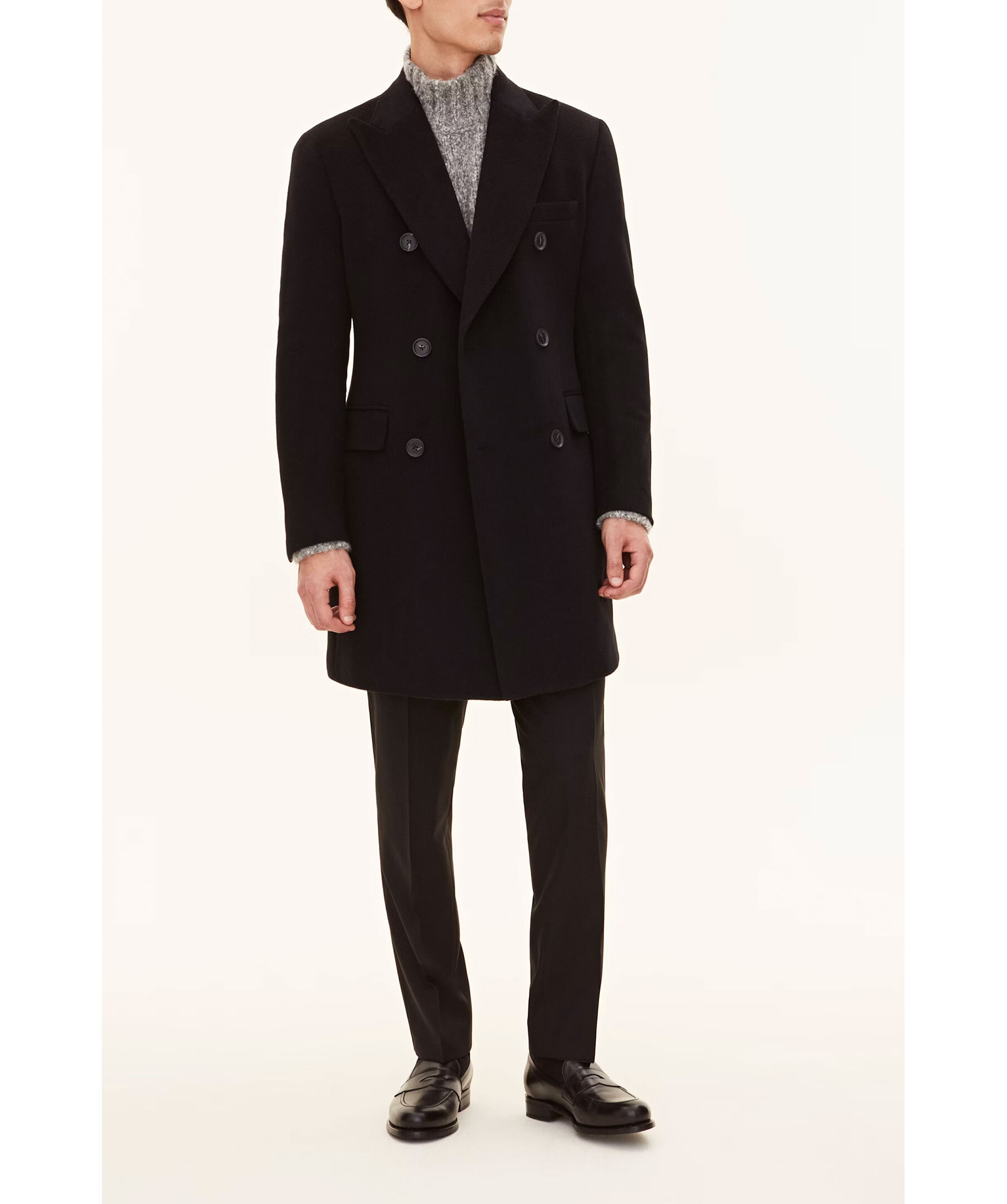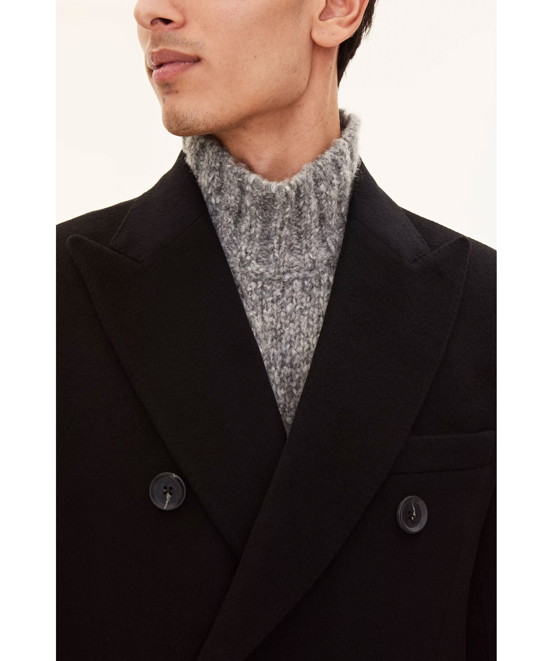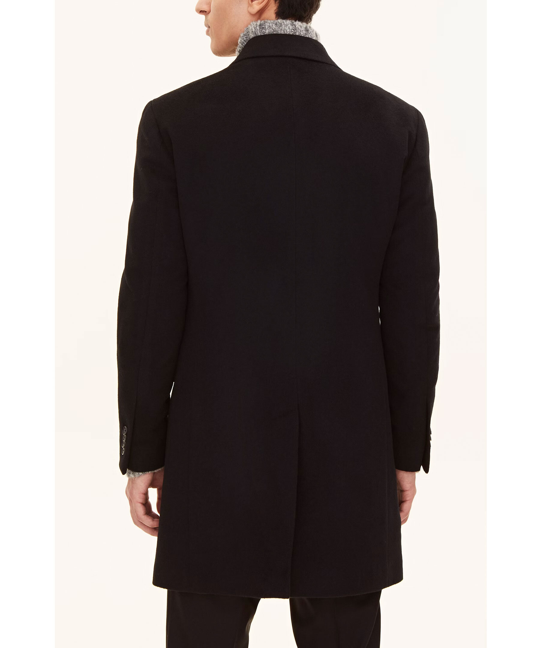 Svart, dubbelknäppt rock från Oscar Jacobson. Gjord i en borstad ullblandning. Två front fickor och en bröstficka.
