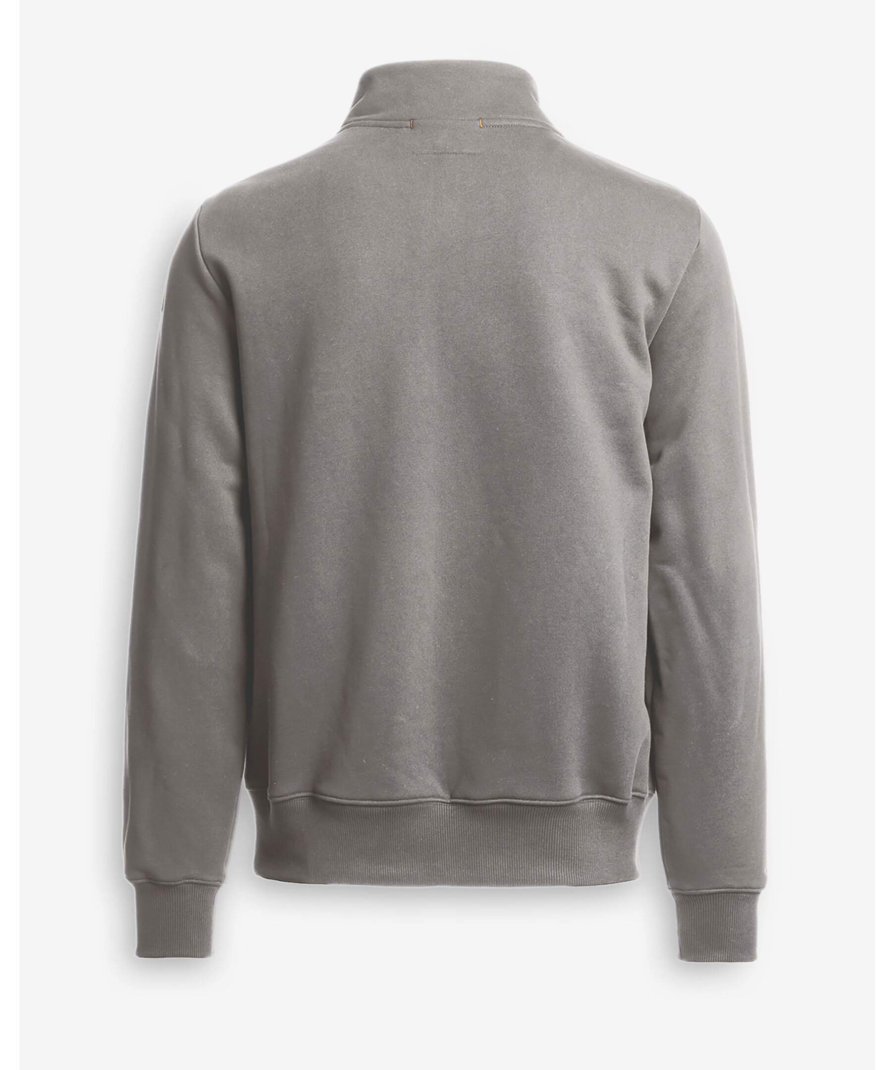 Grå half-zip från Parajumpers. Ribbstickade muddar och patch med logotyp på ena ärmen.