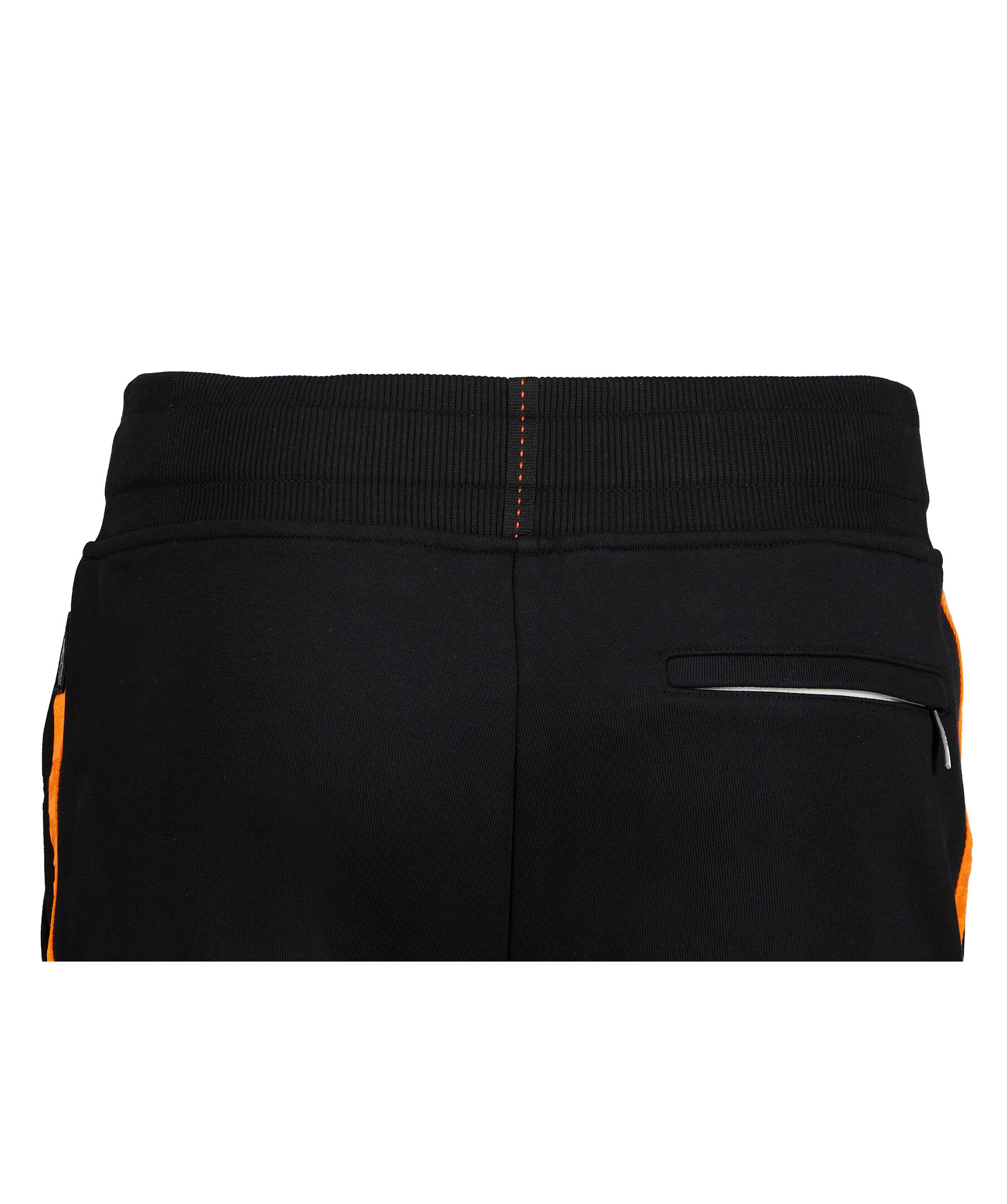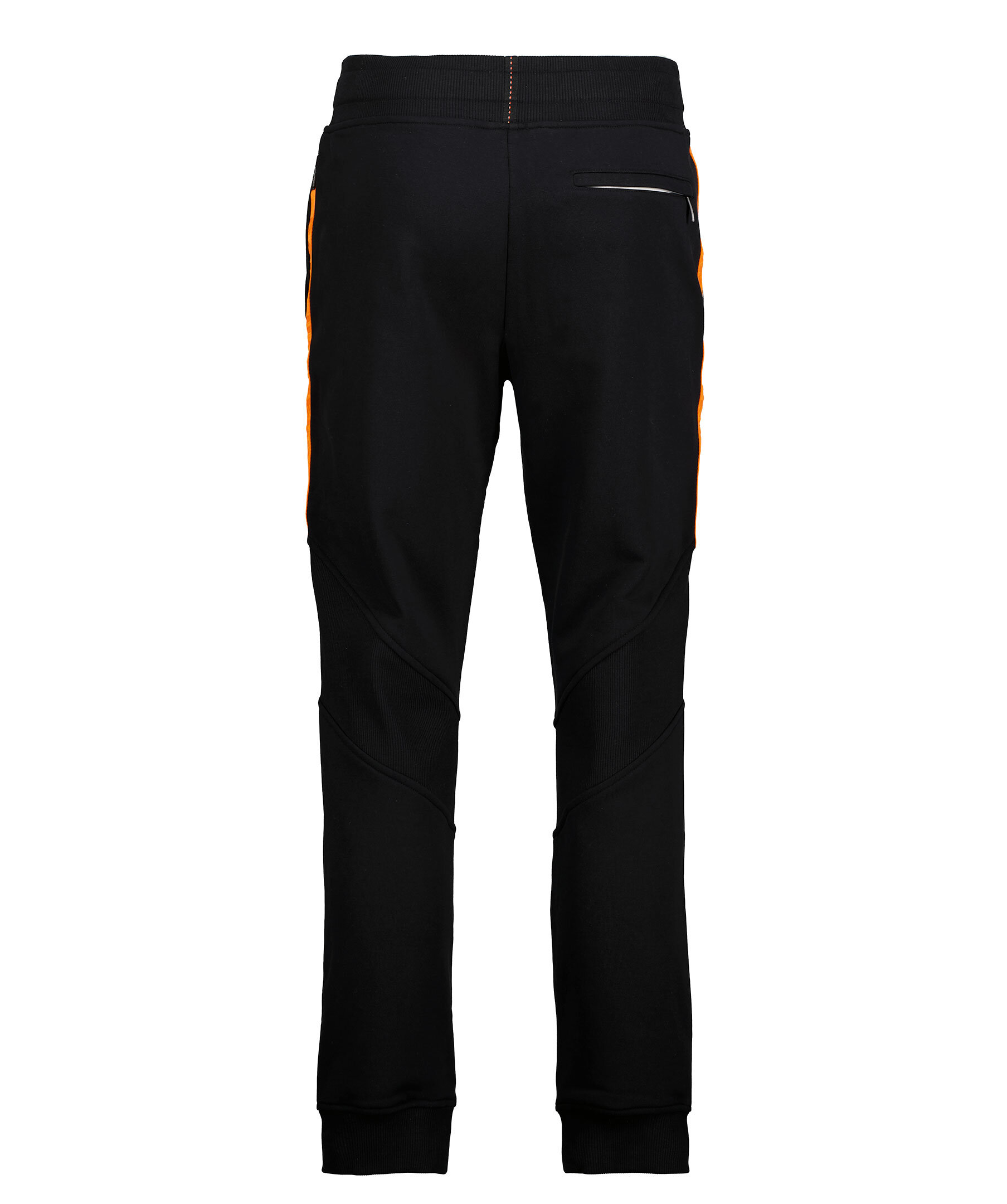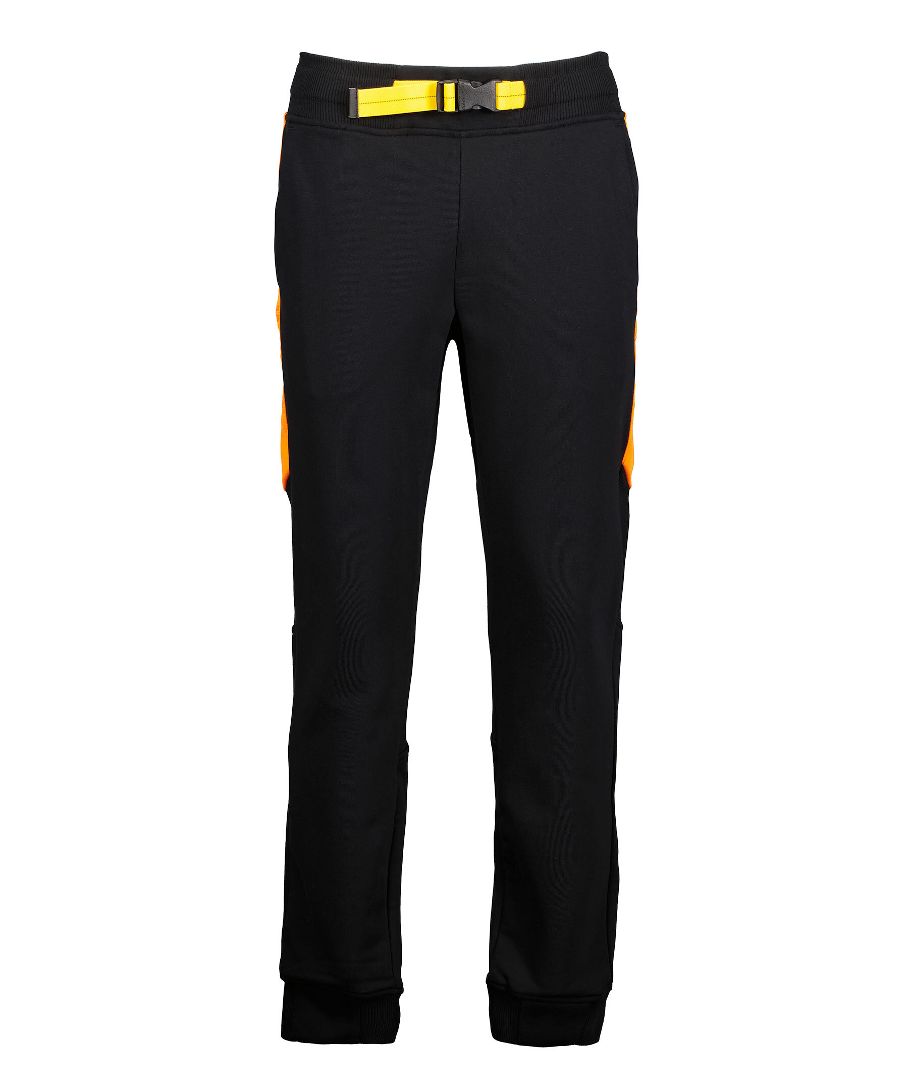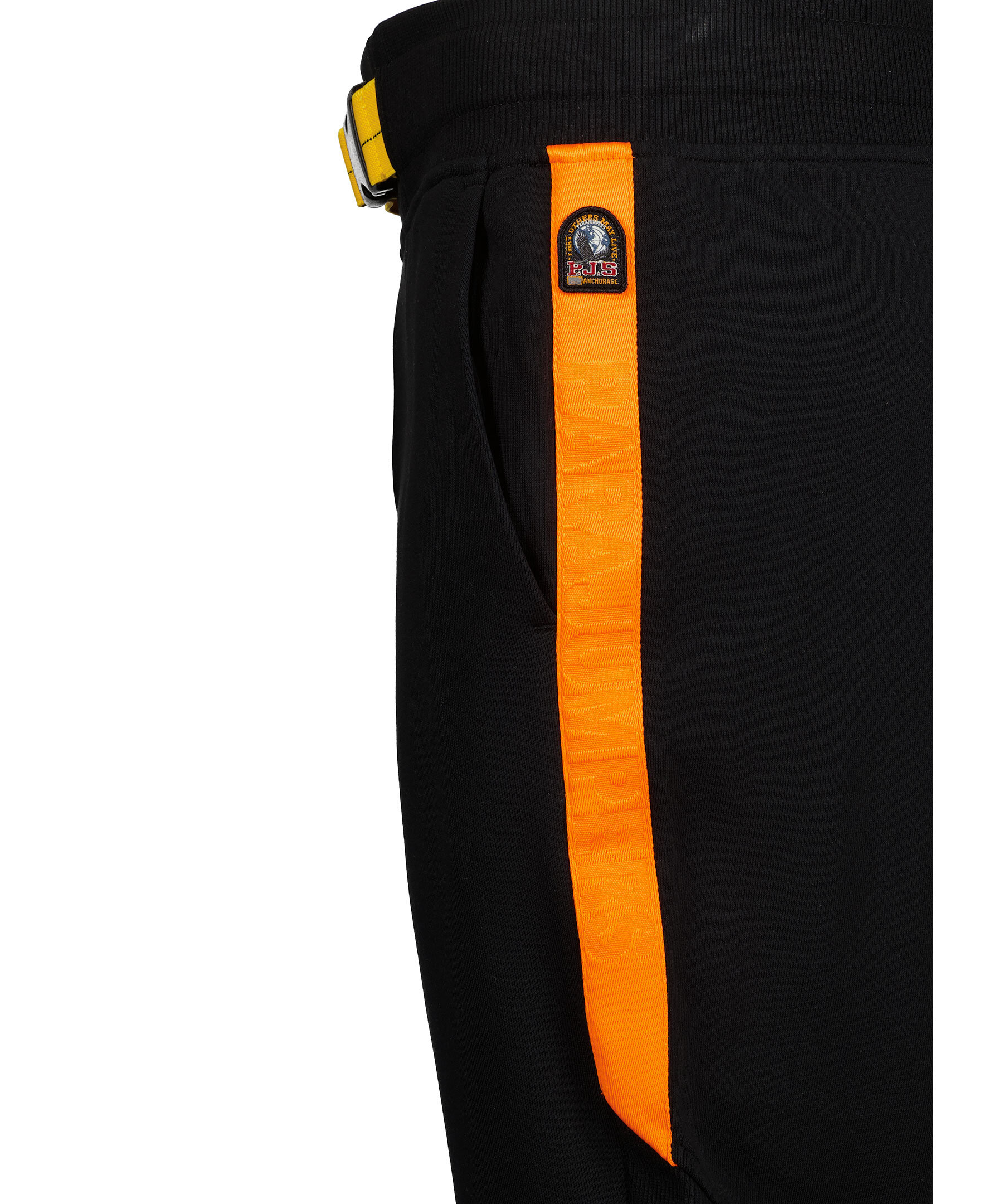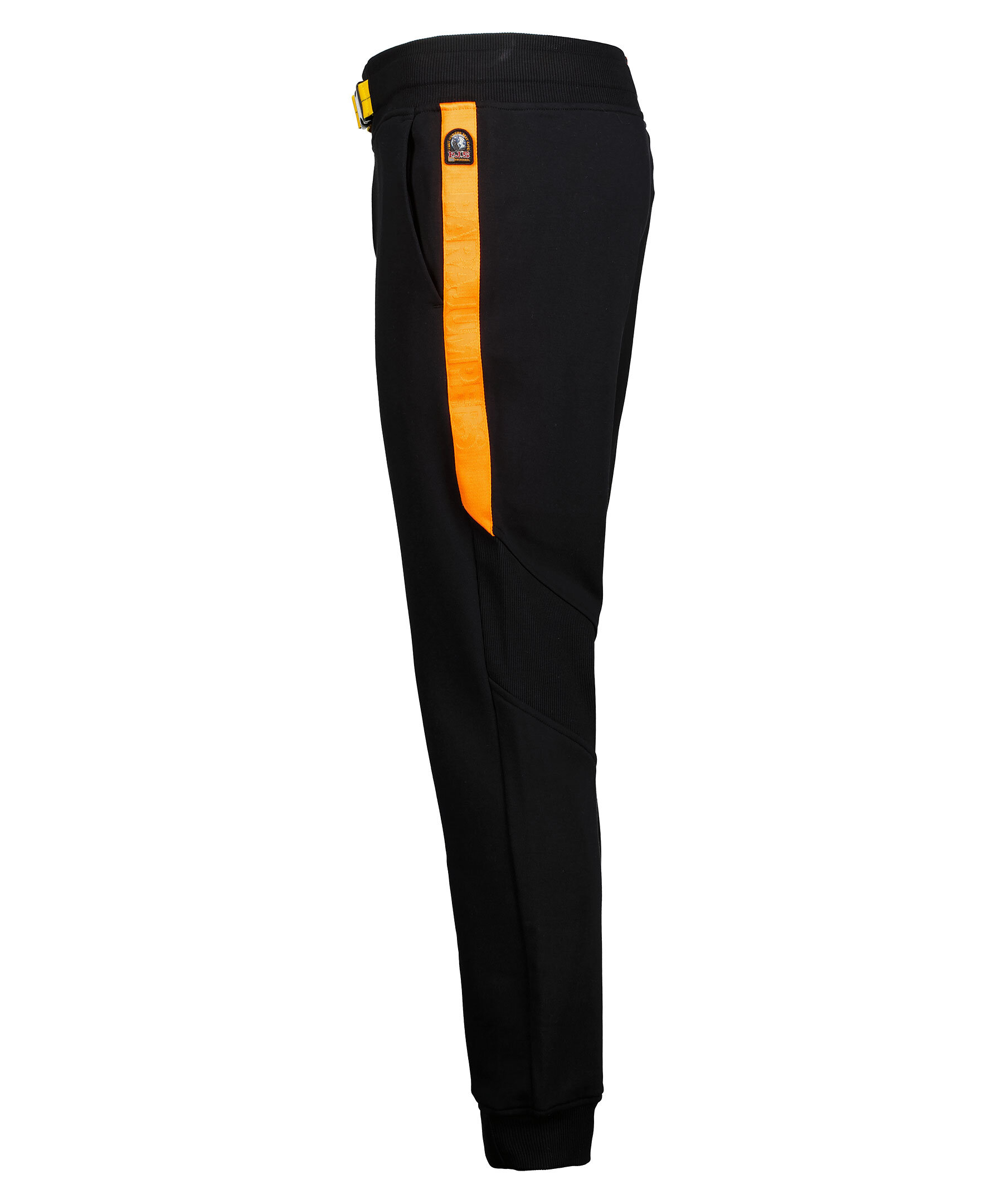 Svarta sweatpants från Parajumpers. Gult Justerbart bälte i midjan med spänne. Ribbstickad mudd vid midjan, benslut. Orangea revärer med embossad logotyp, broderad patch med logotyp på vänster sida. Bomull och polyester blandning. Två fickor framtill. Bakficka som stängs med dragkedja.