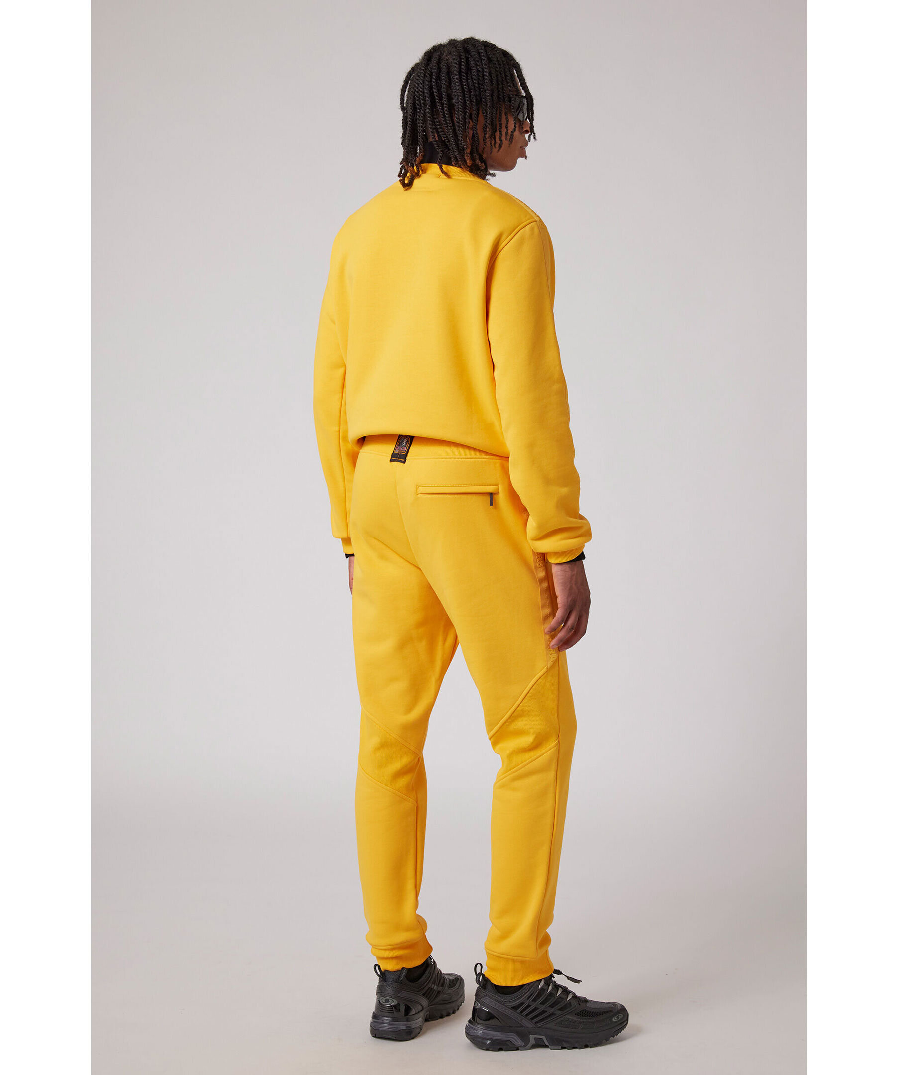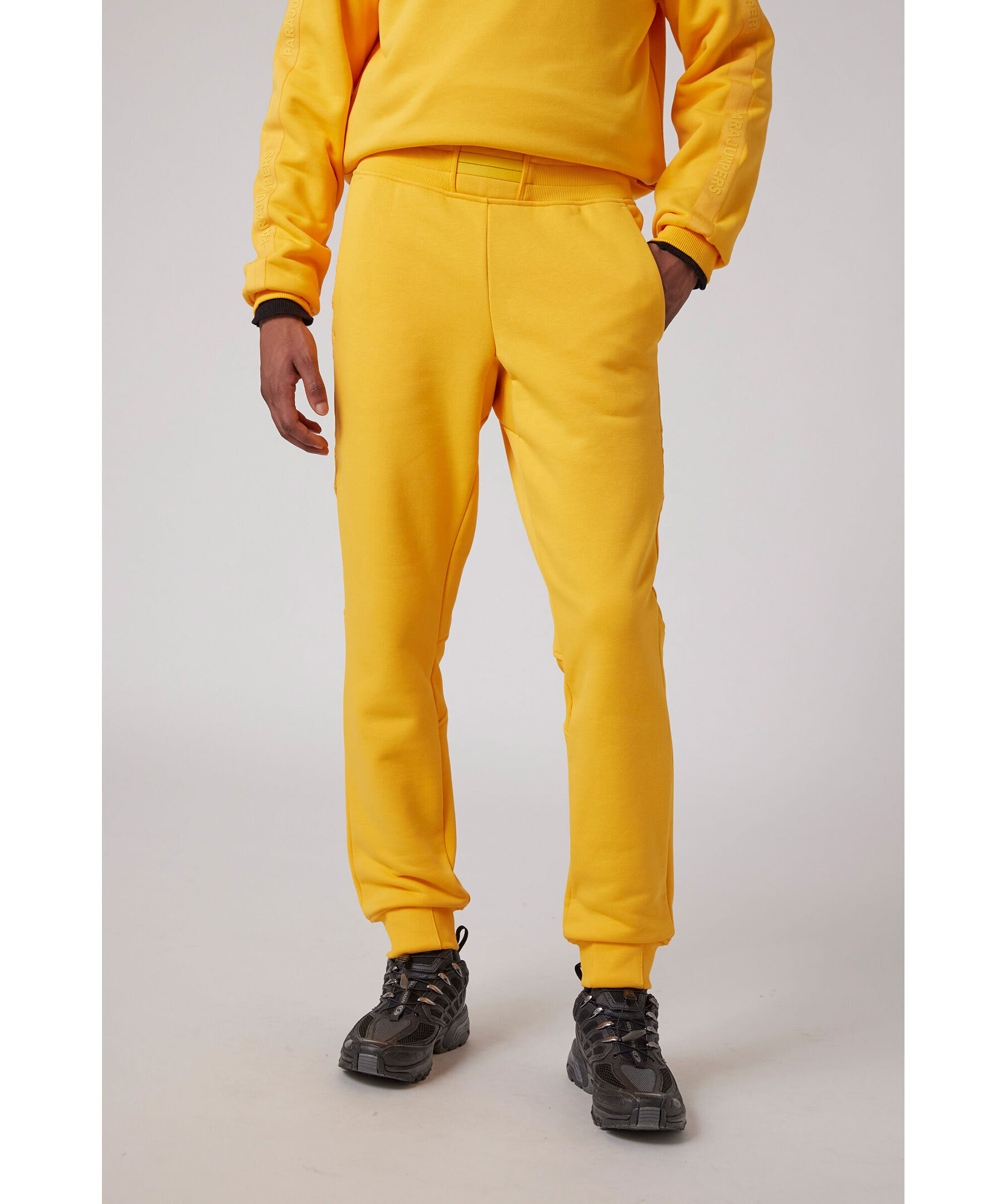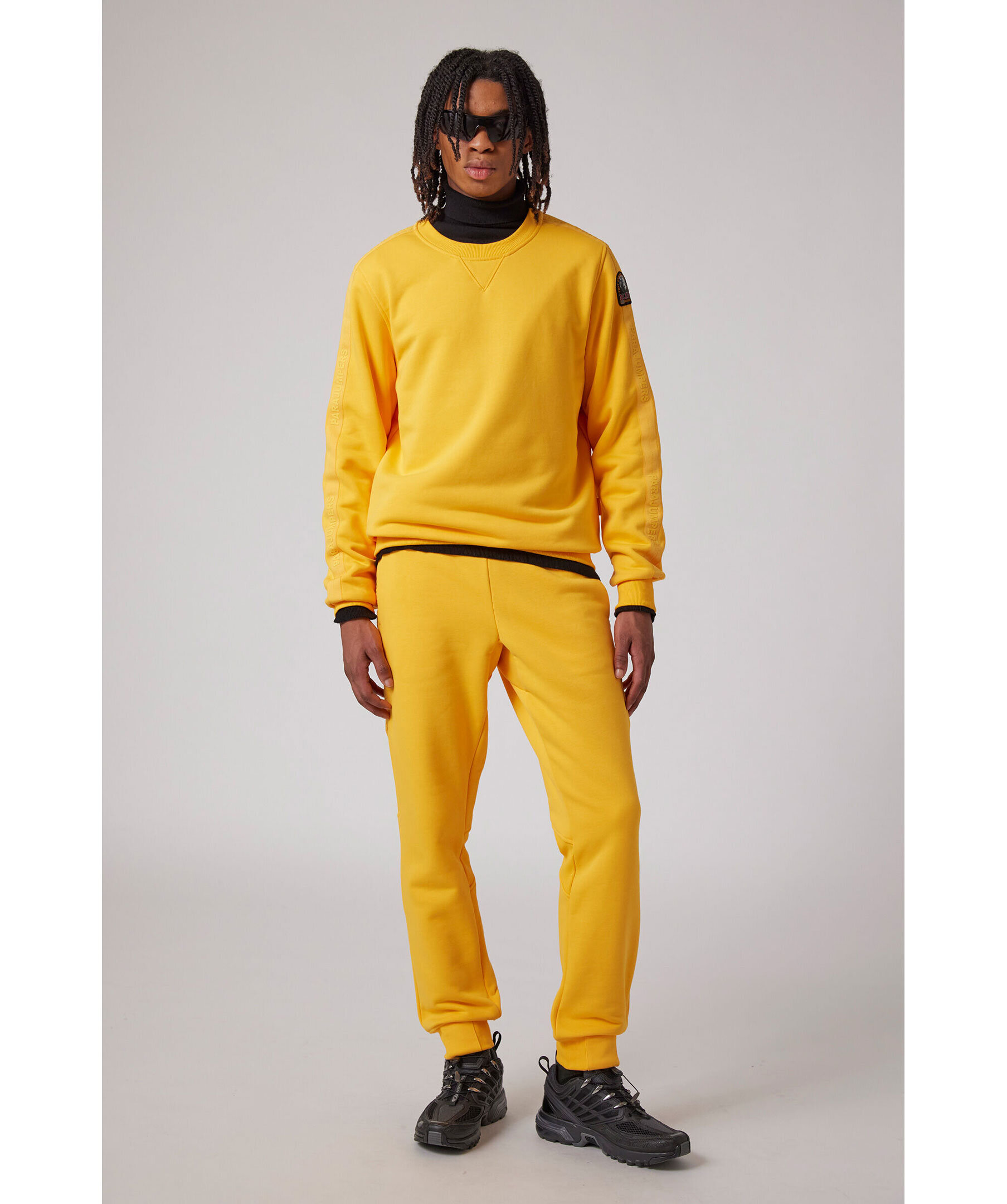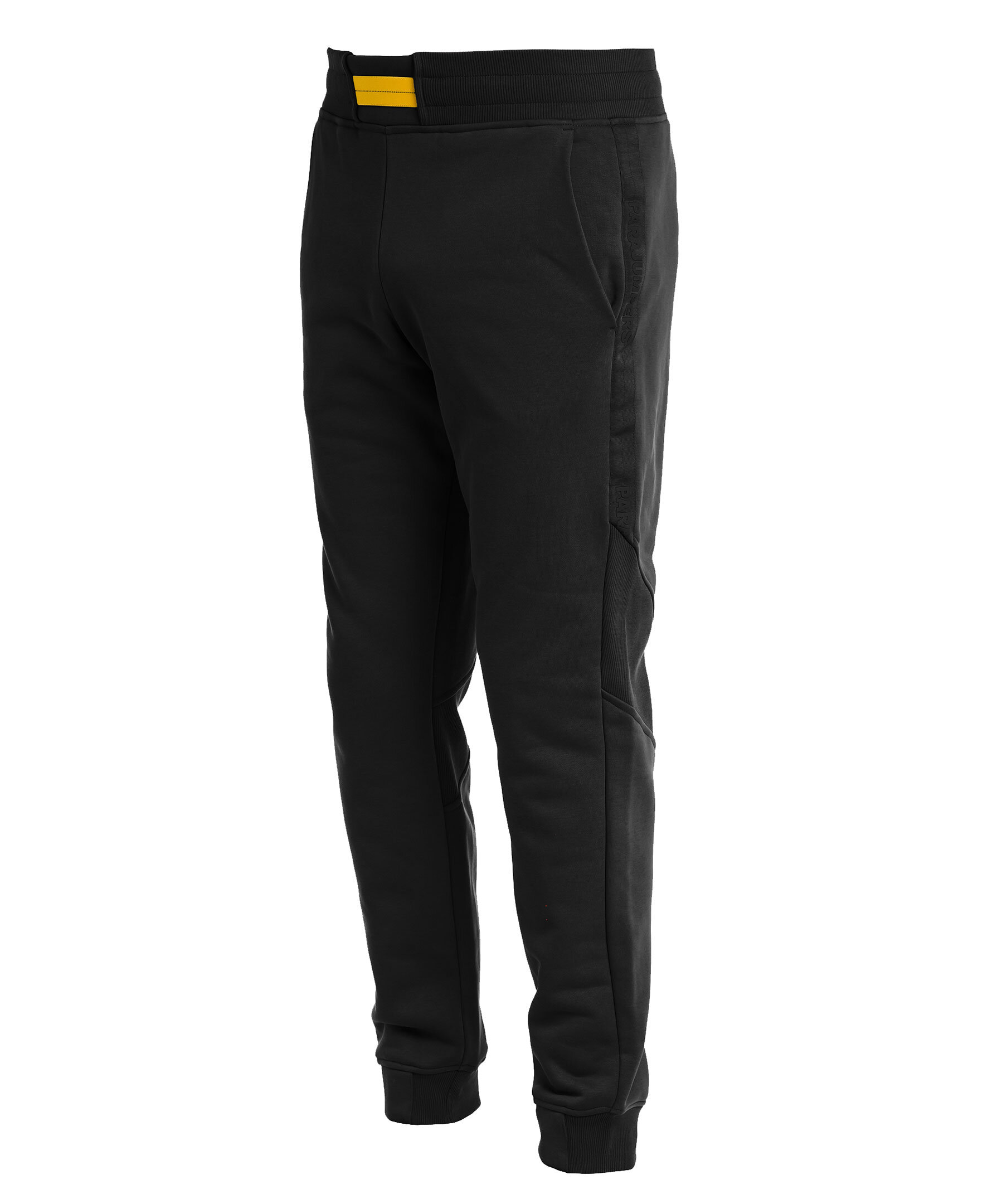 Svarta mjukisbyxor från Parajumpers. Tillverkade i en bomull- och polyesterfleece med en diagonal struktur på baksidan och kännetecknas av ett logotyprevärer på sidorna. Byxorna har en justerbar midja med ikoniskt gult spänne. Resår i botten och bakom knäet, Parajumpers-patch på vänster ben. ■ OBS! Modellbilderna visar endast passform