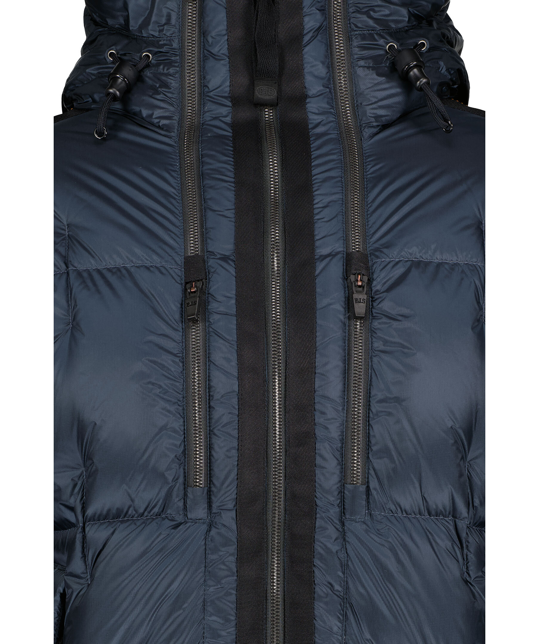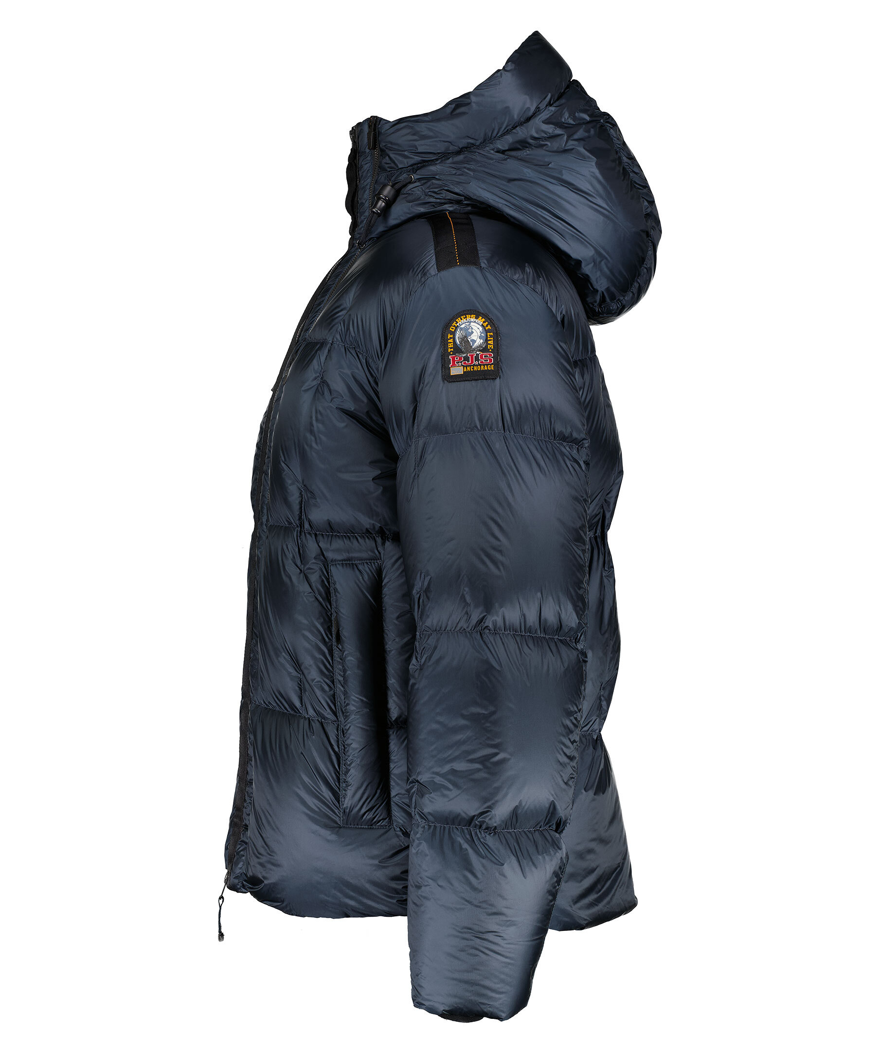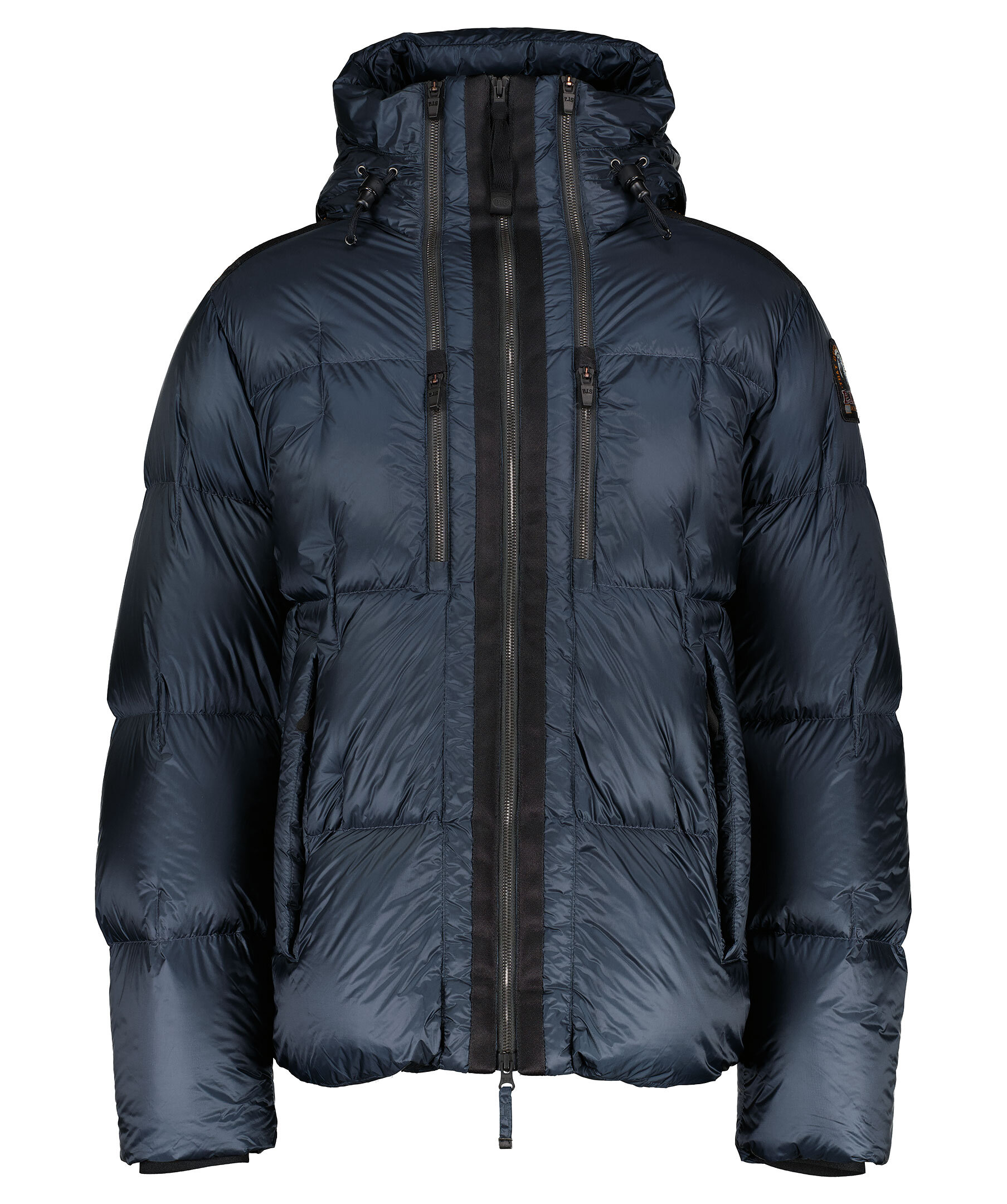 Mörkblå pufferdunjacka med huva från Parajumpers. Extremt lätt men ändå högpresterande, Diran pufferjackan har en stark design och funktionella detaljer. Den stängs med tvåvägsdragkedja, har två bröstfickor och två sidfickor som alla stängs med dragkedja. Dragsko i huvan samt vid plaggslut. Patch-logotyp på vänster ärm. Tillverkad i en polyamid- och polyesterblandning. ■ OBS! Modellbilden visar endast passform