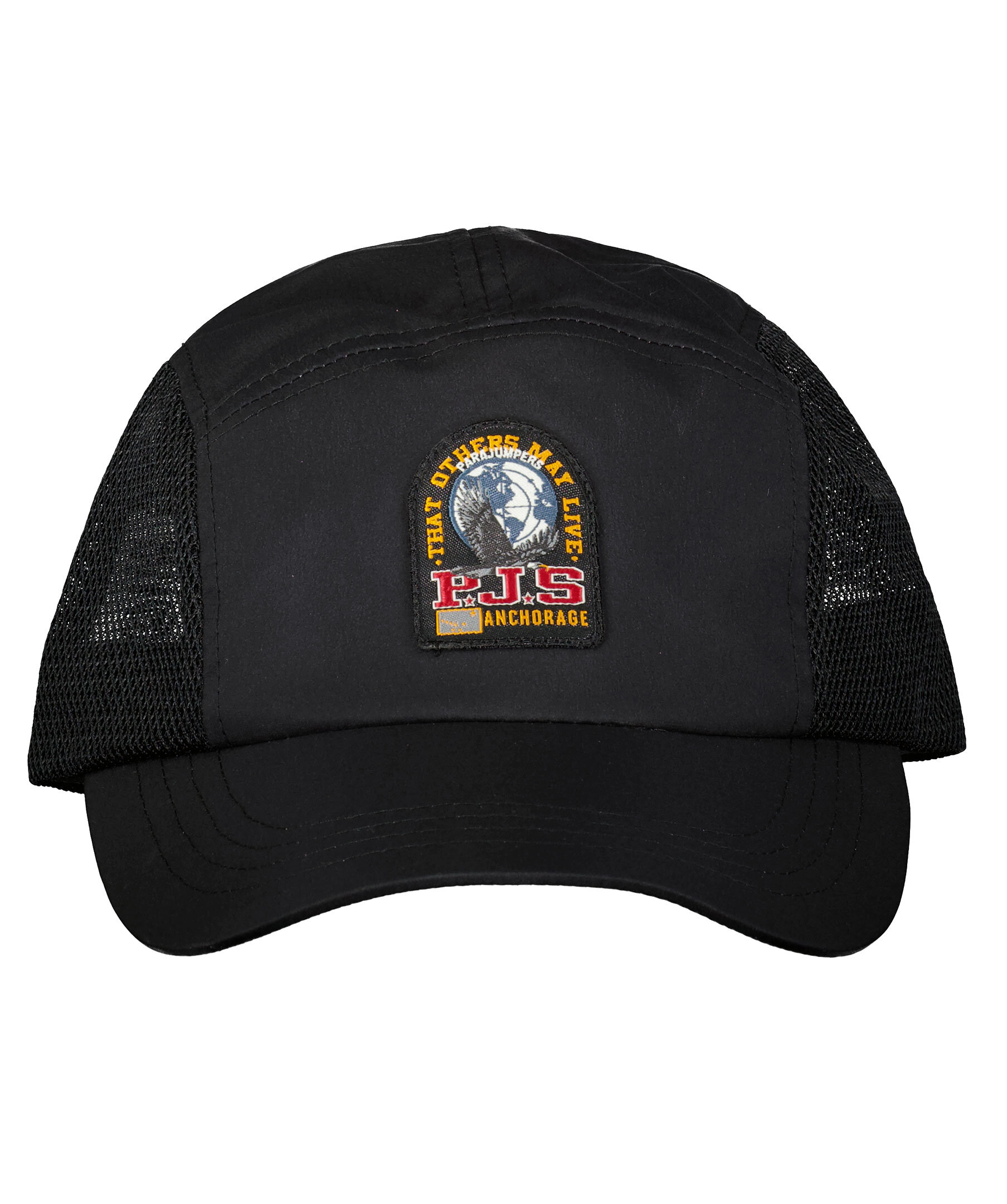 Svart keps från Parajumpers. Tillverkad i polyamidblandning. Den här kepsen har meshpaneler på baksidan för andningsförmåga och twillpaneler framtill som ger den en sval känsla. Patch med logotyp på framsidan. Justerbart spänne baktill.