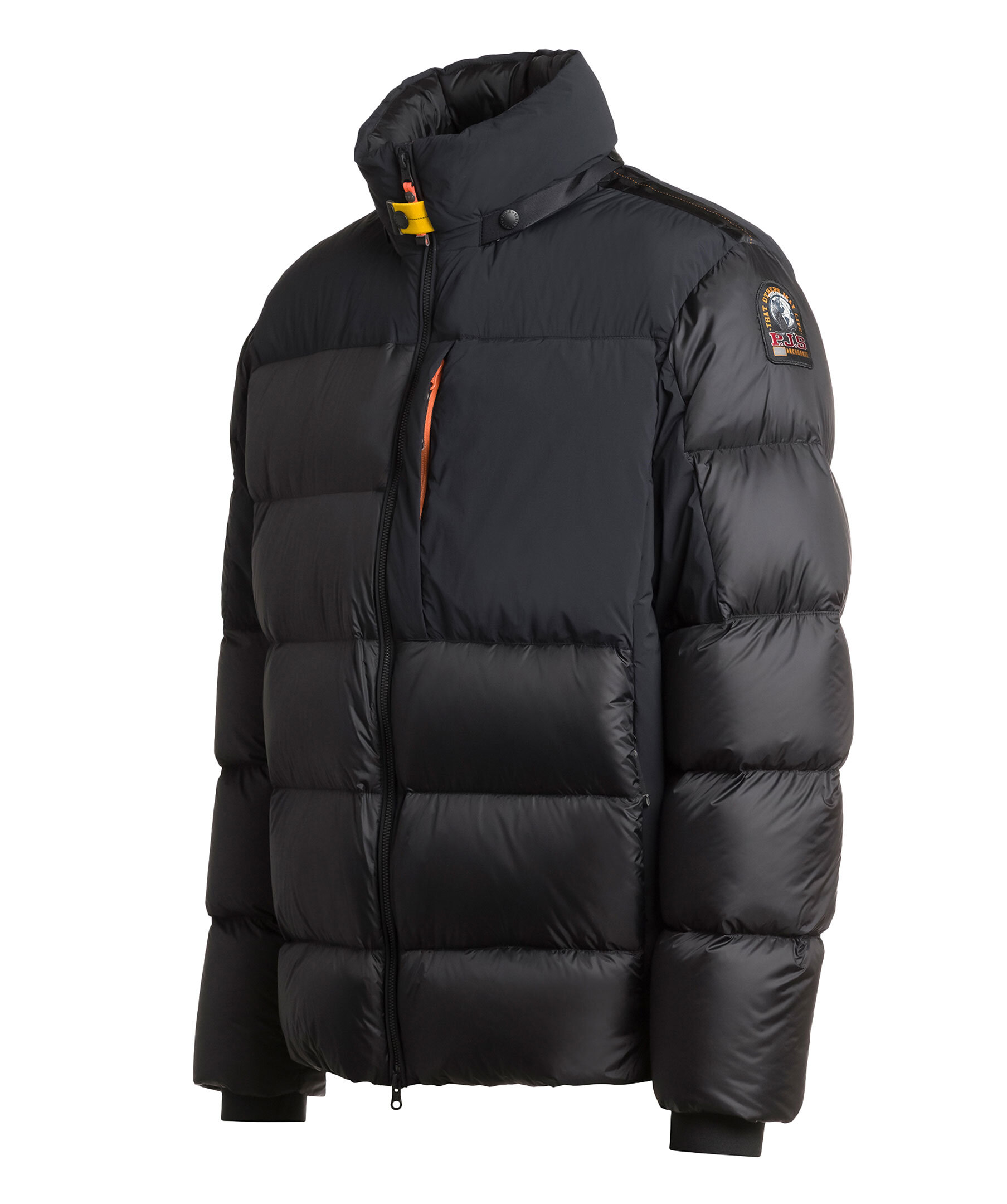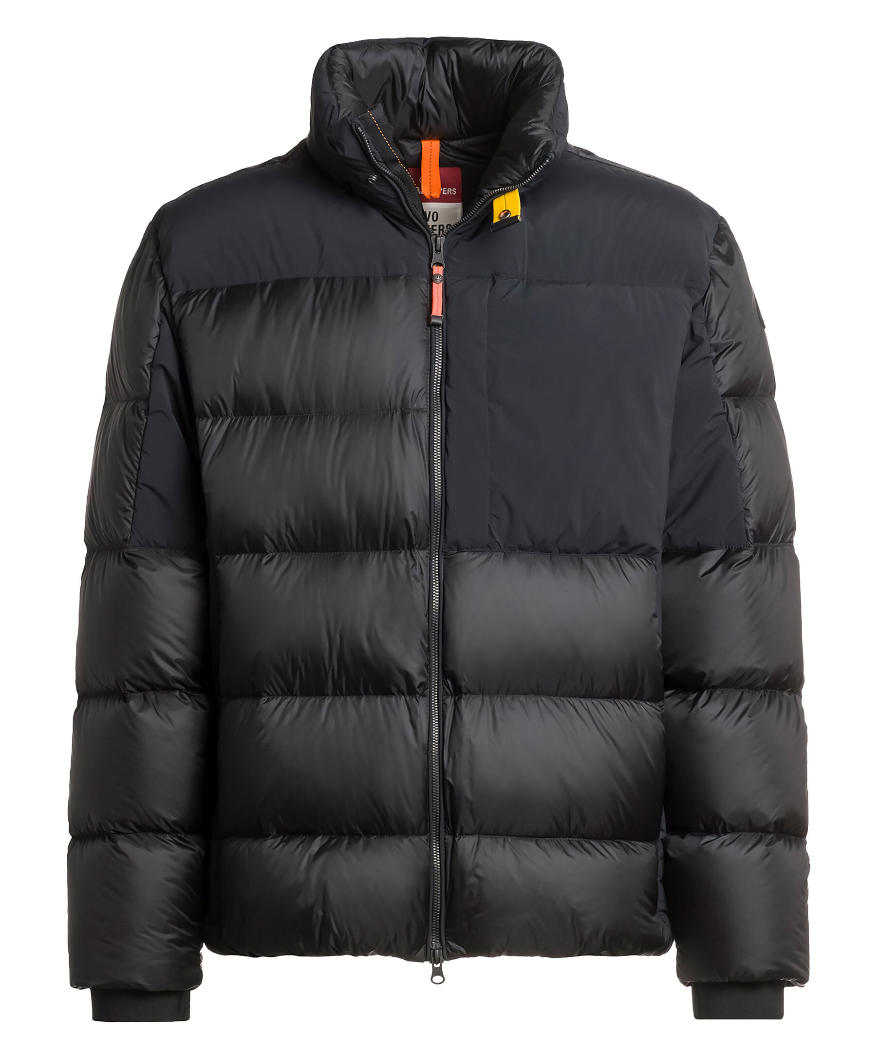 Svart dunjacka i pufferstil från Parajumpers. Jackan är gjord i nylon med en vattenavvisande behandling. Dold luva i kragen. Tre framfickor och två innerfickor. Elastisk mudd vid ärmslut och dragsko på insidan av jackan nertill. Jackan öppnas och stängs med en tvåvägsdragkedja framtill och har en patch-logotyp på vänster ärm.