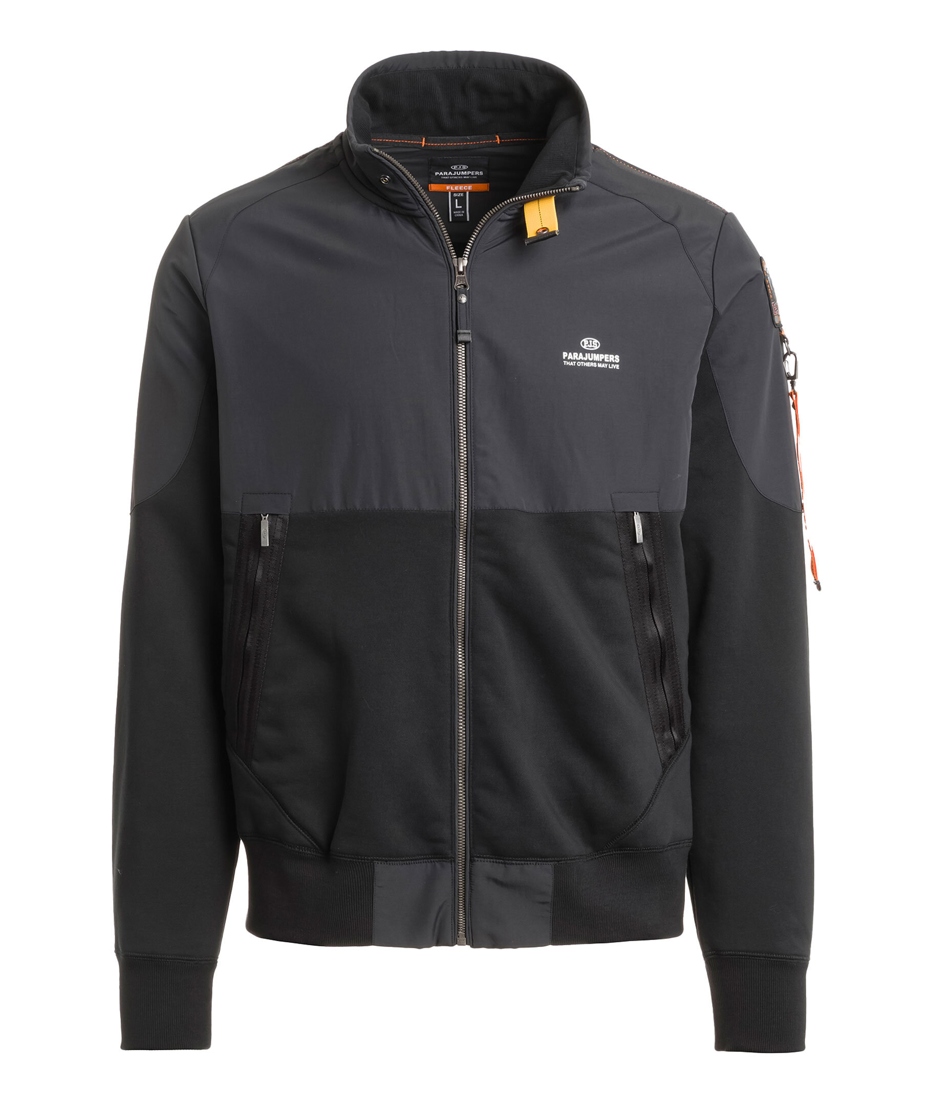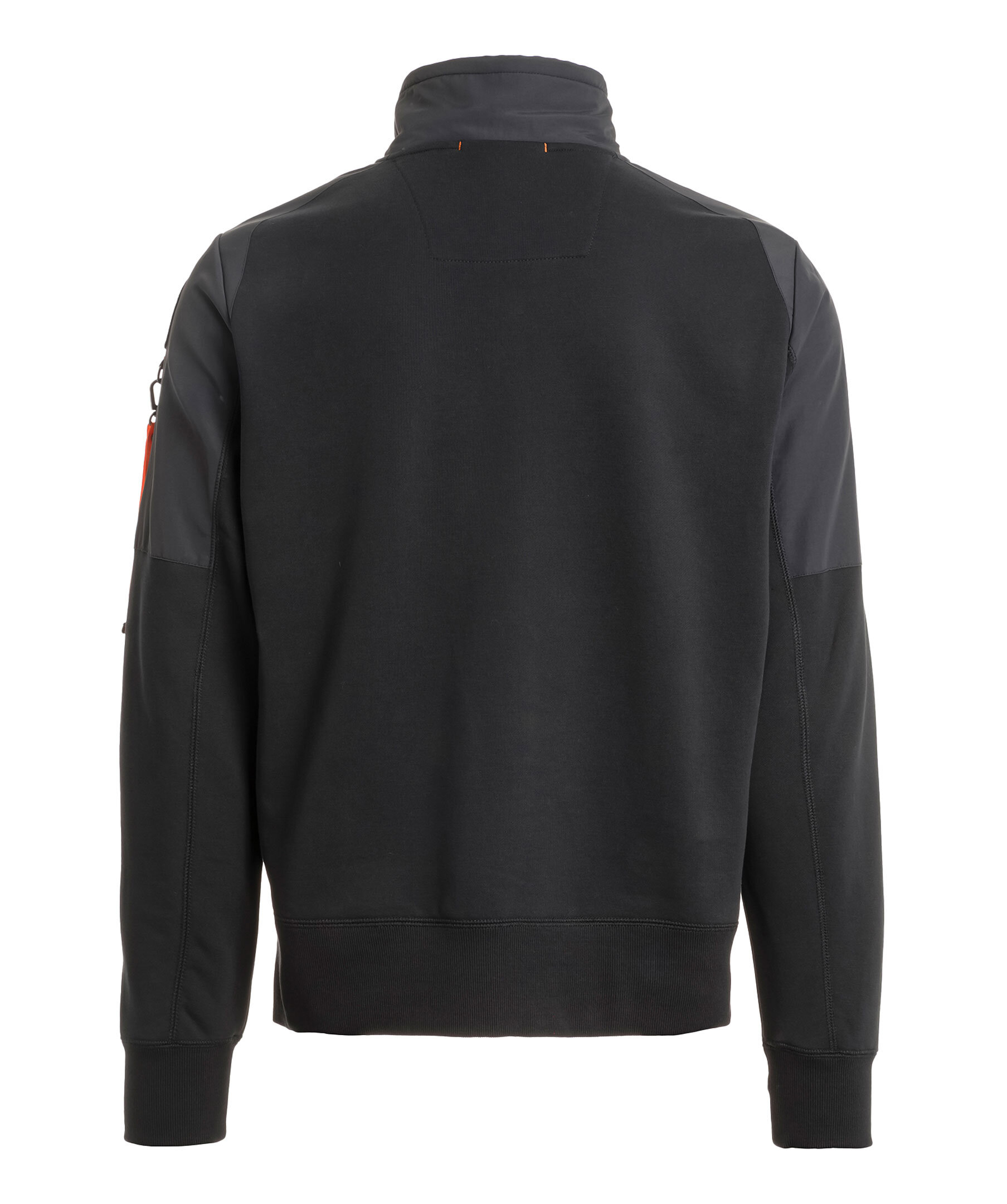 Svart/grå tröja med dragkedja från Parajumpers Rescue Fleece kollektion. Panelsydd och har den klassiskt gula knappstängningen vid halsen. Två stora sidfickor med dragkedja. Logotyp på bröstet och en patch på ena sidan av ärmen. Tillverkad i en bomullsblandning.