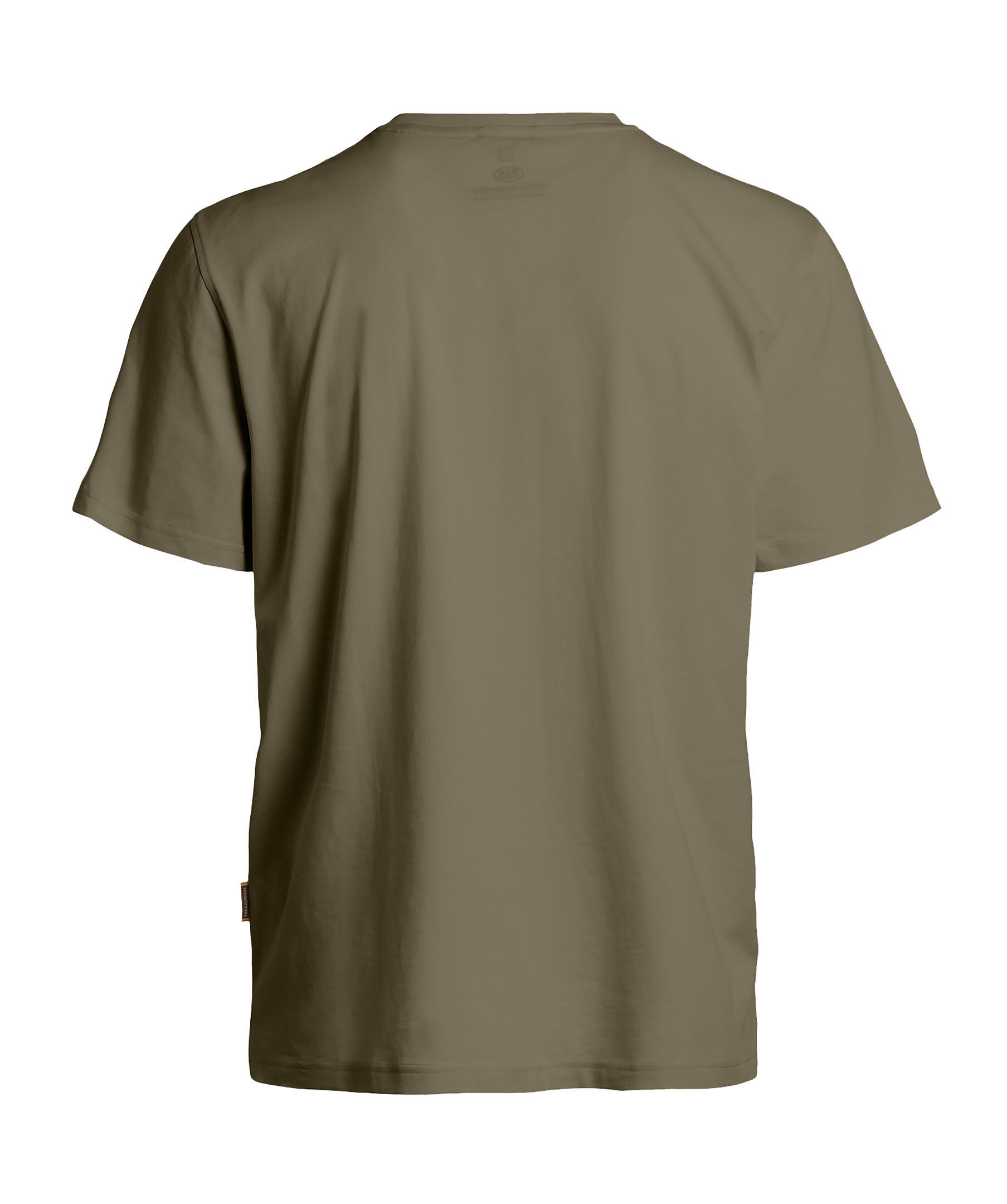Militärgrön T-shirt från Parajumpers. Bröstficka på vänster sida med patch med logotyp och hängande logotyp i oranget med karbinhake. Fickan stängs med lock och dragkedja. Rundad halsringning. Tillverkad i 100% bomull.