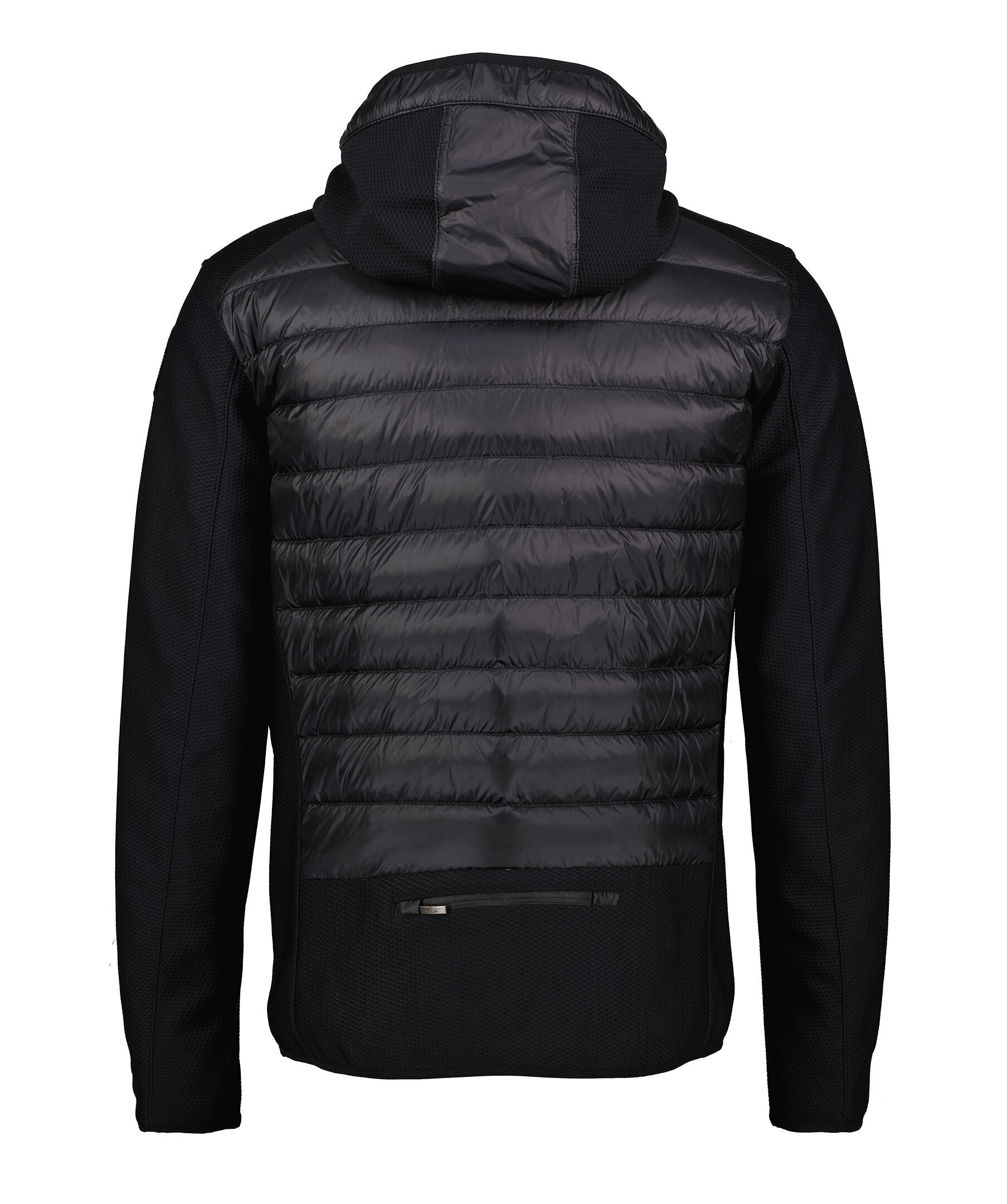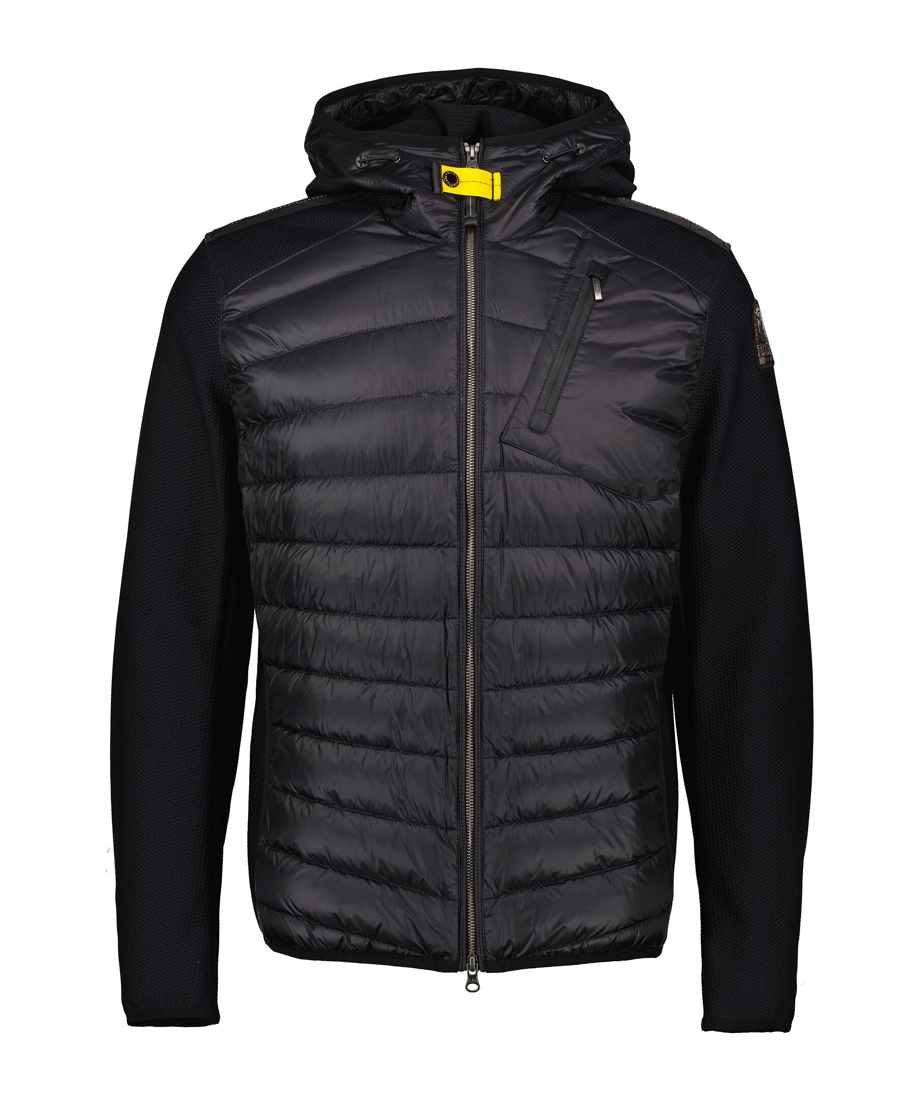 Svart hybrid jacka med huva från Parajumpers. Jackan har två sidfickor samt en snedställd bröstficka med dragkedja. Patch-logotyp på vänster ärm. Ficka med dragkedja i svanken. Dragsko i huvan. Tillverkad i en polyamid- och polyesterblandning. Jackan stängs med tvåvägsdragkedja. Perfekt för mellansäsongsväder, kan enkelt packas ihop för att alltid vara redo när det blir svalare.