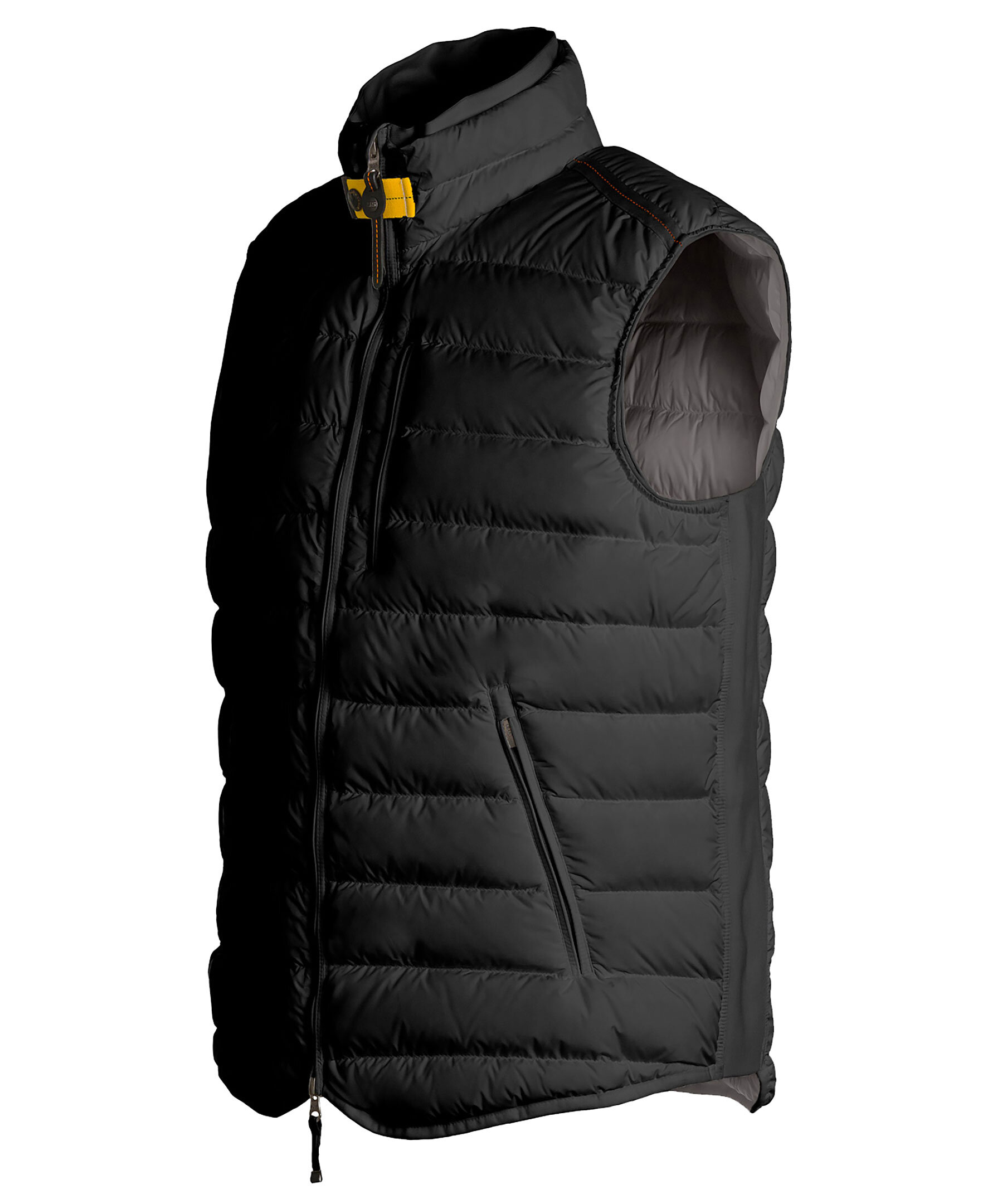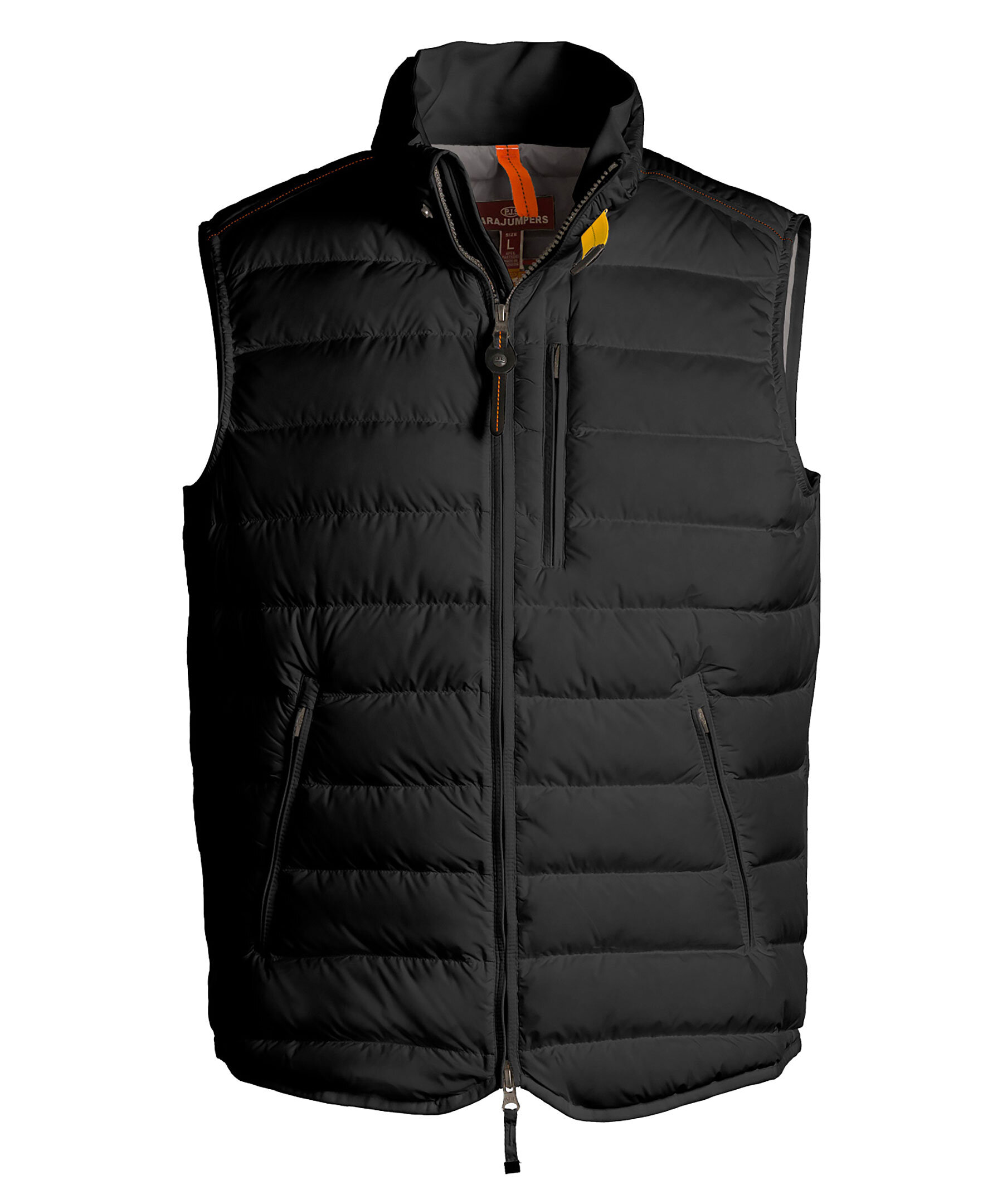 Svart, lättviktsdunväst från Parajumpers. Ribbstickad resår på vardera sida och logotyp i nacke. Tvåvägsdragkedja. Tre fickor med dragkedja. Passar perfekt till höst och vår, både på landet och i city.