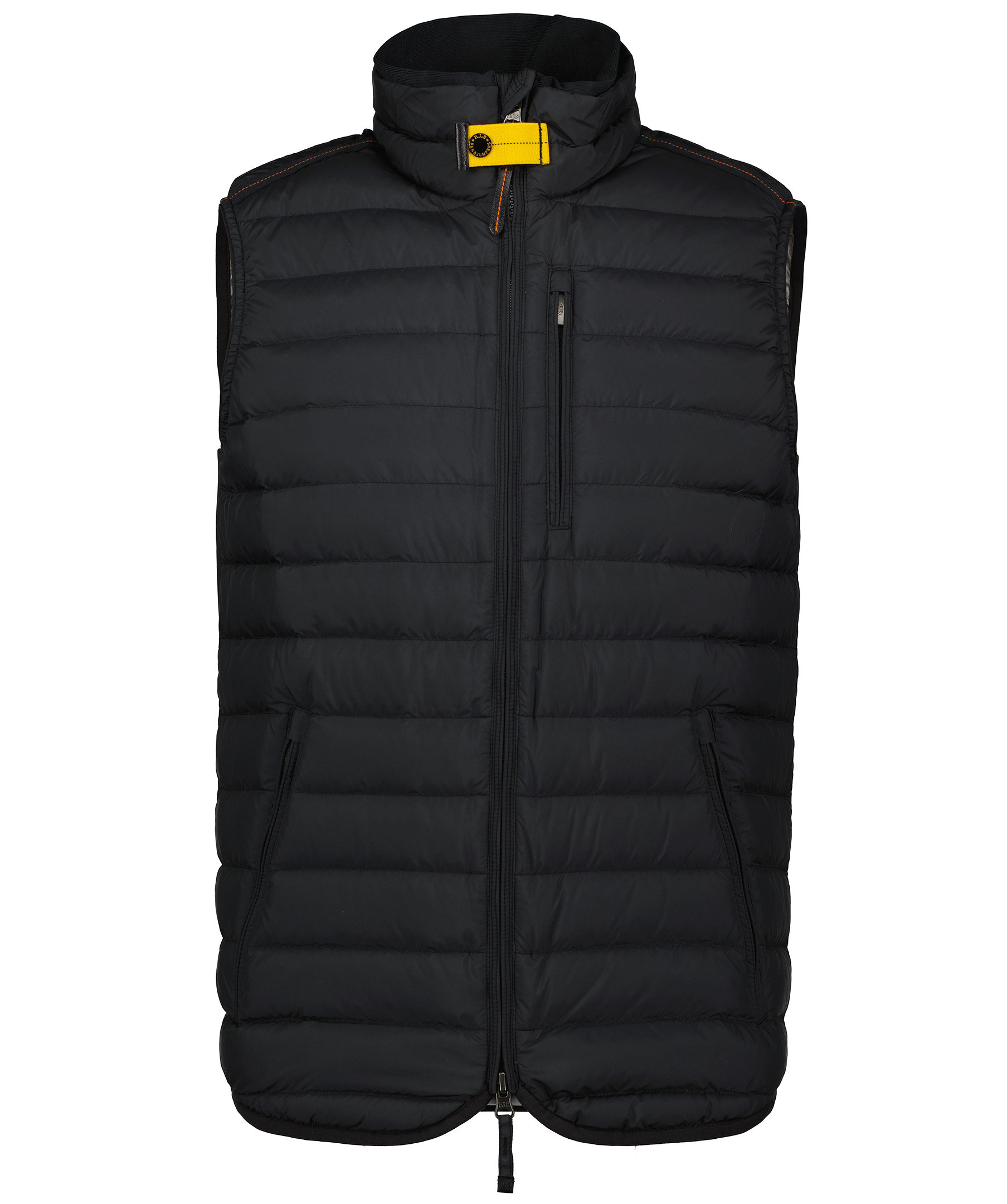 Svart, lättviktsdunväst från Parajumpers. Ribbstickad resår på vardera sida och logotyp i nacke. Tvåvägsdragkedja. Tre fickor med dragkedja. Passar perfekt till höst och vår, både på landet och i city.