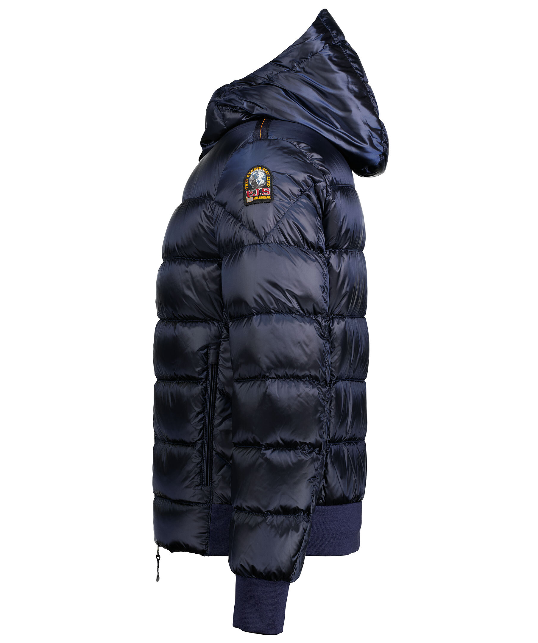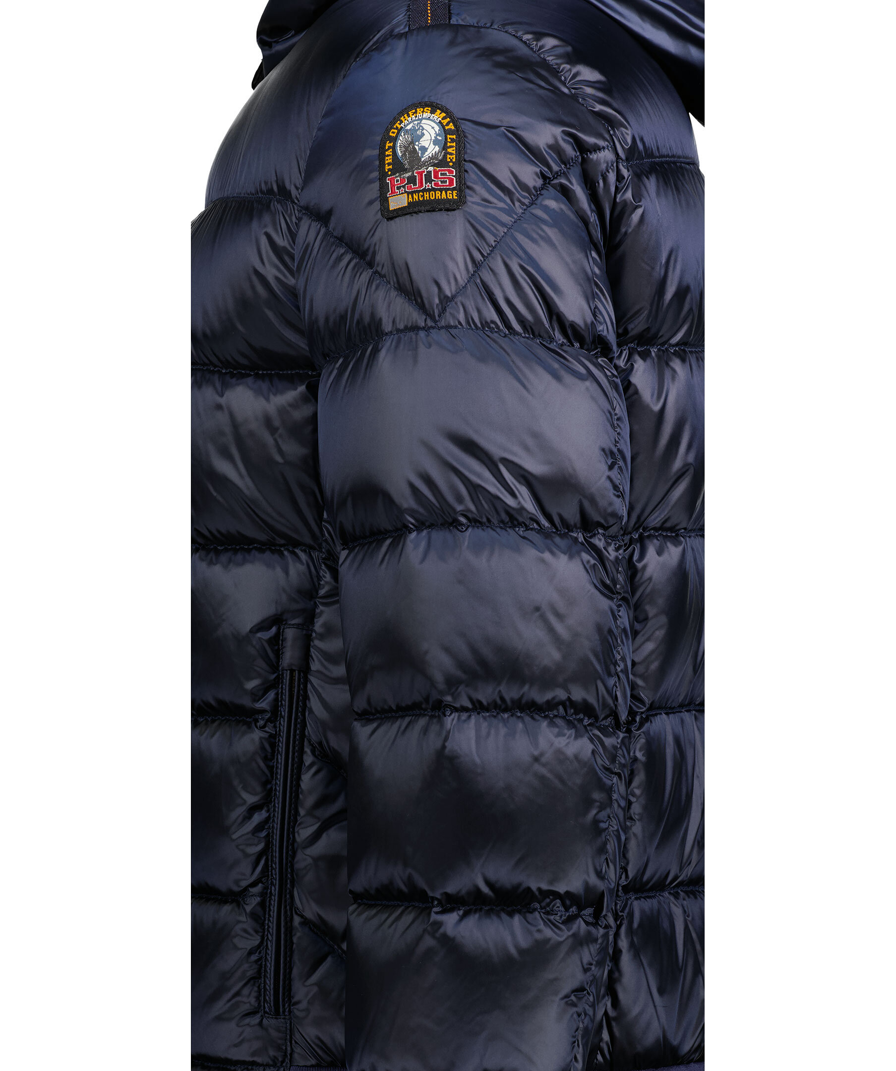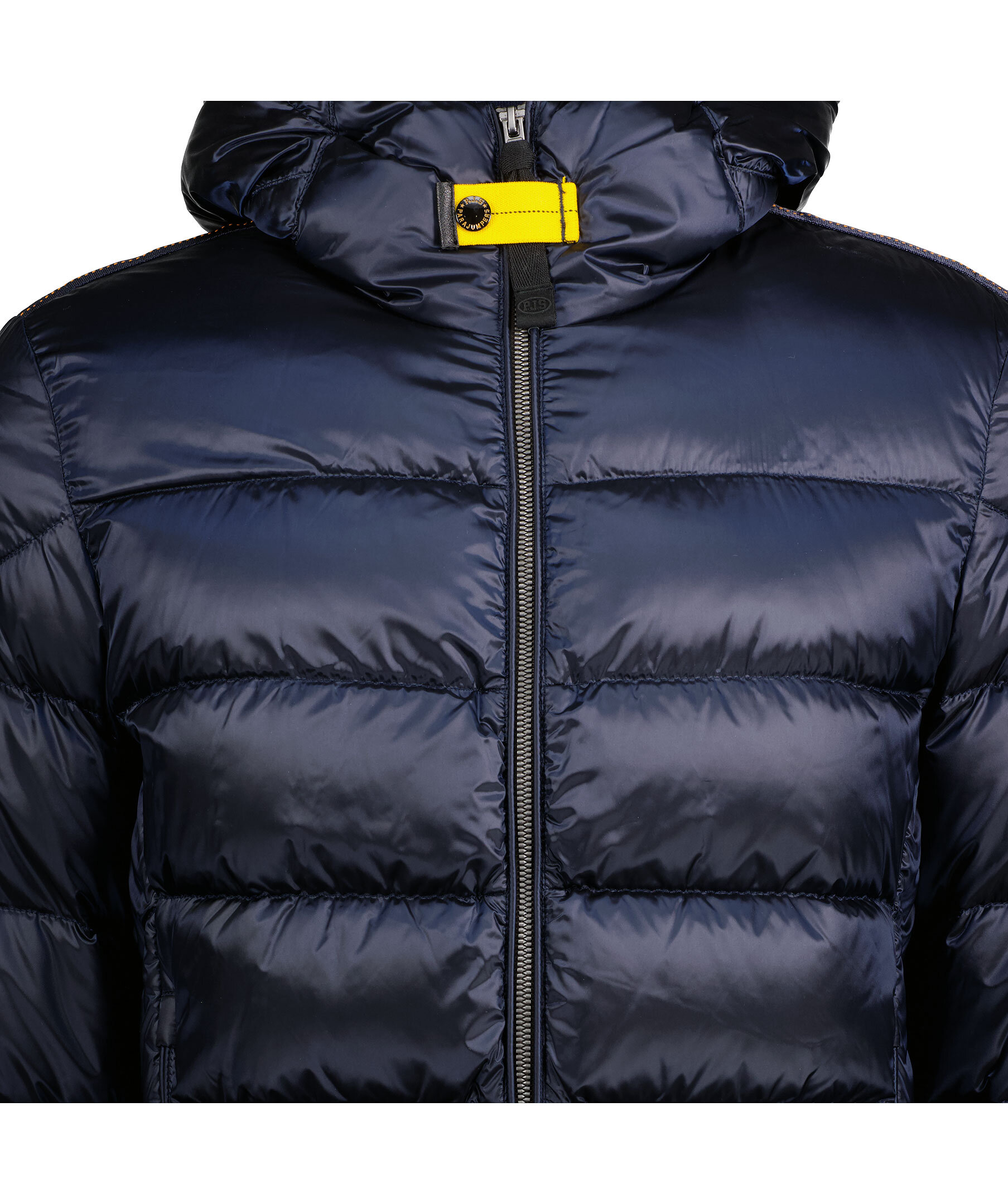 Marinblå dunjacka från Parajumpers. Två fickor fram, muddar i ärmslut, spänne i kragen samt två innerfickor. Logotyp på vänster ärm.
