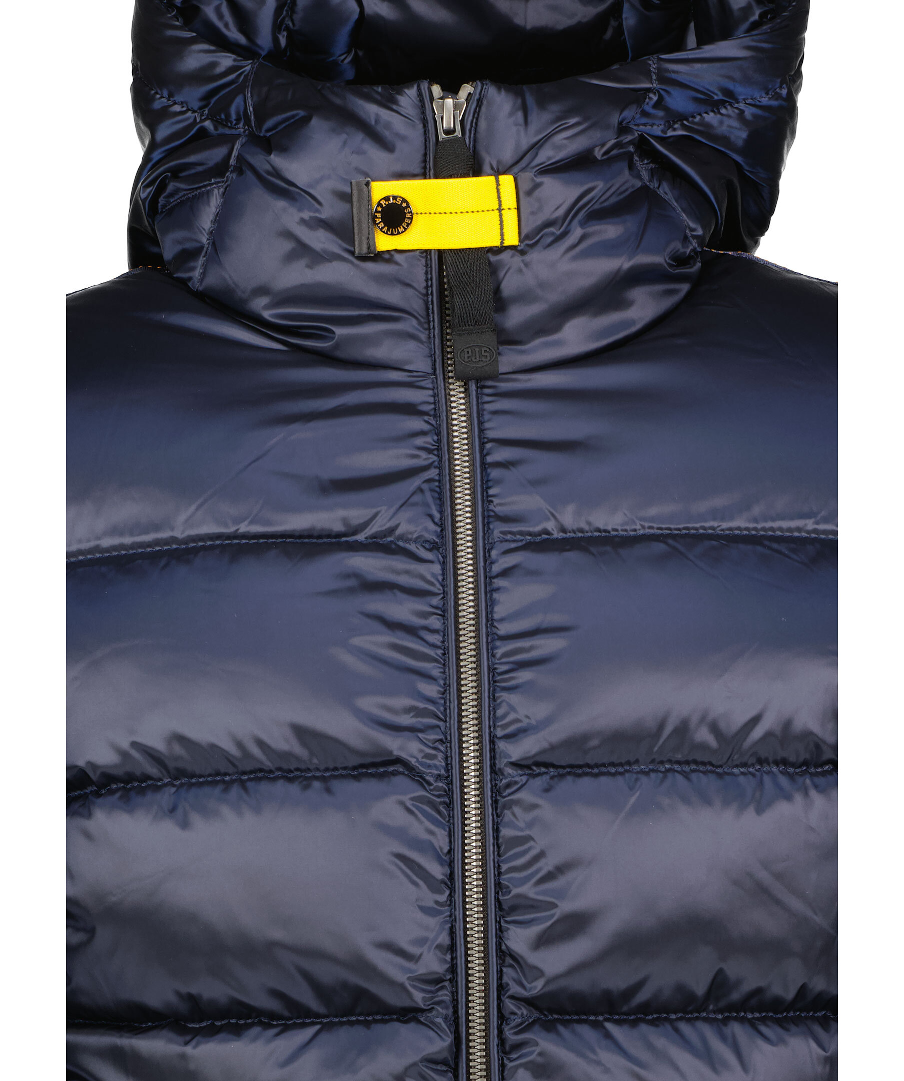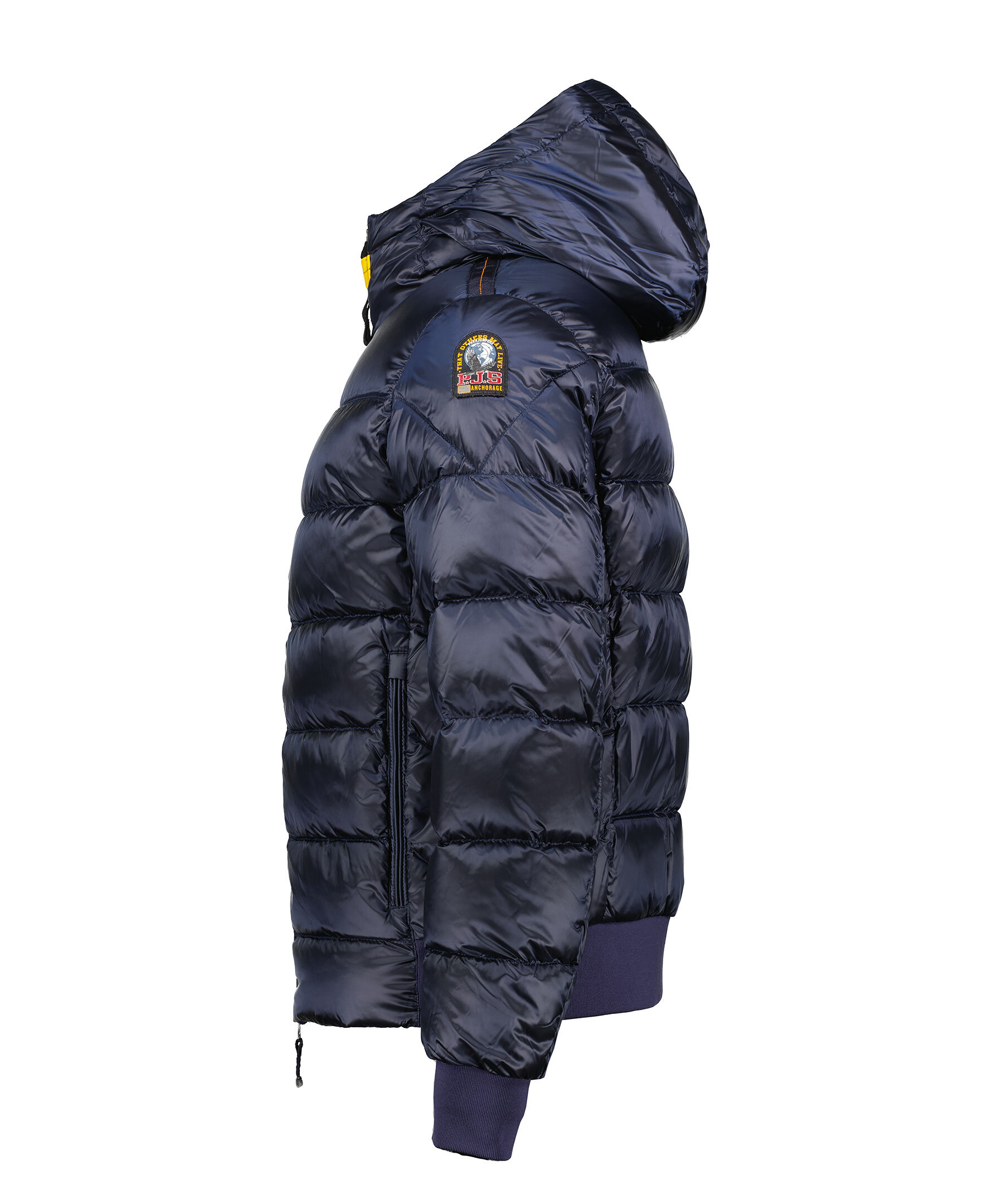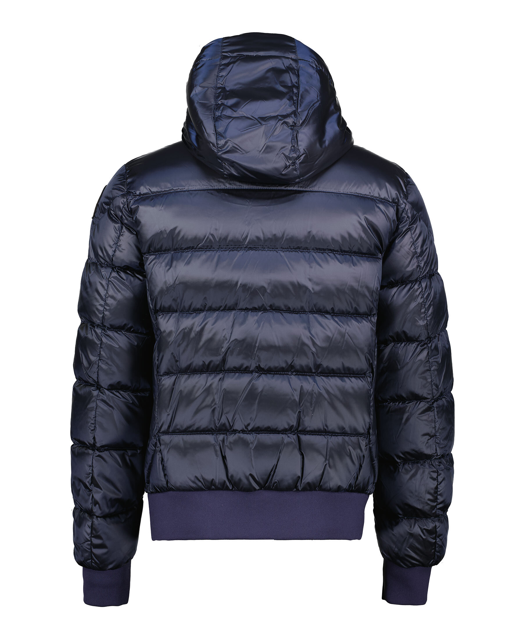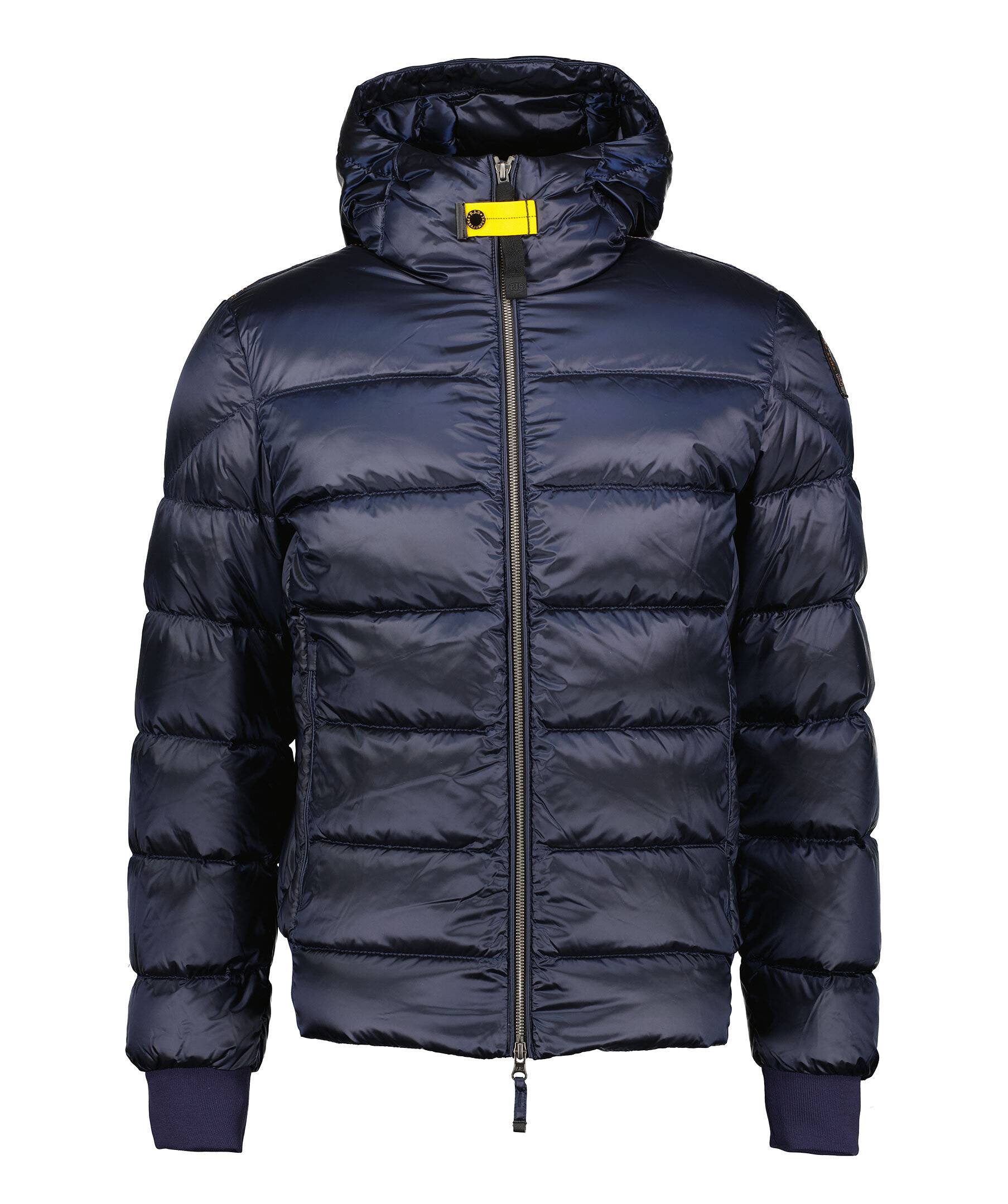 Marinblå jacka med huva från Parajumpers. Tillverkad i glänsande nylon-polyestertwill. Jackan stängs med tvåvägsdragkedja och har en patch-logotyp på vänster ärm. Två dragkedjefickor på utsidan och två fickor på insidan. Pharrell-jackan är en superlätt pufferjacka. Cool, praktisk, evig.