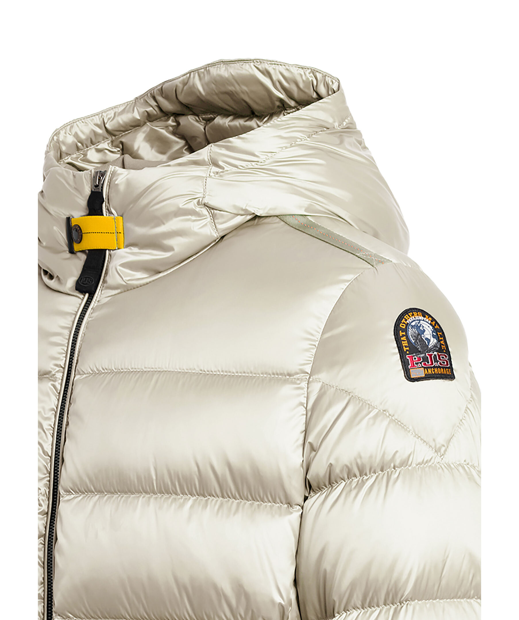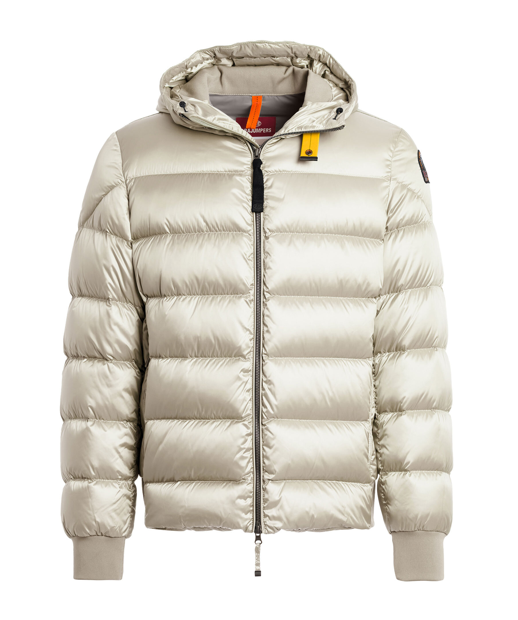Ljusgrå jacka med huva från Parajumpers. Tillverkad i glänsande nylon-polyestertwill. Jackan stängs med tvåvägsdragkedja och har en patch-logotyp på vänster ärm. Två dragkedjefickor på utsidan och två fickor på insidan. Pharrell-jackan är en superlätt pufferjacka. Cool, praktisk, evig.■ OBS! Modellbilderna visar endast passform