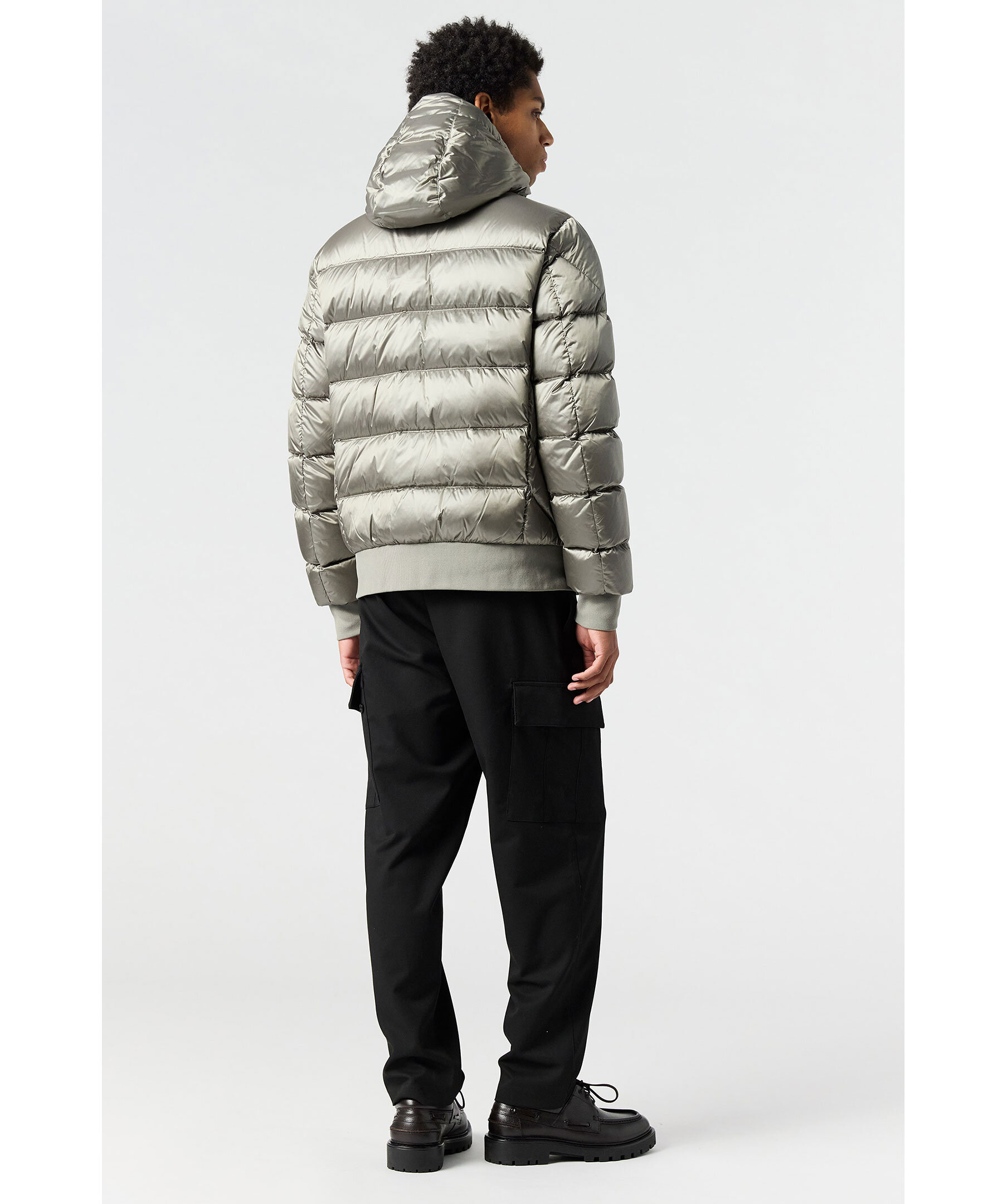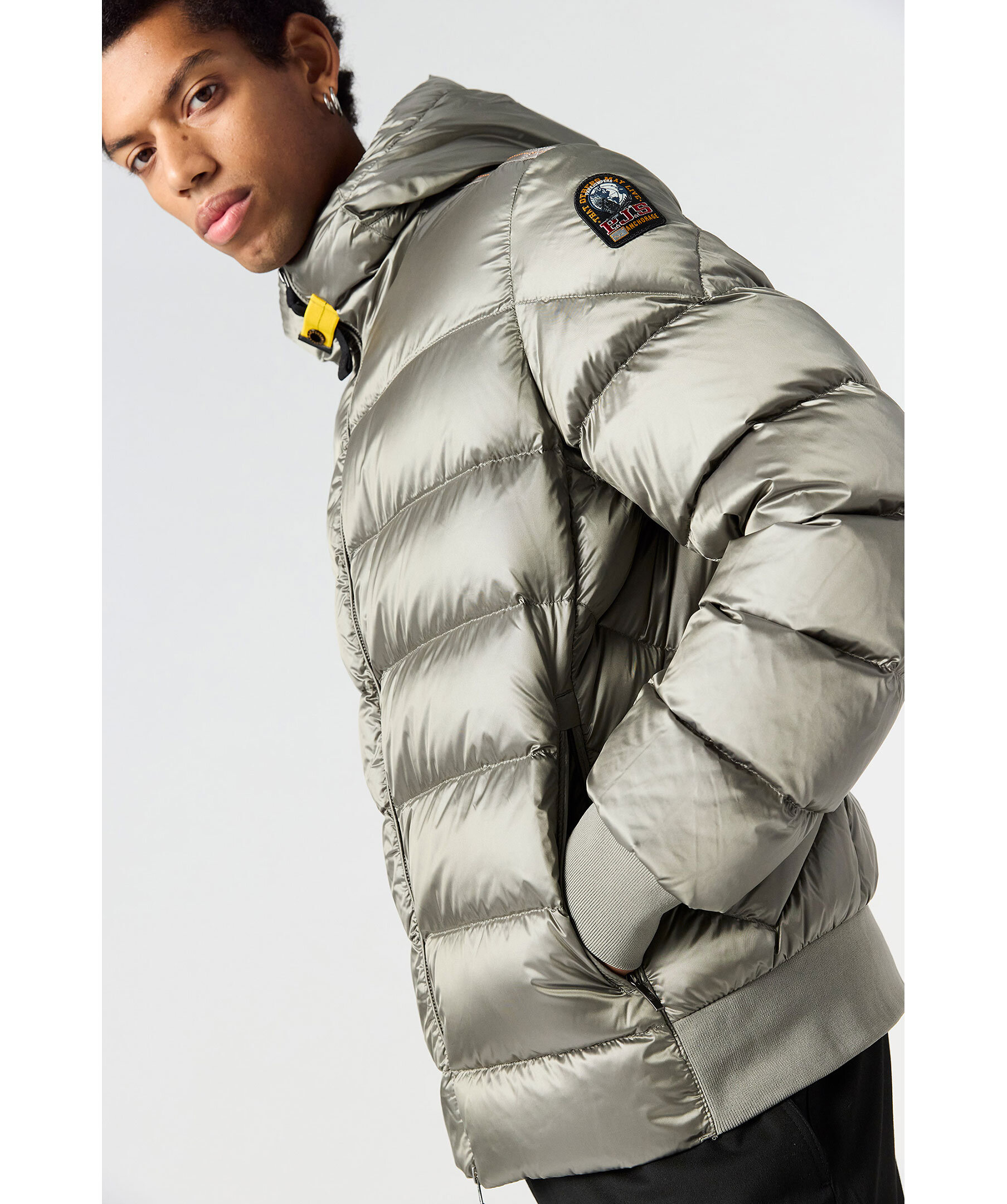 Mossgrön jacka med huva från Parajumpers. Tillverkad i glänsande nylon-polyestertwill. Jackan stängs med tvåvägsdragkedja och har en patch-logotyp på vänster ärm. Två dragkedjefickor på utsidan och två fickor på insidan. Ventilationshål i armhålorna. Pharrell-jackan är en superlätt pufferjacka. Cool, praktisk, evig.