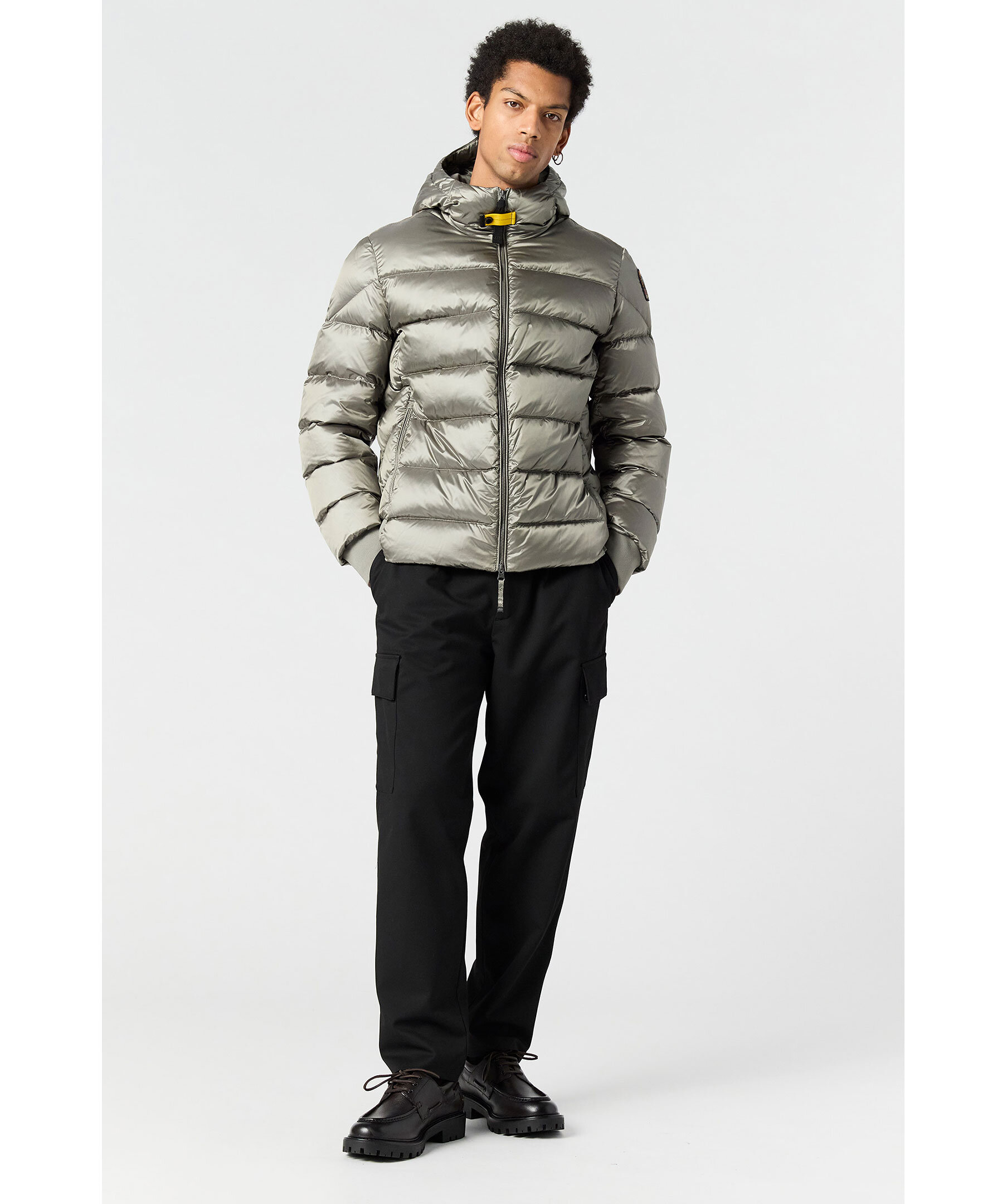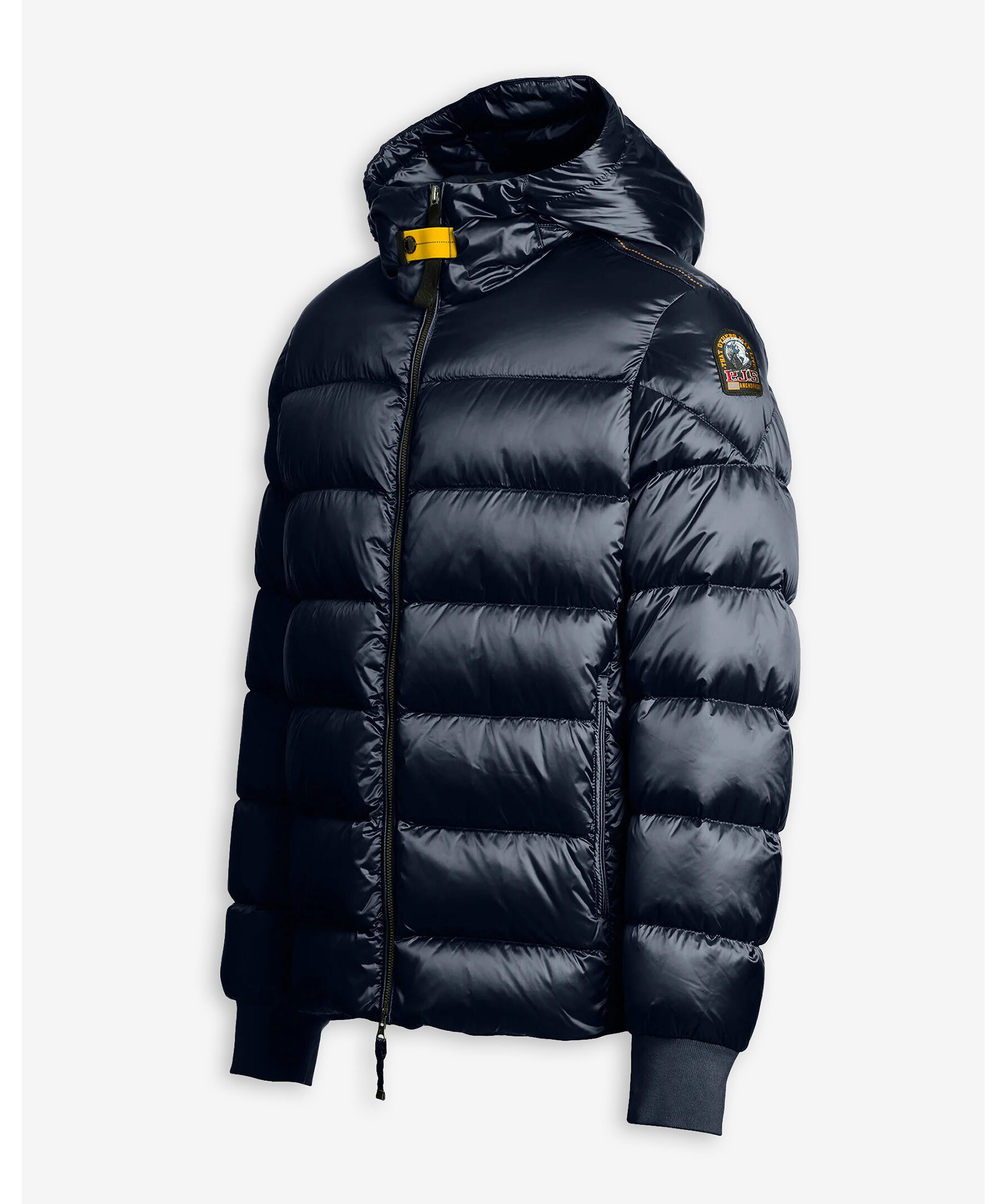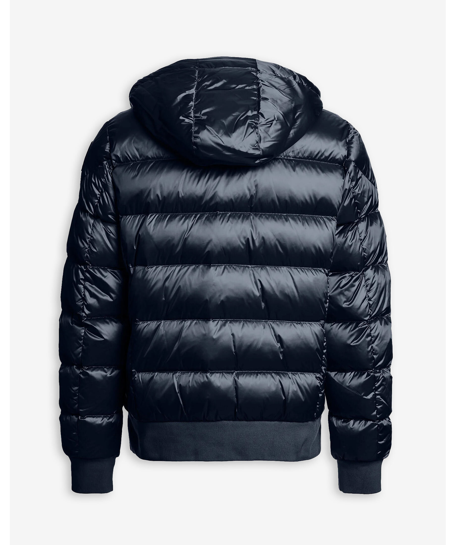 Mörkblå jacka med huva från Parajumpers. Tillverkad i glänsande nylon-polyestertwill. Jackan stängs med tvåvägsdragkedja och har en patch-logotyp på vänster ärm. Två dragkedjefickor på utsidan och två fickor på insidan. Ventilationshål i armhålorna. Pharrell-jackan är en superlätt pufferjacka. Cool, praktisk, evig.