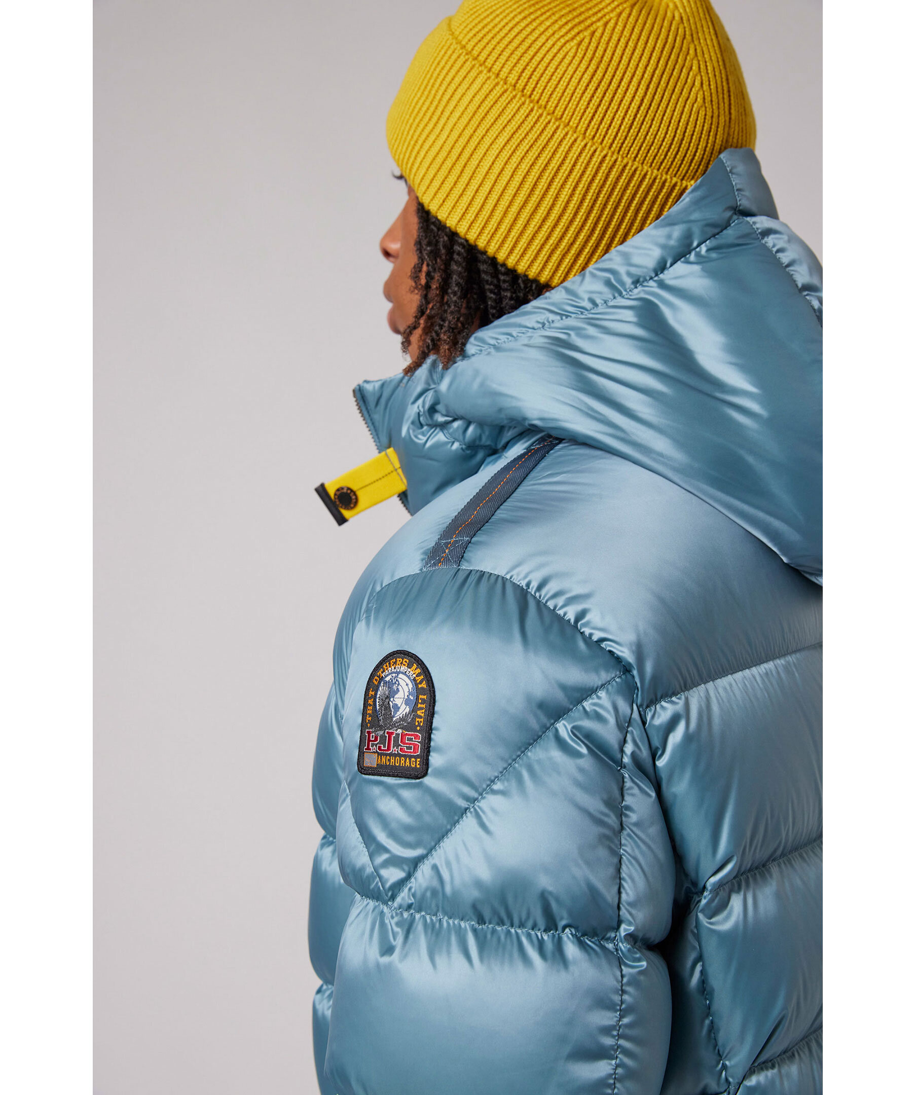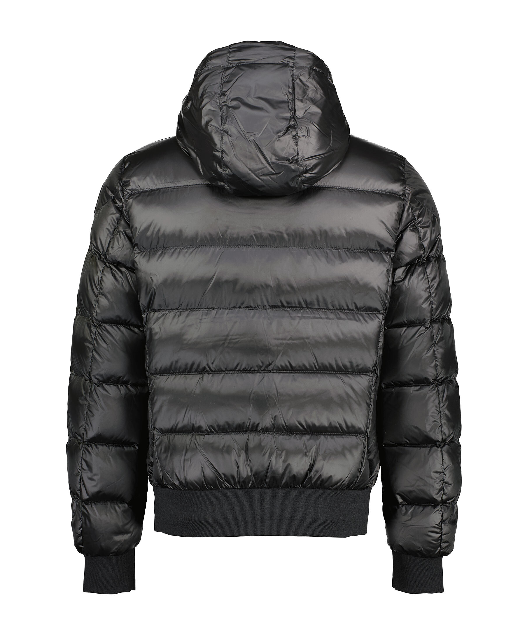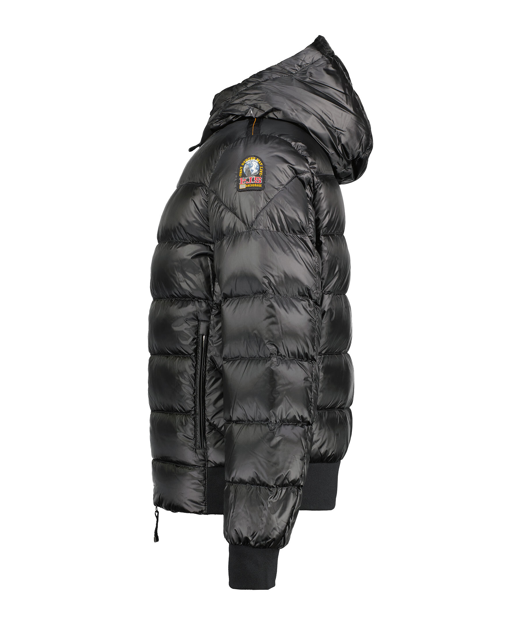 Svart jacka med huva från Parajumpers. Tillverkad i glänsande nylon-polyestertwill. Jackan stängs med tvåvägsdragkedja och har en patch-logotyp på vänster ärm. Två dragkedjefickor på utsidan och två fickor på insidan. Ventilationshål i armhålorna. Pharrell-jackan är en superlätt pufferjacka. Cool, praktisk, evig.