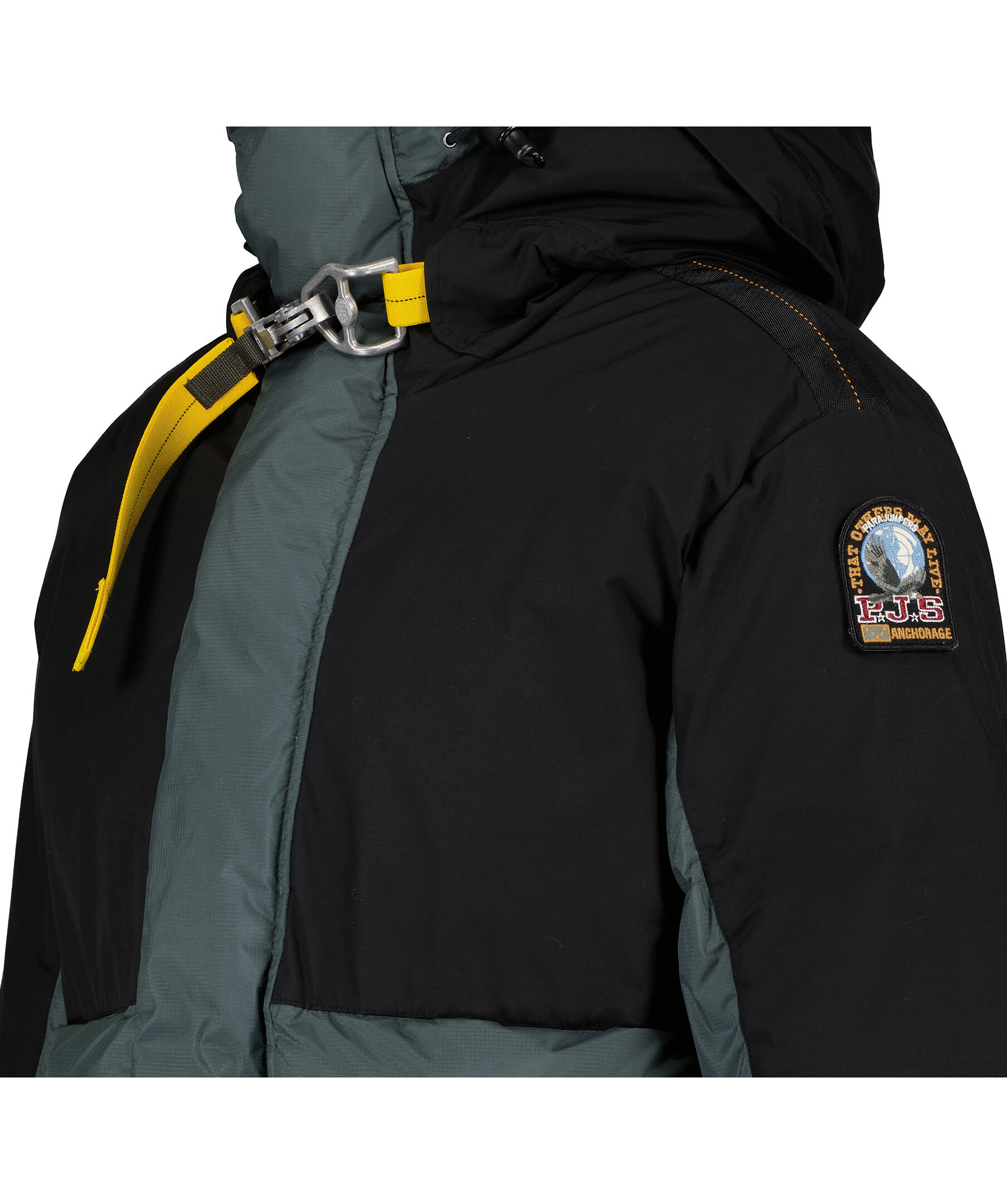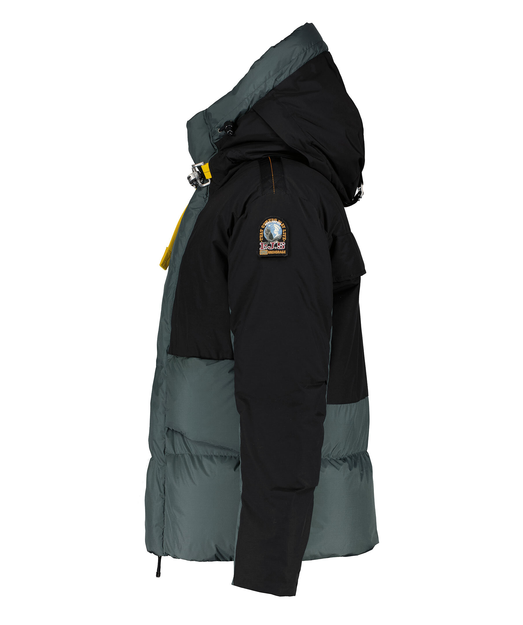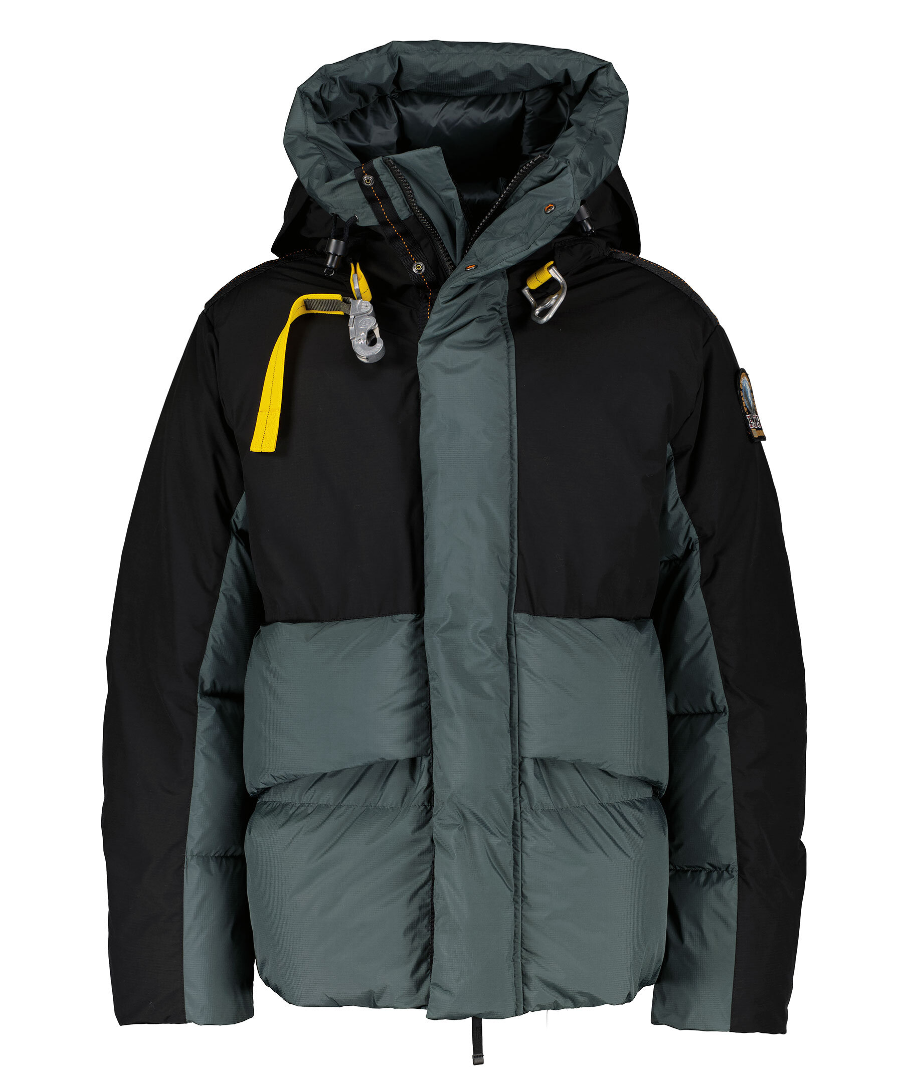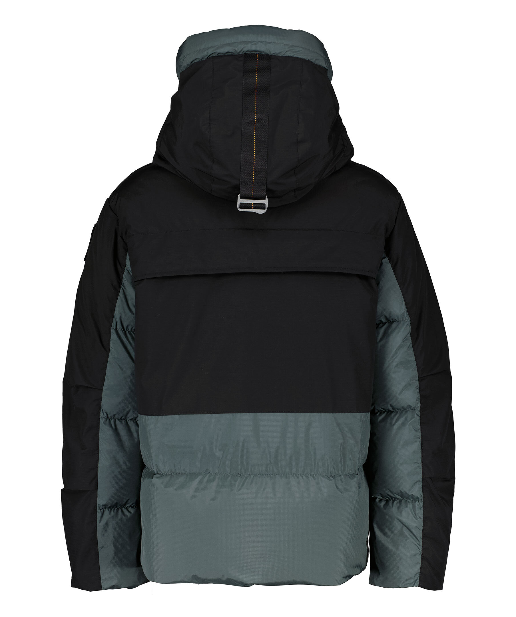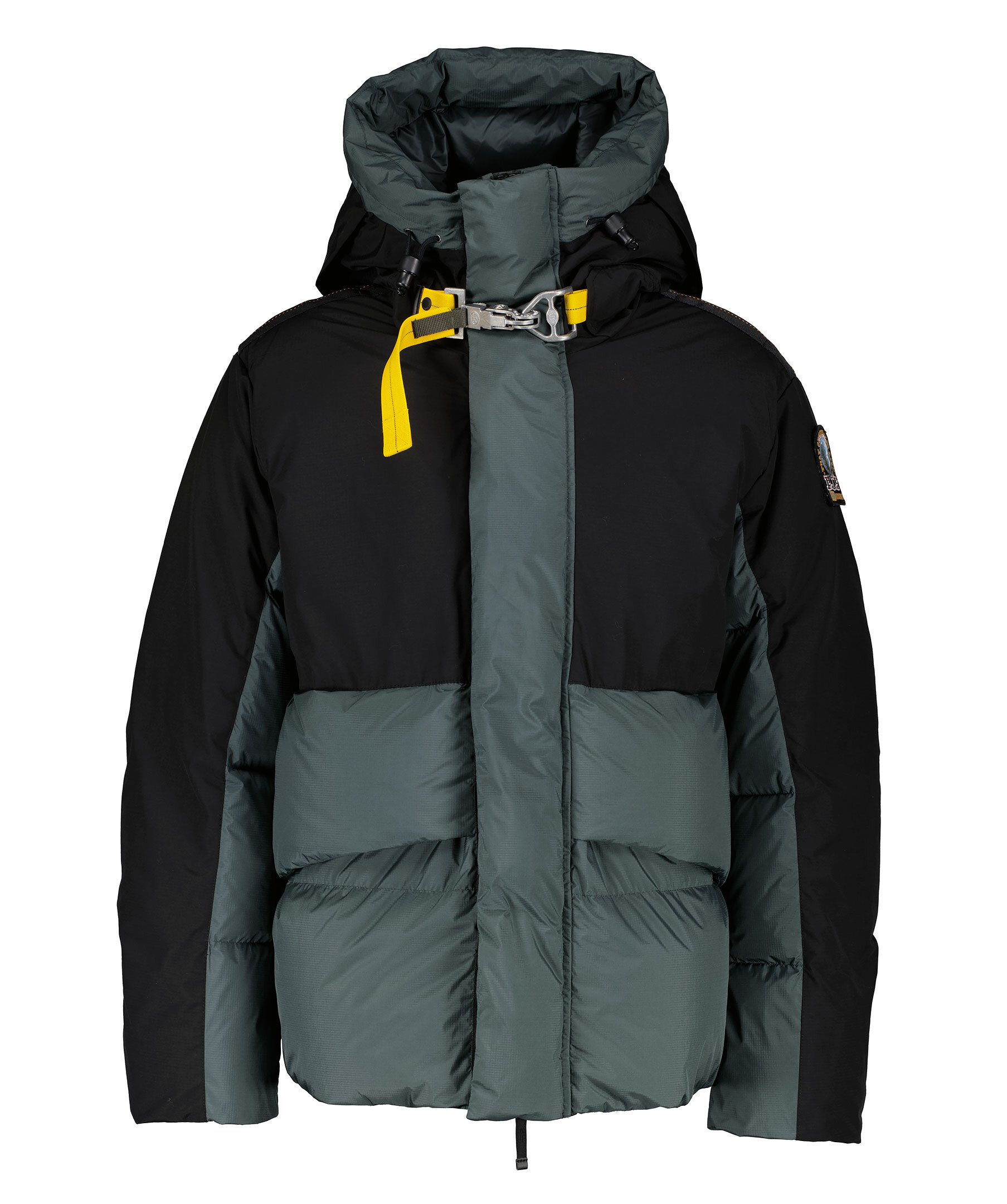 Mörkgrön och svart dunjacka från Parajumpers. Stängs framtill med tvåvägs dragkedja och tryckknappar. Justerbar luva med dragsko och spänne baktill. Två Fickor framtill med dold dragkedja. Innerficka som stängs med dragkedja.