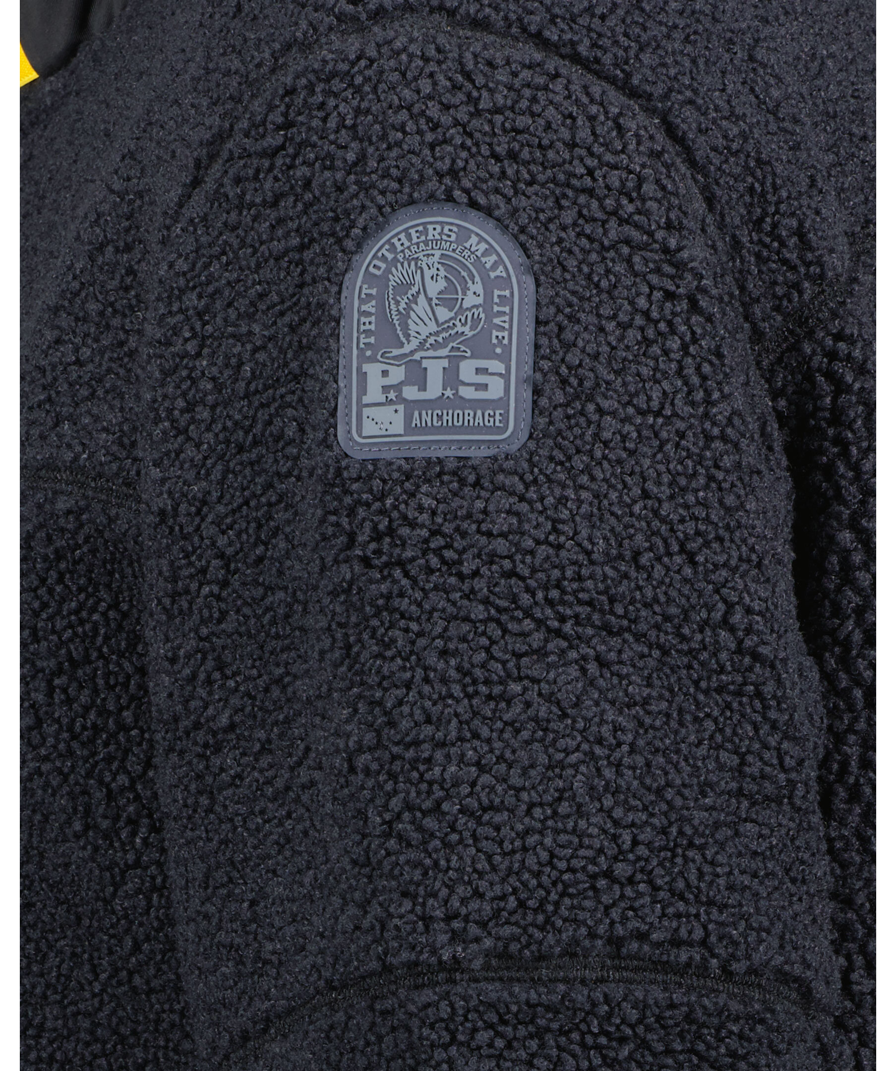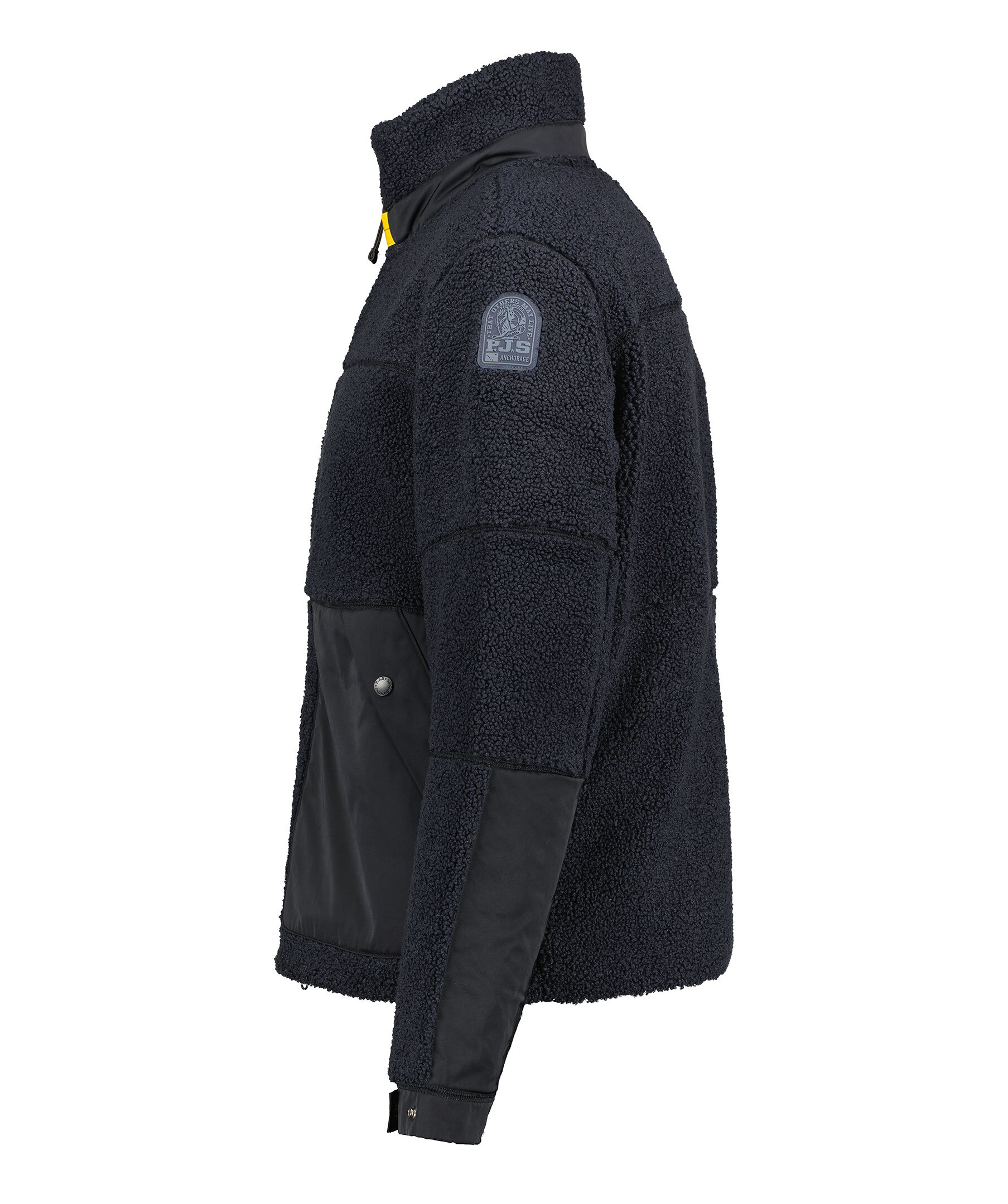 Svart teddyjacka från Parajumpers. Jackan stängs med tvåvägsdragkedja och har två sidfickor som stängs med knappar, en invändig meshficka samt gummerad logotyp på vänster ärm.